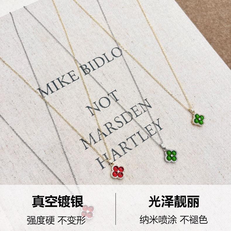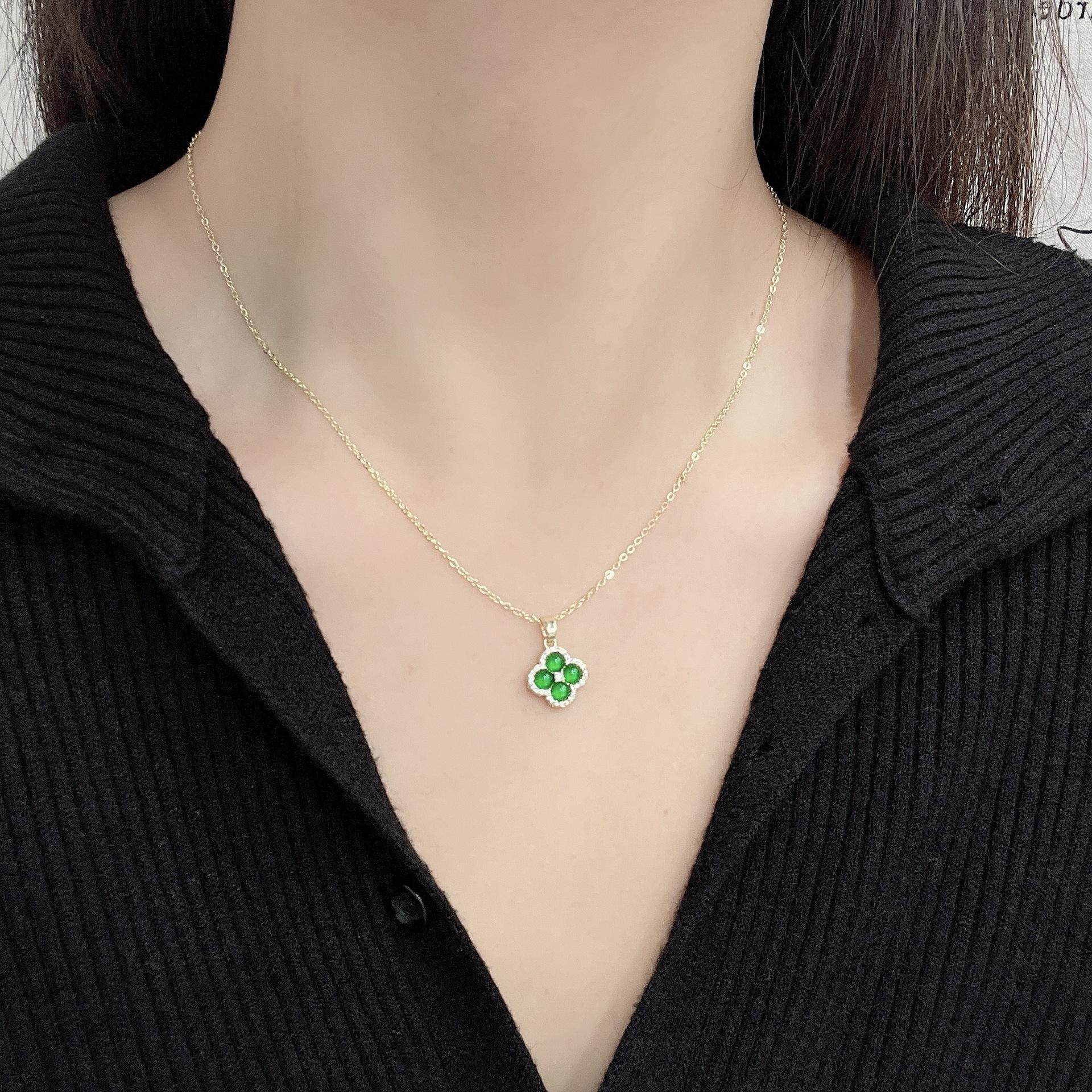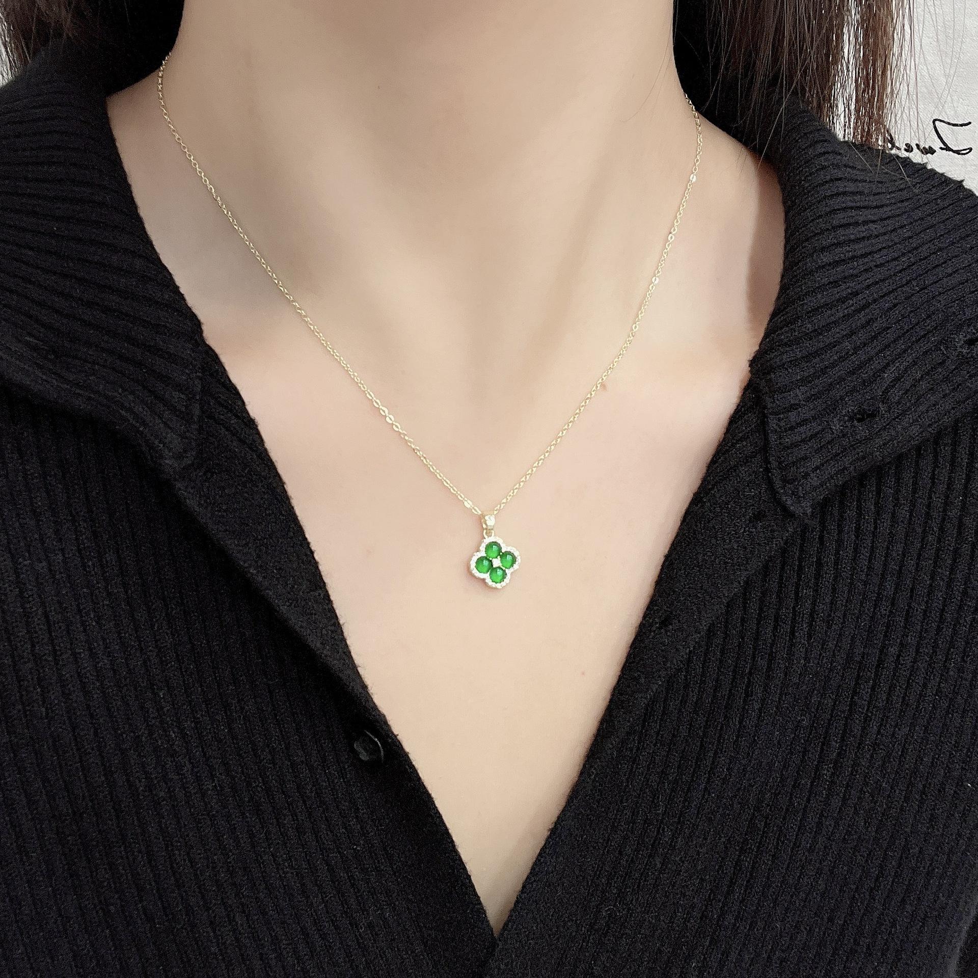 Explosiones Transfronterizas Esmeralda Collar Trébol de Cuatro Hojas de la Suerte Moda para Mujer Simple Comodín Elegante Collar de Lujo