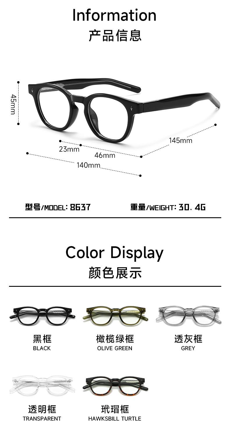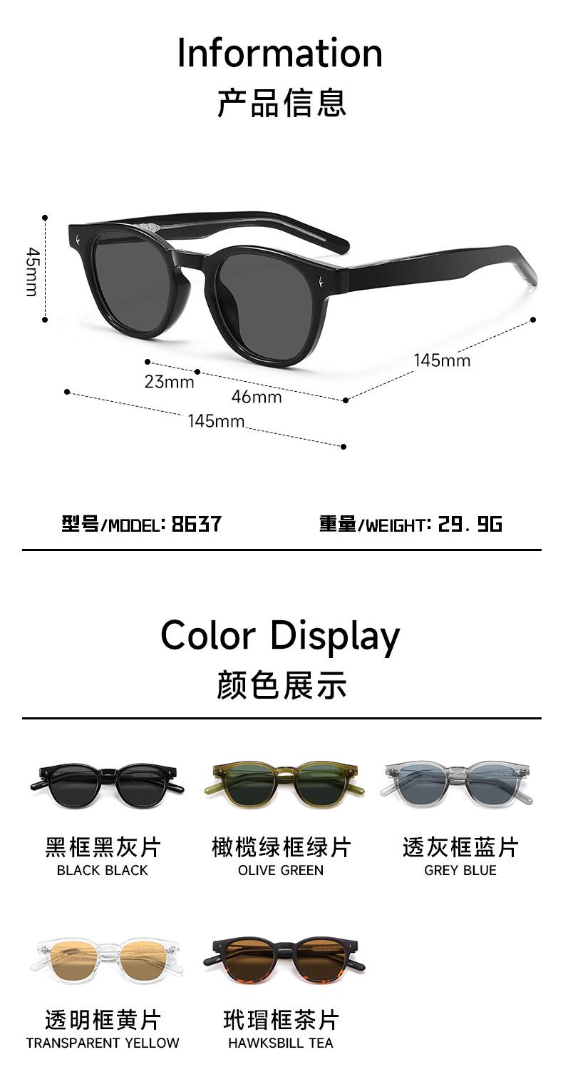 Black frame white film, Olive green frame white film, Transparent gray frame white film, Tortoiseshell frame w...