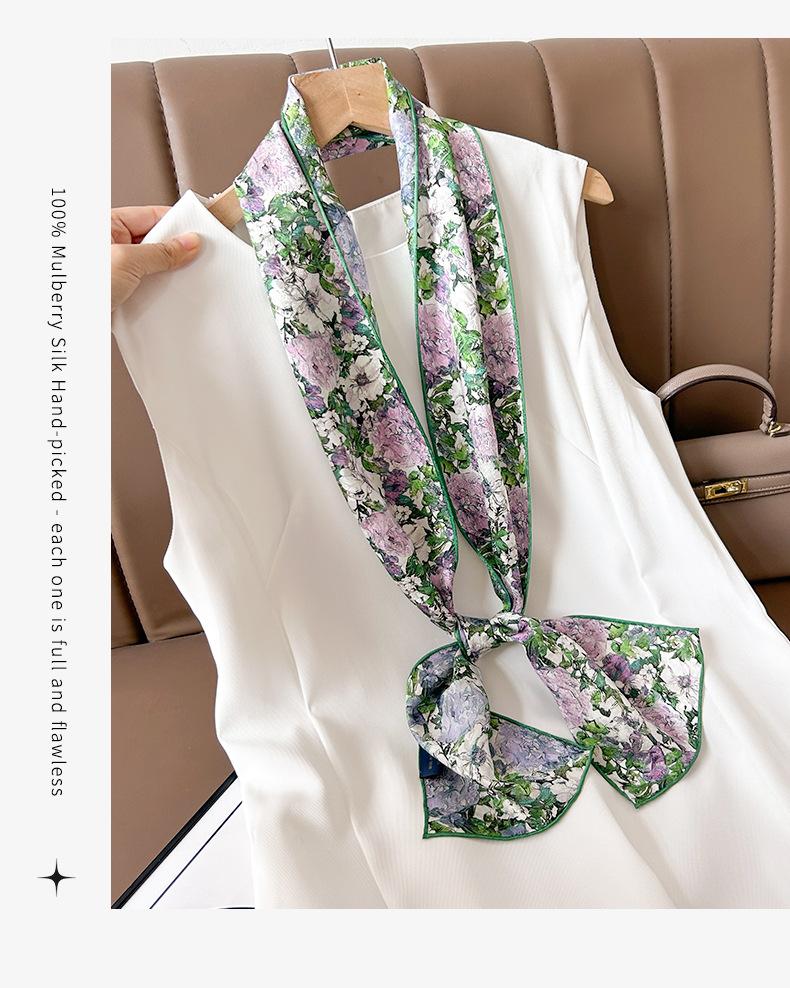 Nueva bufanda de seda de doble cara de diferentes colores para mujer, bufanda larga de seda morera 100% de alta gama, cinta de moda que combina con todo.