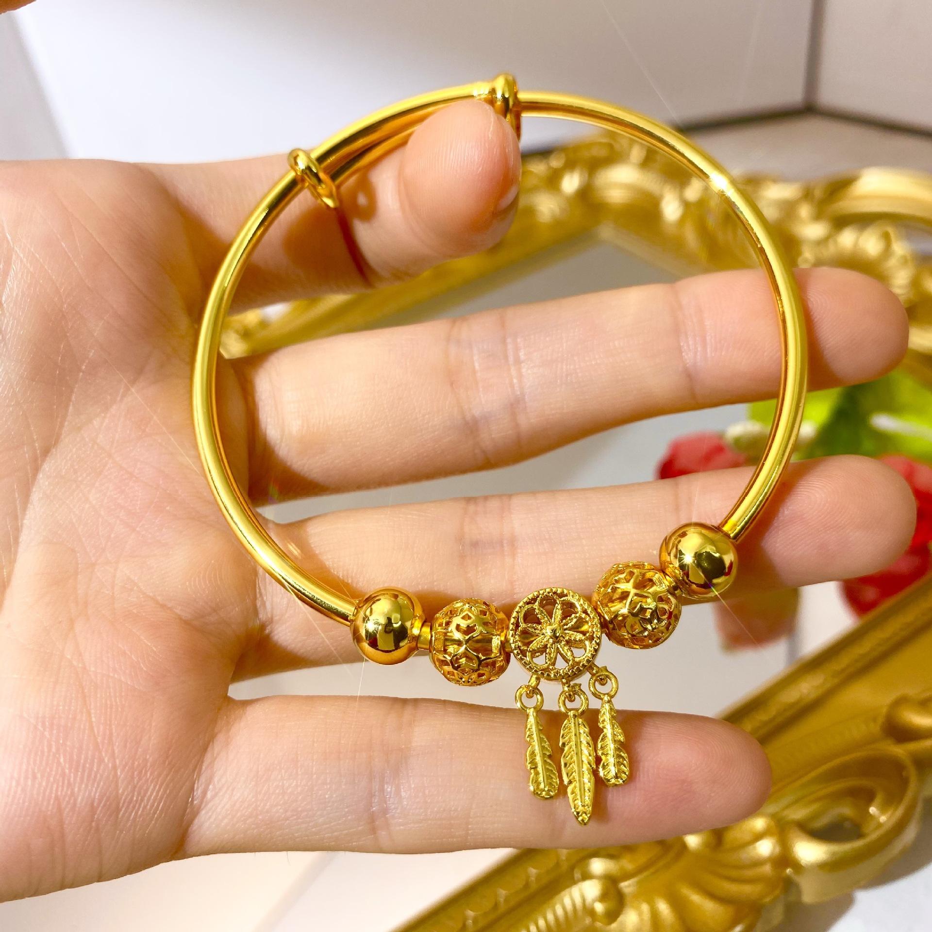 Pulsera atrapasueños de oro de arena de Vietnam para mujer, temperamento retro, oro cobrizo chapado en oro, joyería para boda, pulsera al por mayor