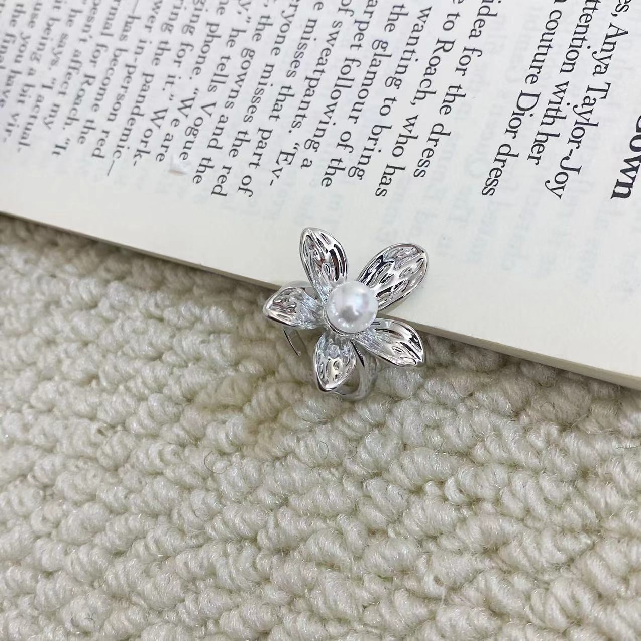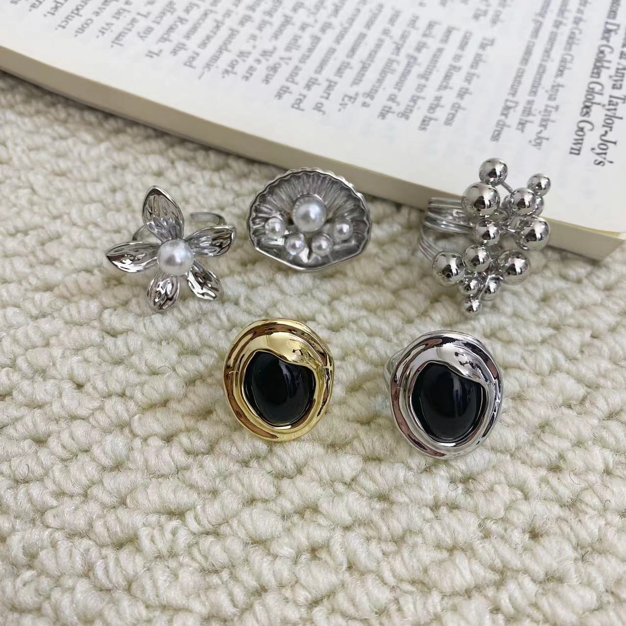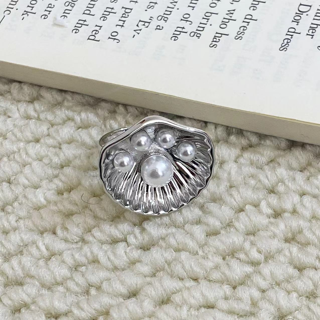 Anillo Abierto de Concha de Flor Ovalada de Nicho con Cuentas Redondas, Anillo Moderno Elegante de Lujo Ligero de Gama Alta Europeo y Americano para Mujer