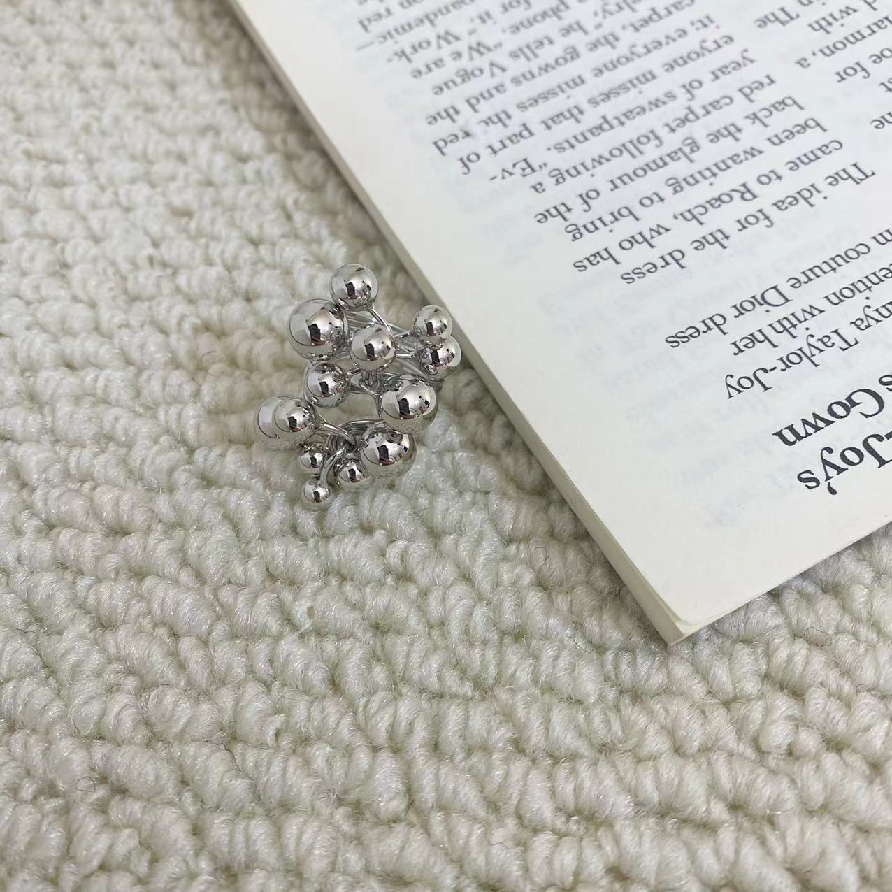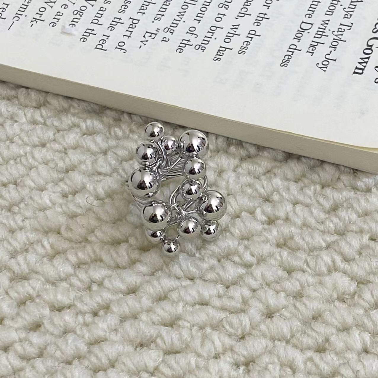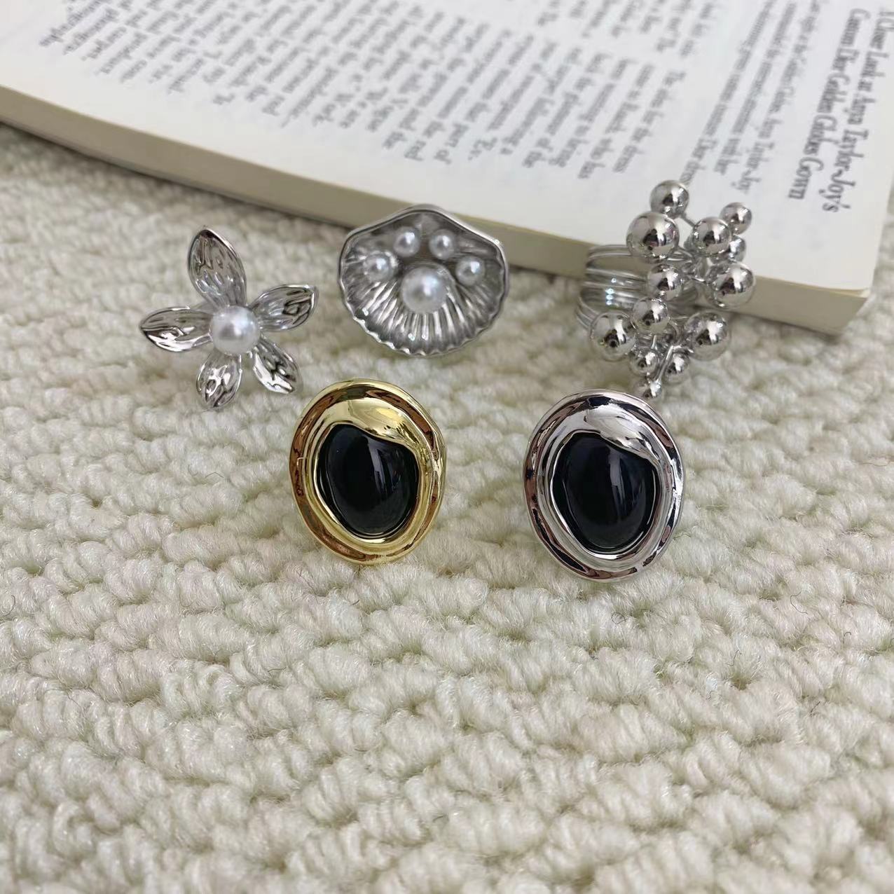 Anillo Abierto de Concha de Flor Ovalada de Nicho con Cuentas Redondas, Anillo Moderno Elegante de Lujo Ligero de Gama Alta Europeo y Americano para Mujer