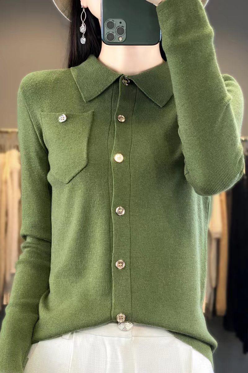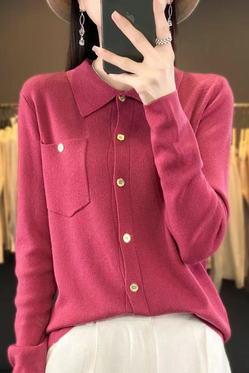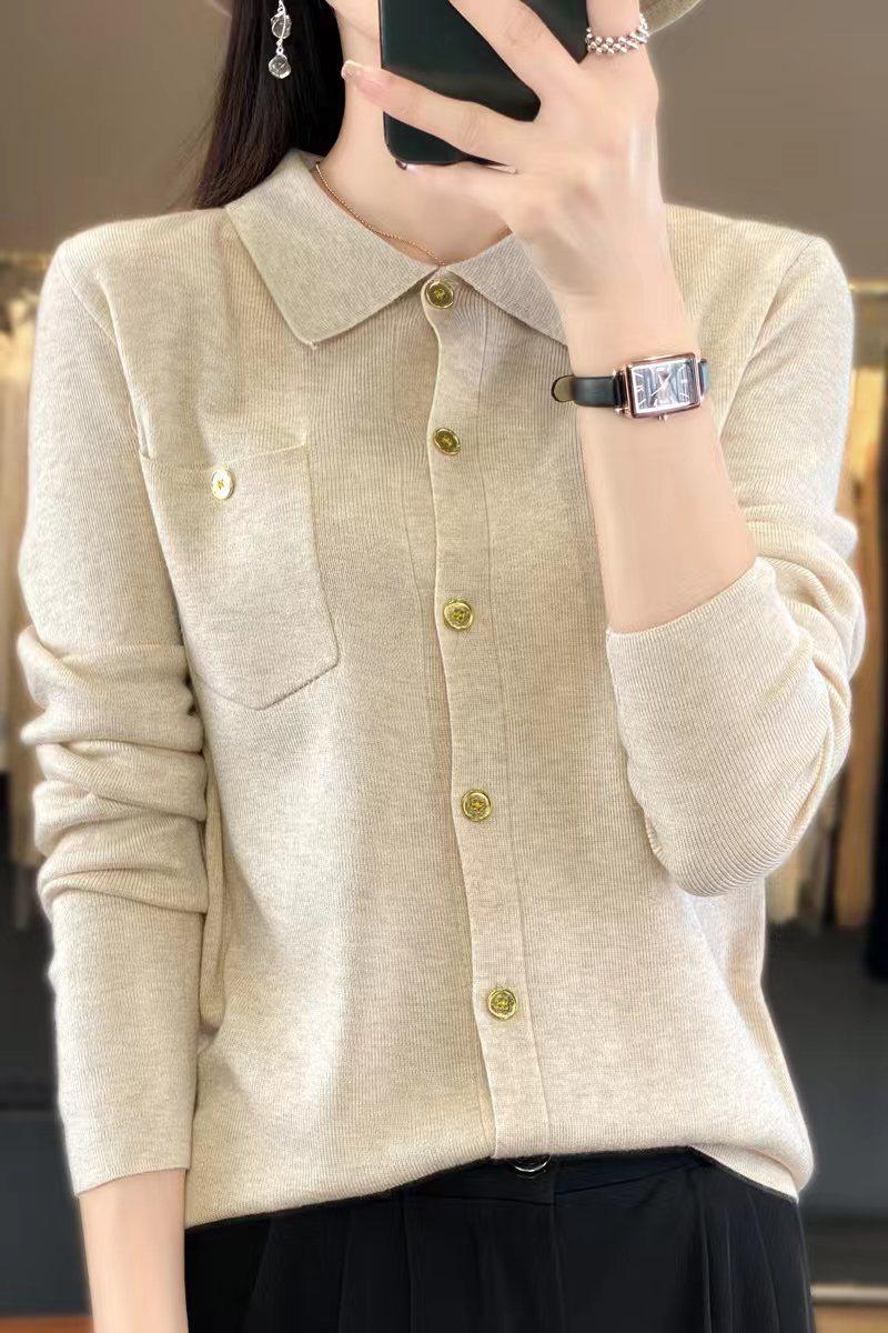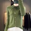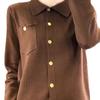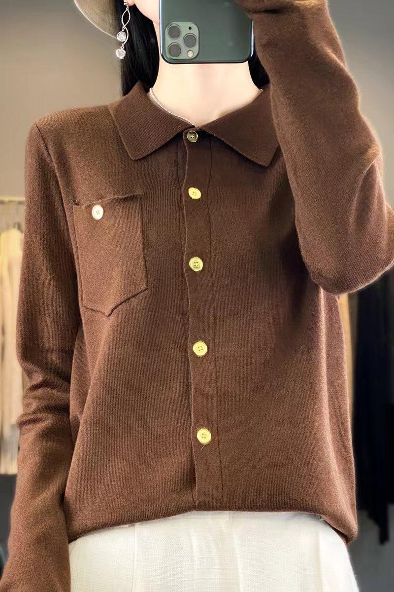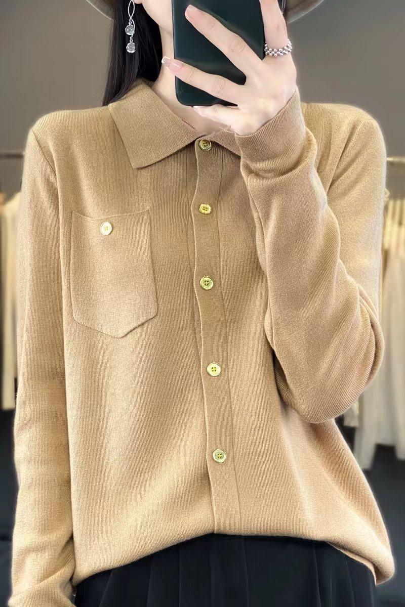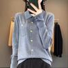 Suéter de Lana Peinada para Mujer Otoño 2025 al Por Mayor con Bolsillo Cuello de Camisa Botones Tops Más Fácil de Combinar Top