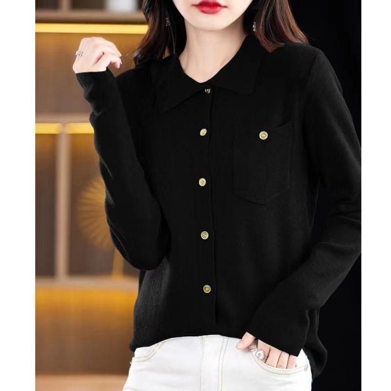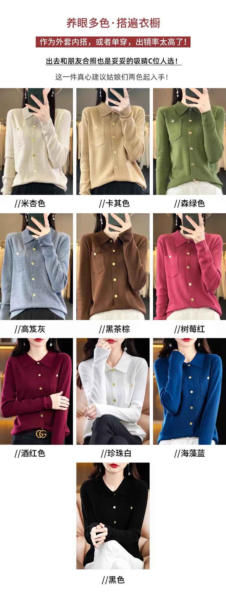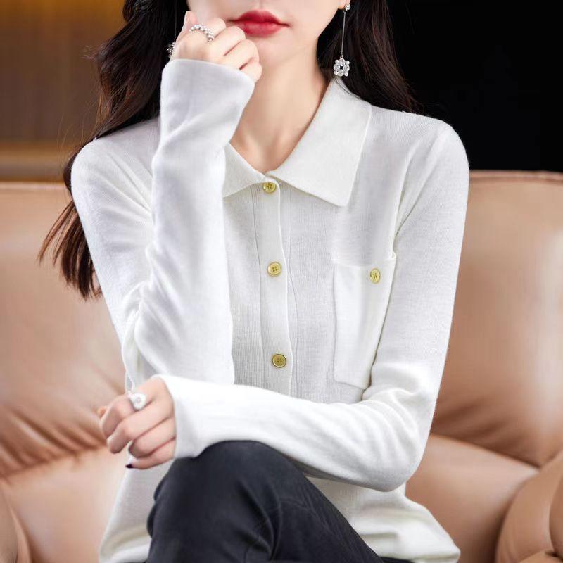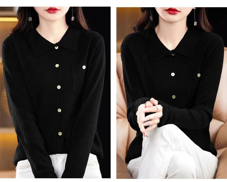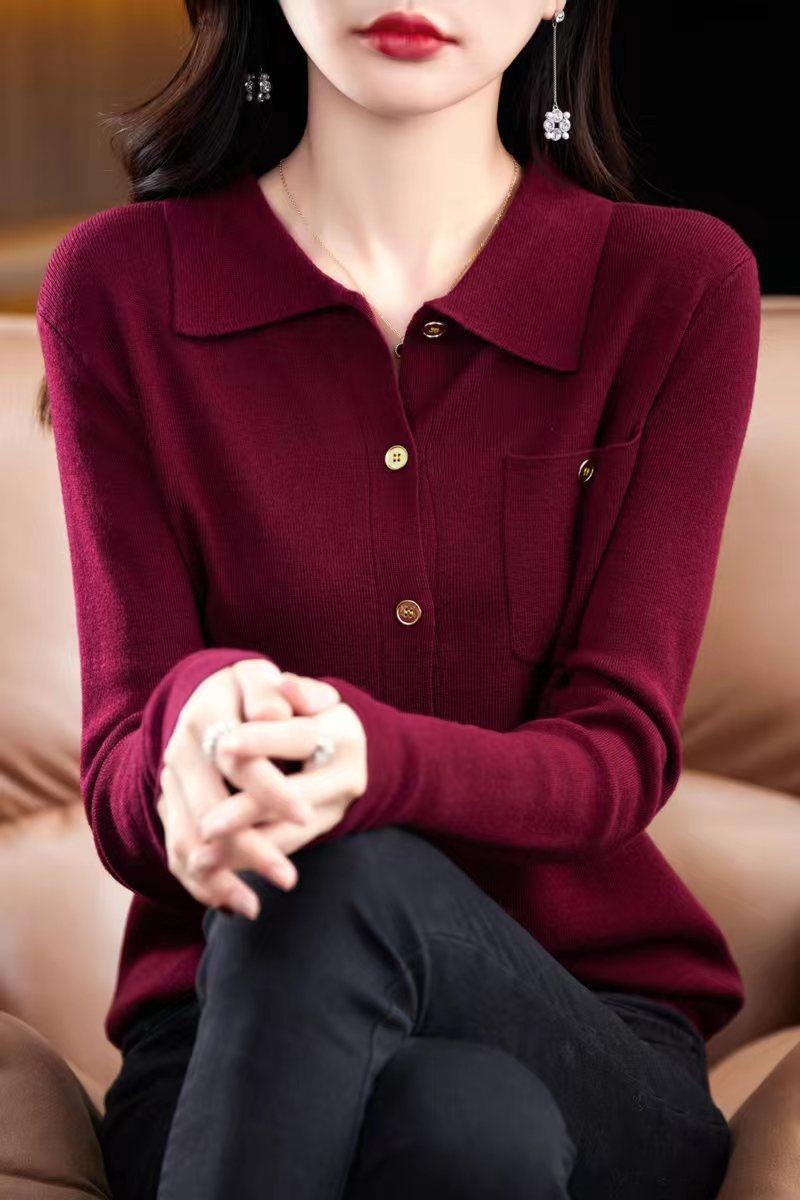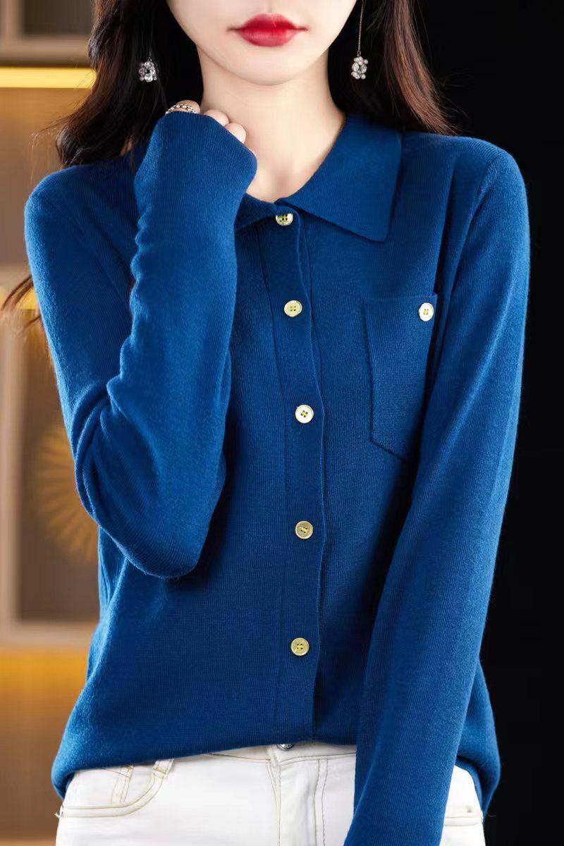 Suéter de Lana Peinada para Mujer Otoño 2025 al Por Mayor con Bolsillo Cuello de Camisa Botones Tops Más Fácil de Combinar Top