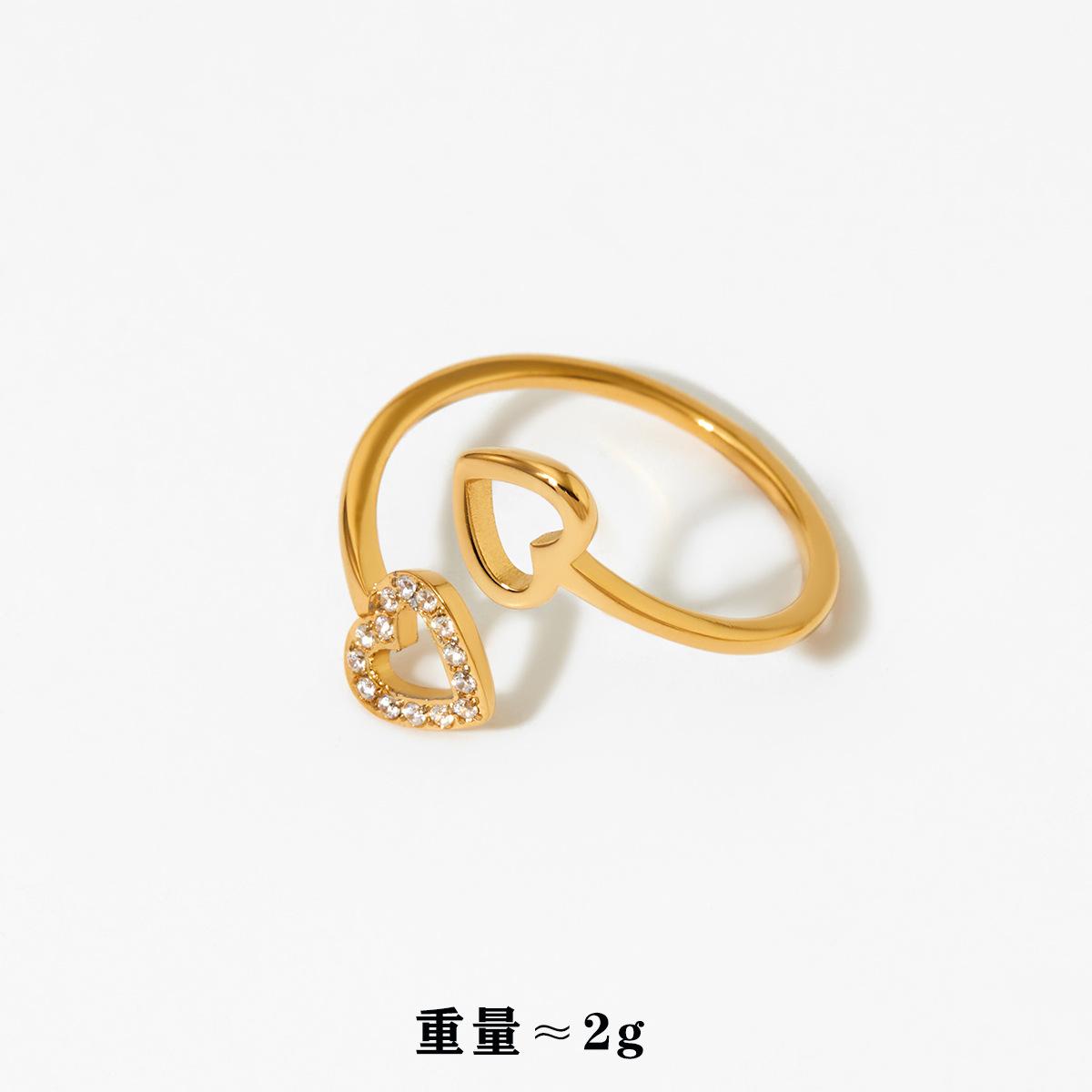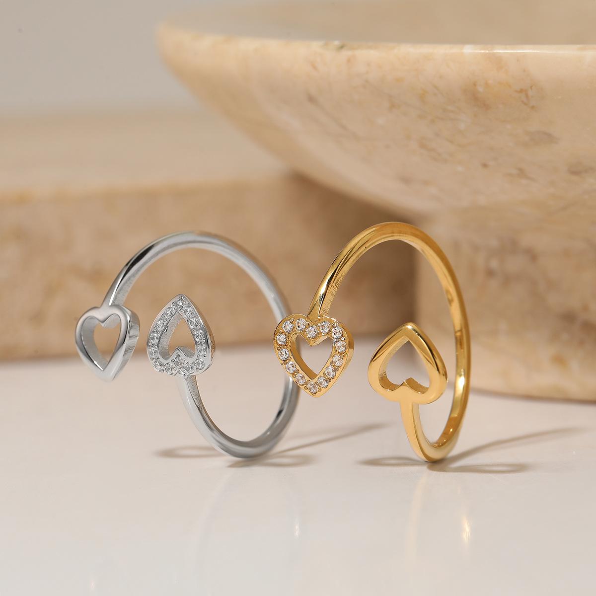 Anillo Abierto Simple Creativo Estilo Nuevo Forma de Doble Corazón Acero Inoxidable Talla Corazón de Durazno Diamante Moderno Nicho de Calidad