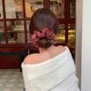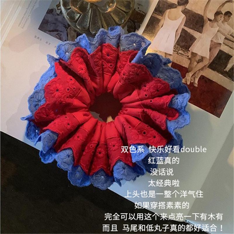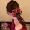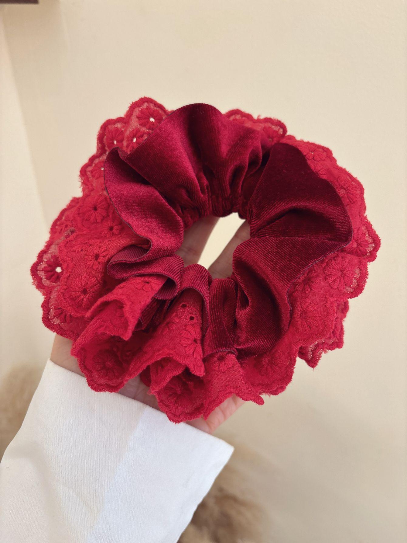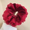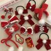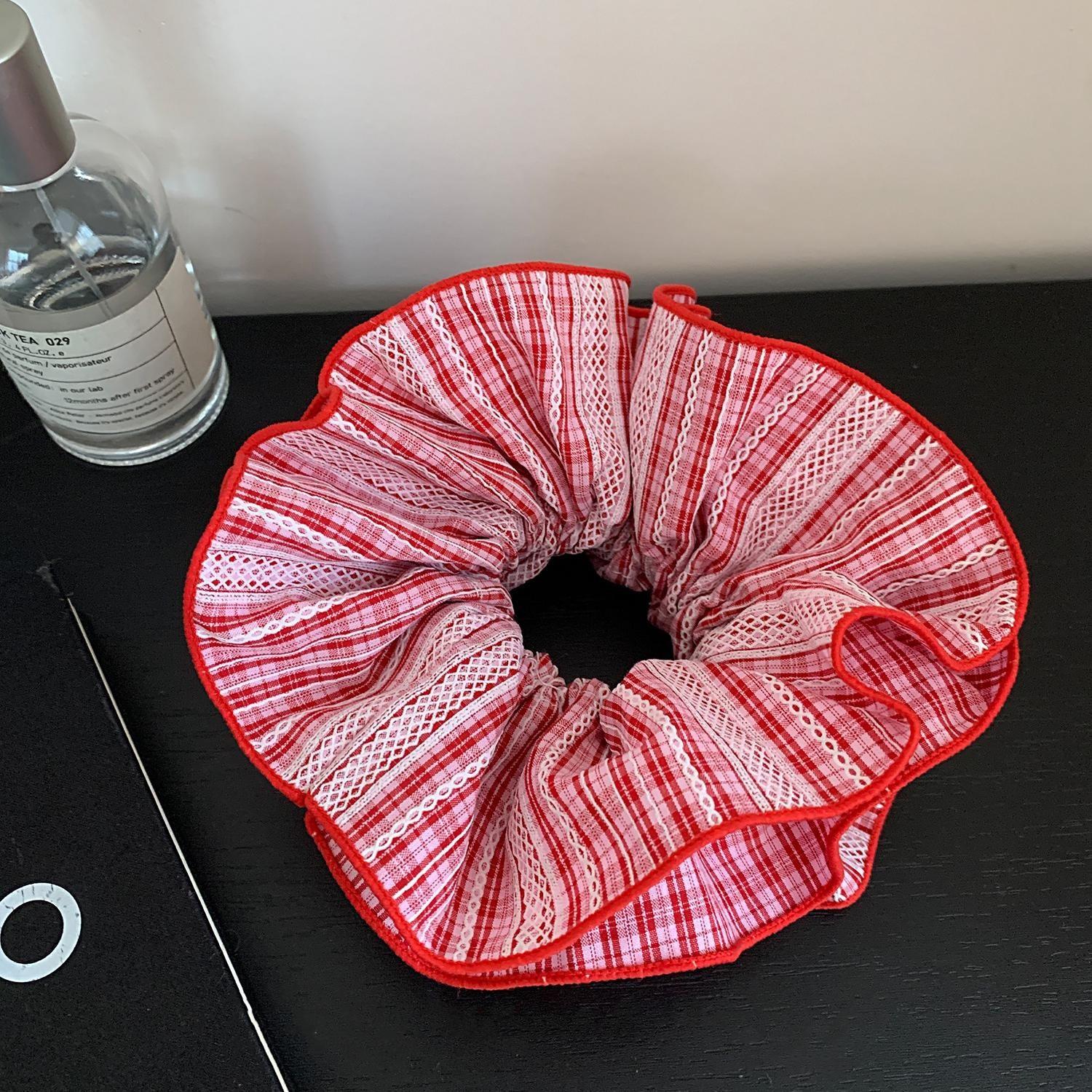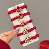 Christmas red-check hair tie, Red striped hair tie, Red lace ballet hair tie, Red satin pleated four-layer hai...