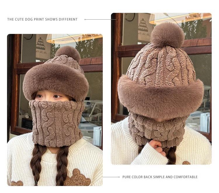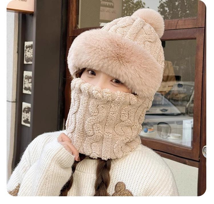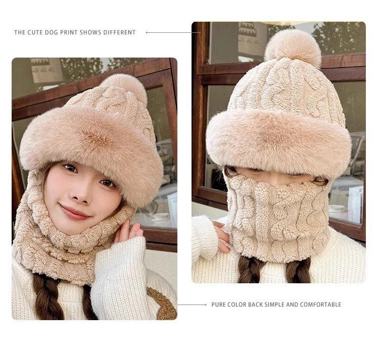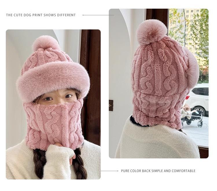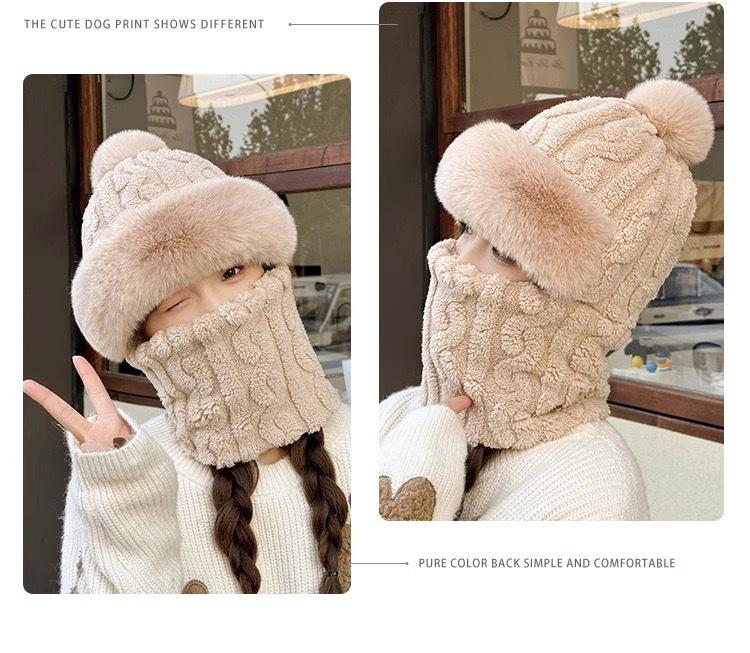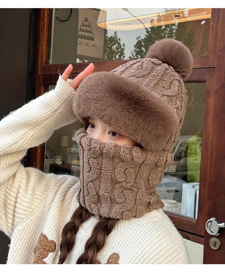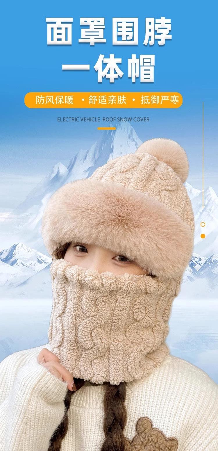 Gorro de invierno para mujer, máscara de equitación, gorro integral, bufanda cortavientos, forro polar, protección para las orejas, gorro cálido integrado.