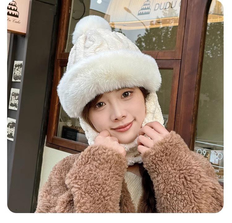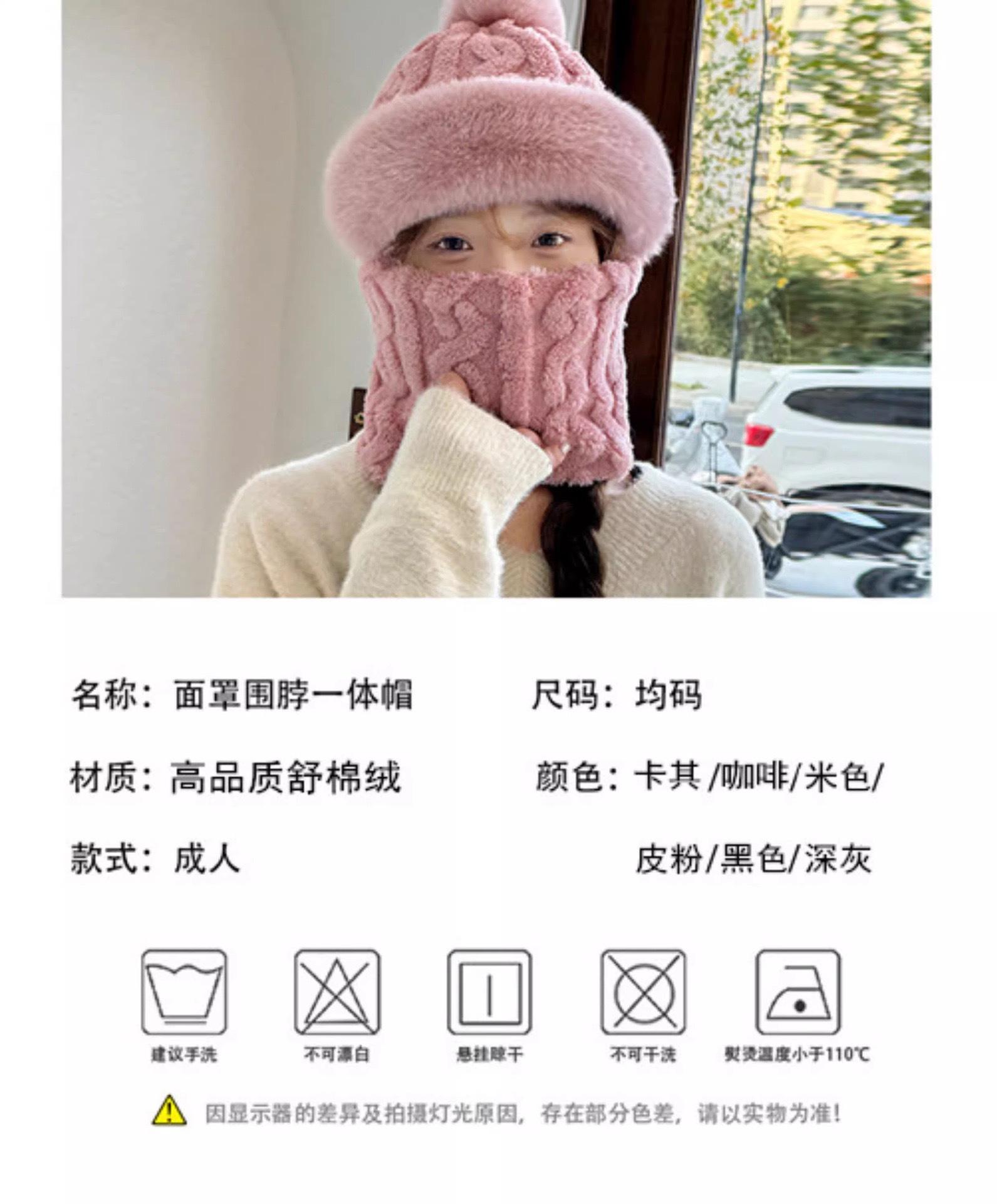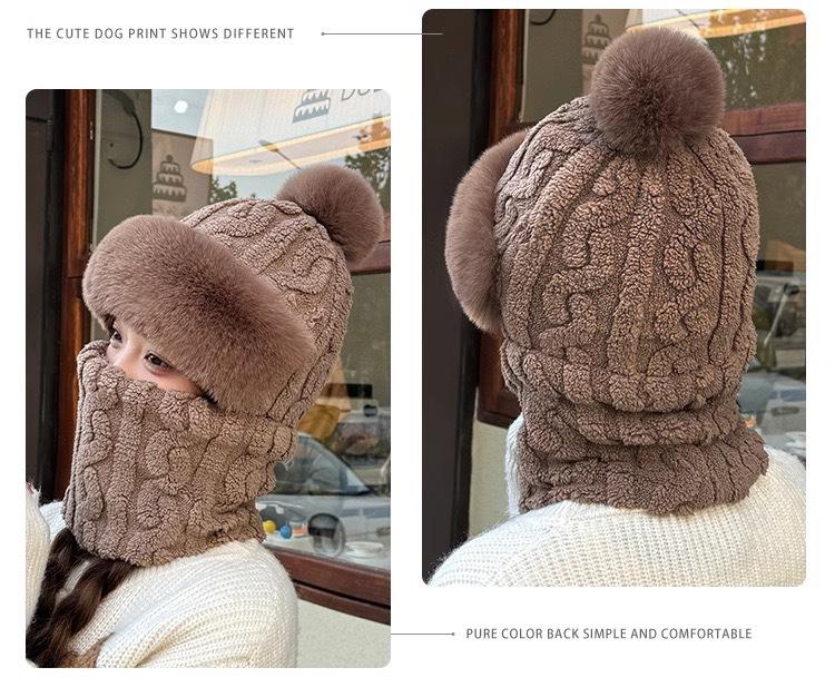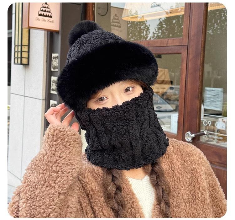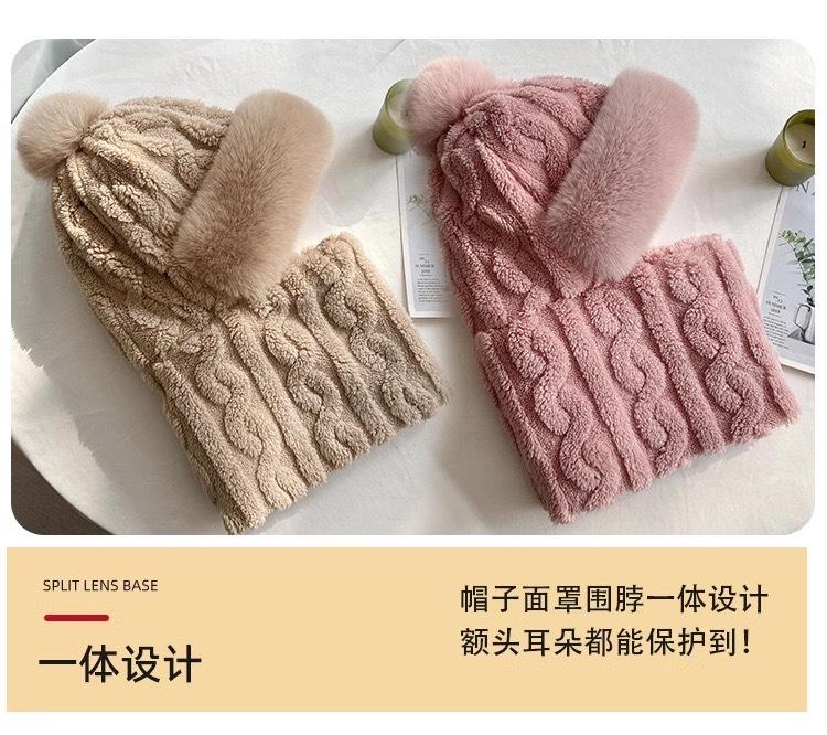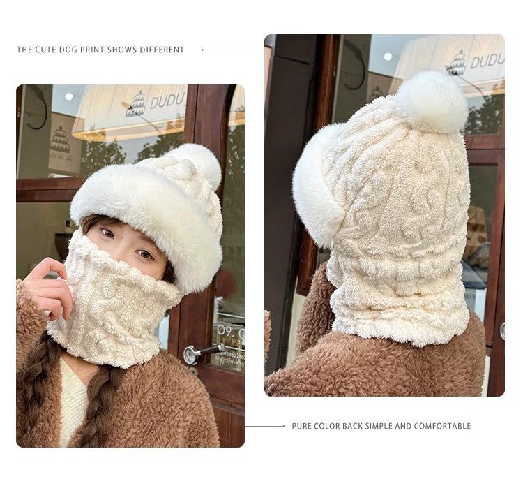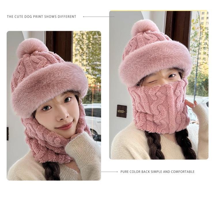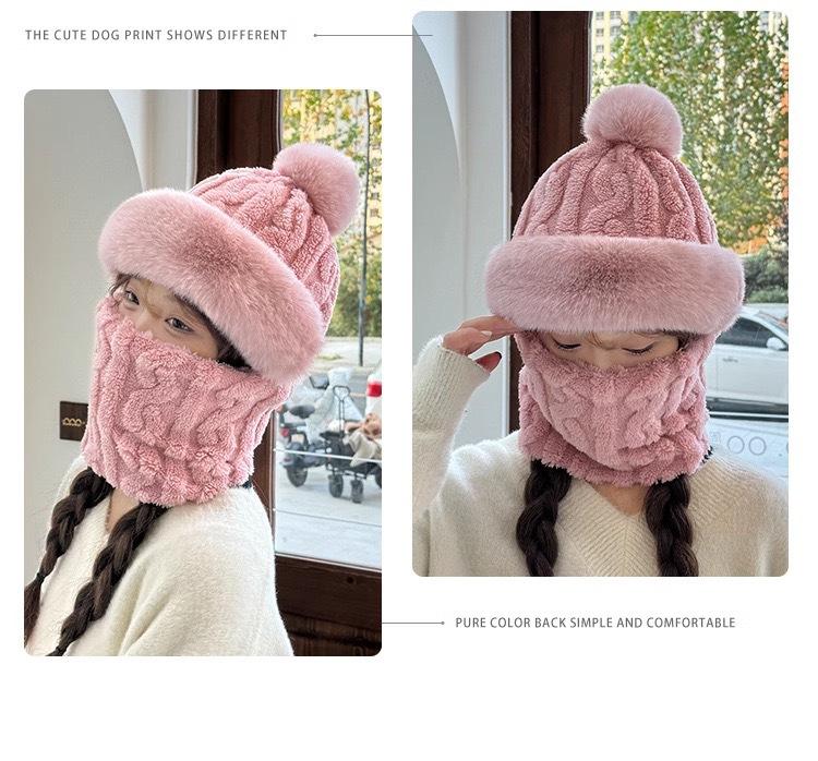 Gorro de invierno para mujer, máscara de equitación, gorro integral, bufanda cortavientos, forro polar, protección para las orejas, gorro cálido integrado.