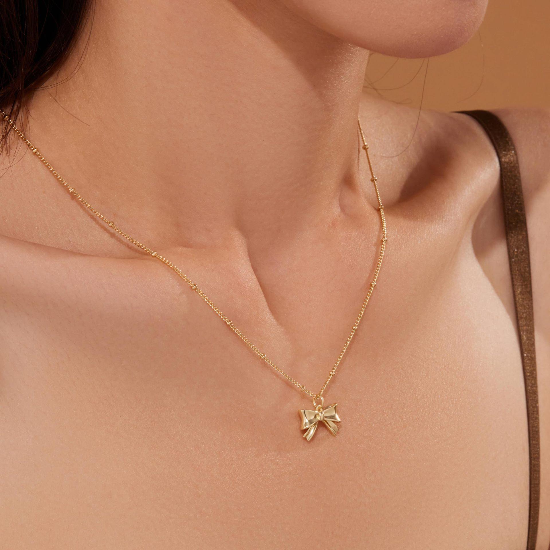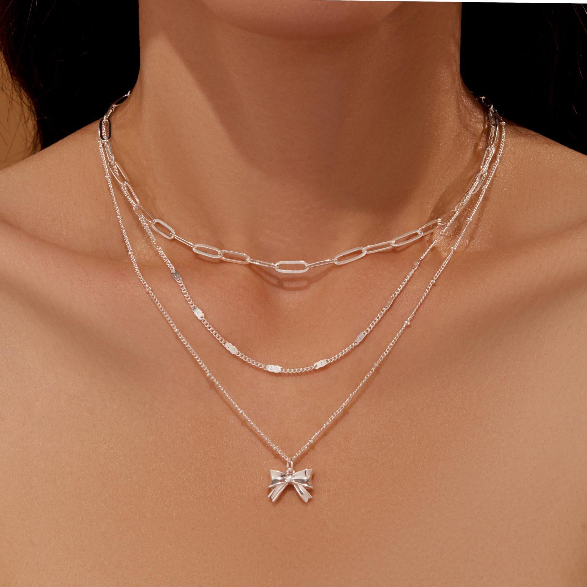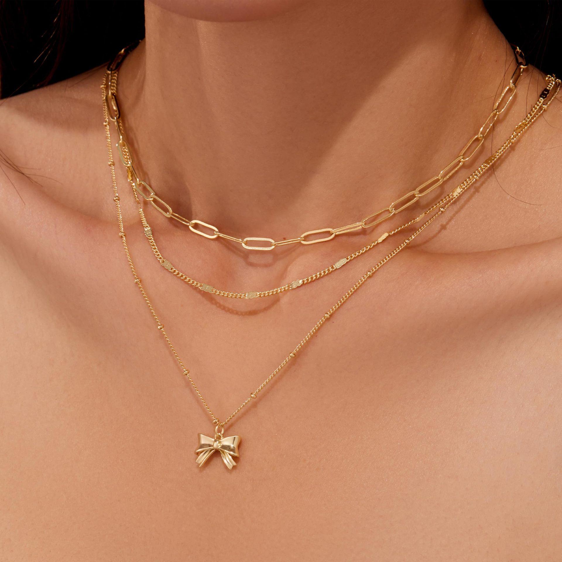 Collar con colgante de clip de papel con lazo chapado en oro de 14 quilates, nuevo, apilable y sencillo, de estilo transfronterizo.