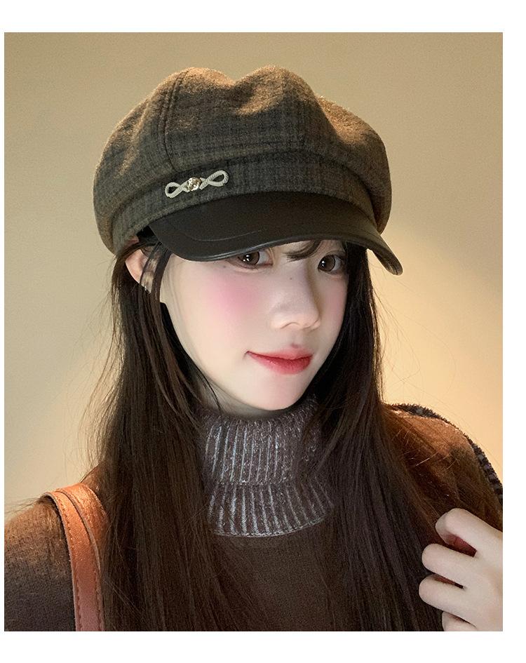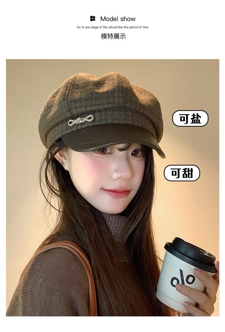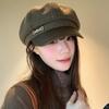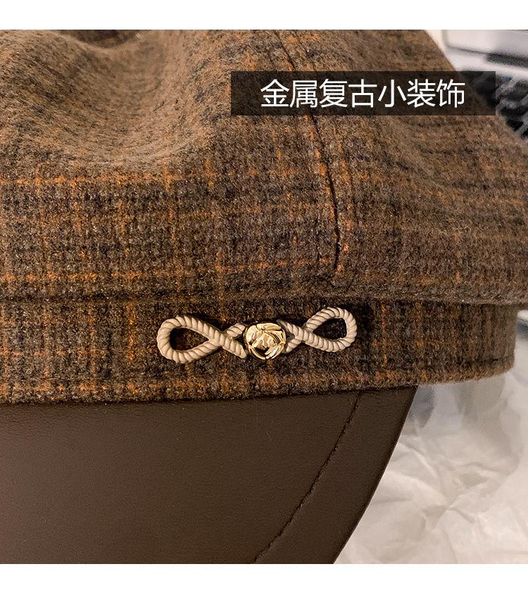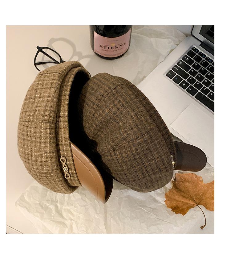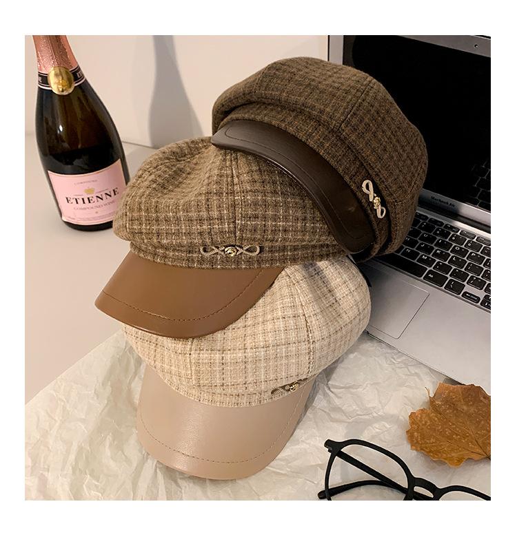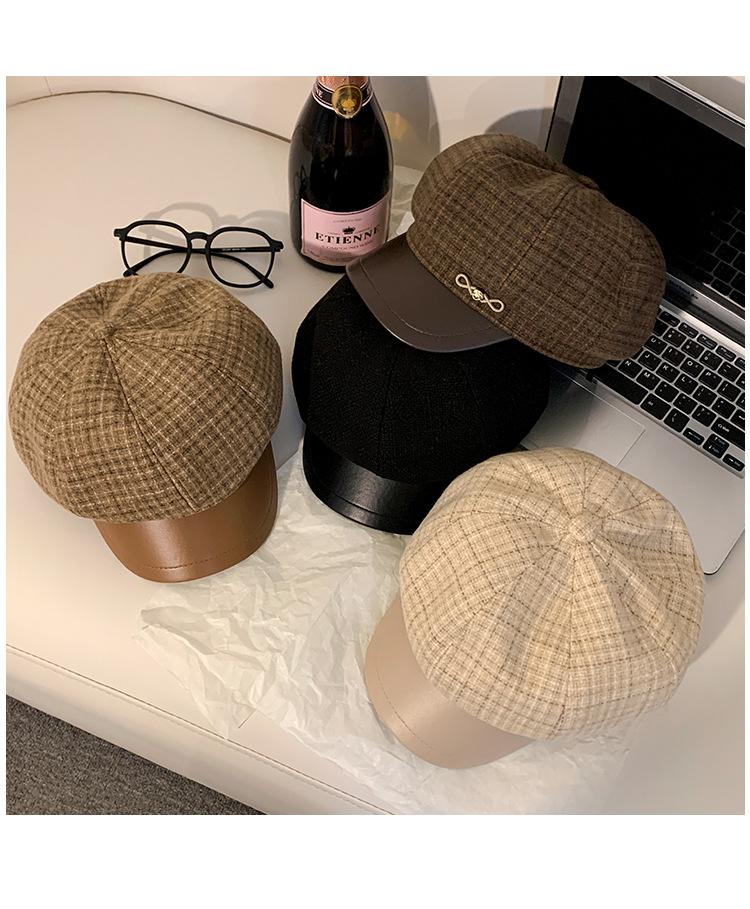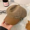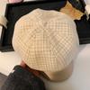 Boina a cuadros retro de estilo coreano para mujer, gorro de pintor británico de lana combinable, pequeño gorro octogonal, primavera y otoño de 2025