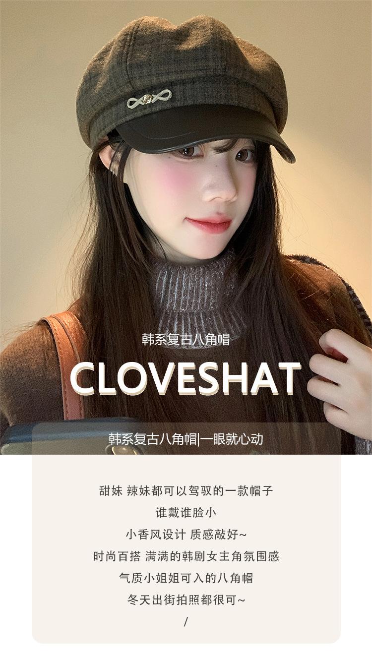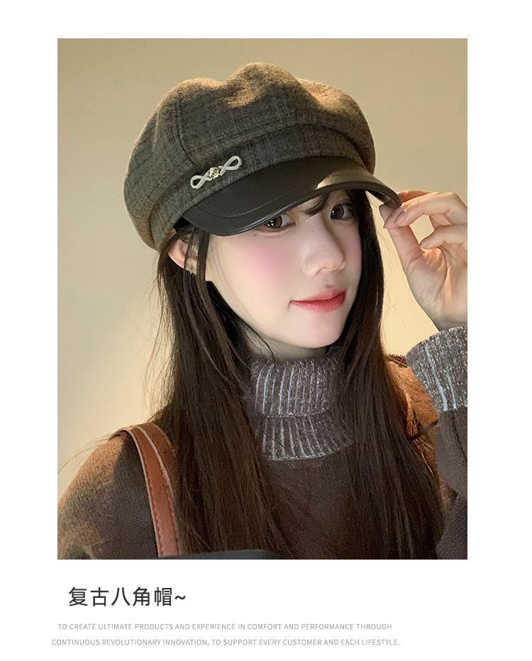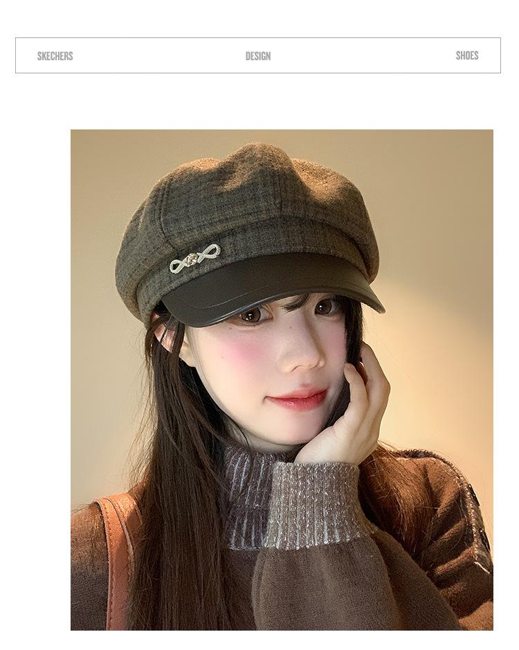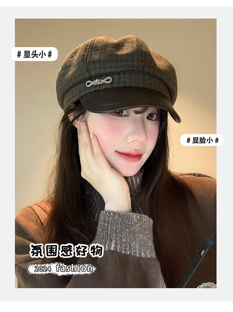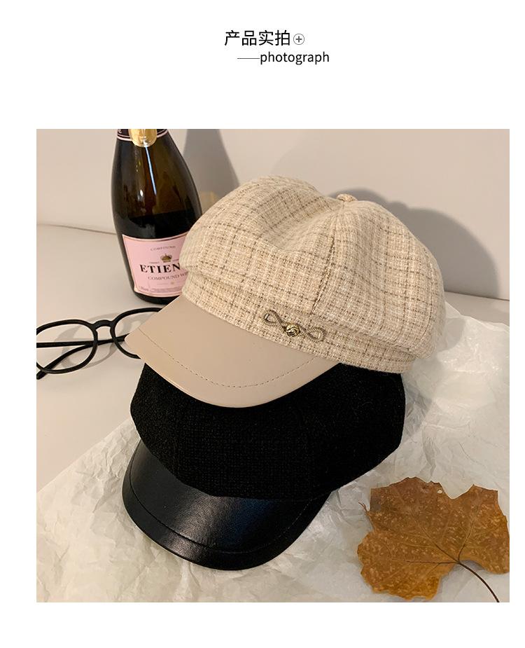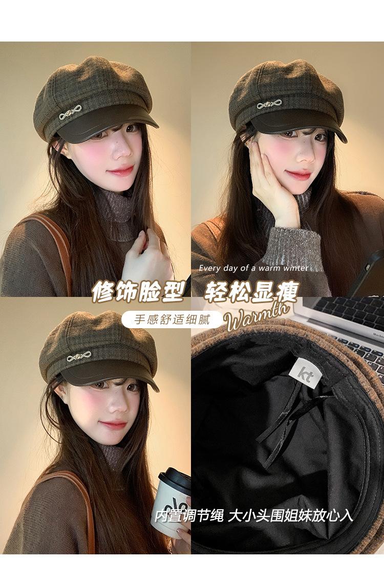 Boina a cuadros retro de estilo coreano para mujer, gorro de pintor británico de lana combinable, pequeño gorro octogonal, primavera y otoño de 2025