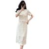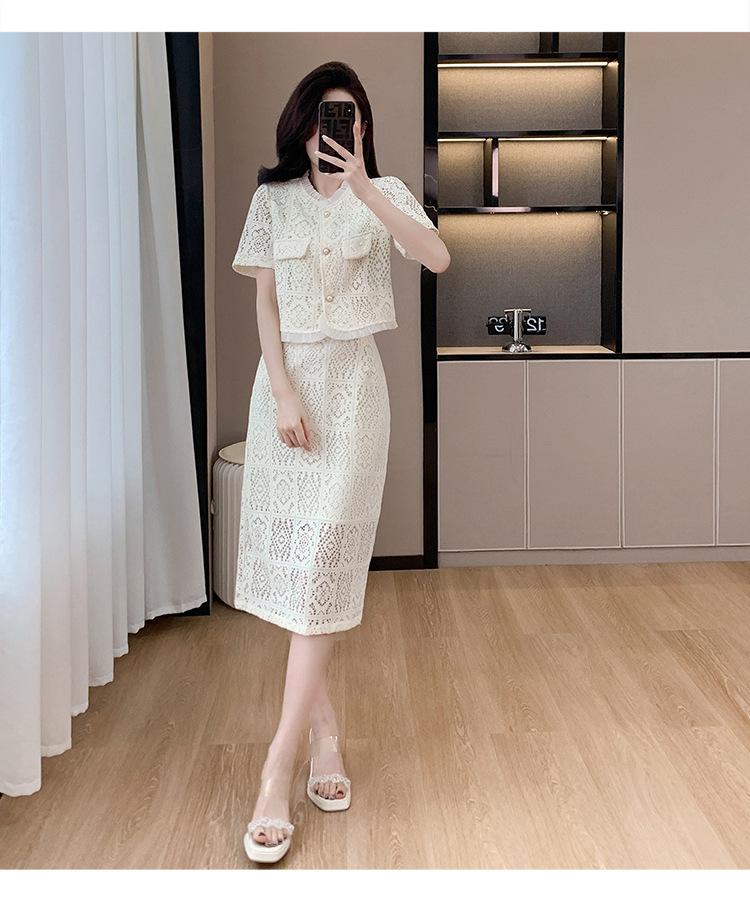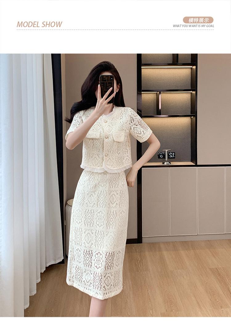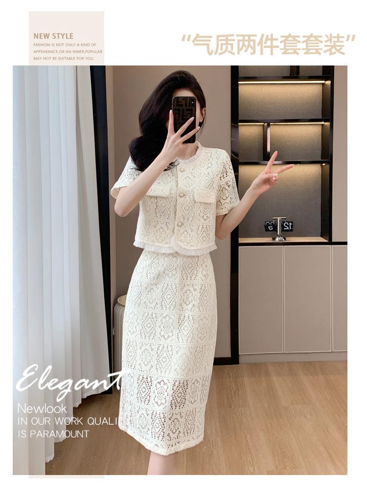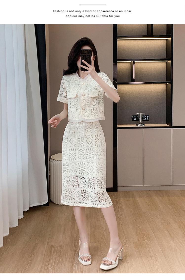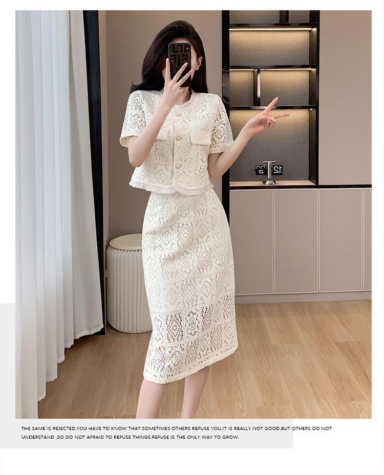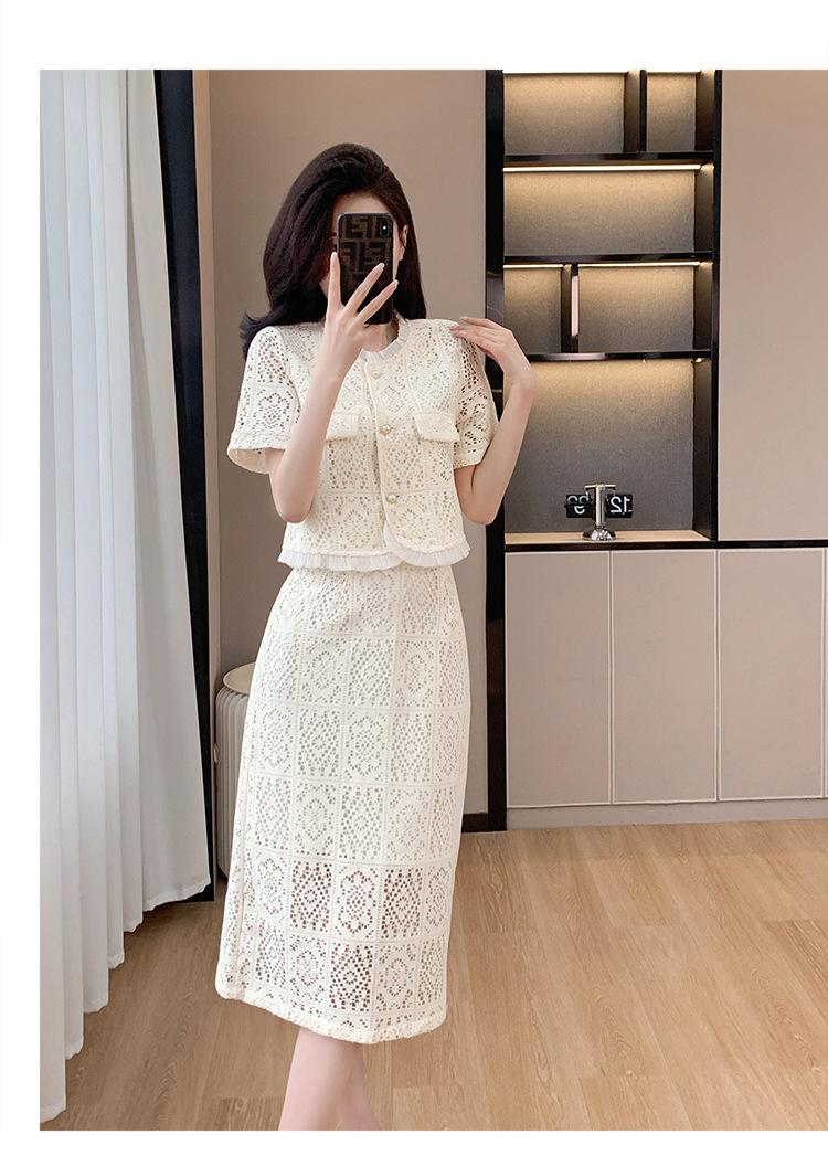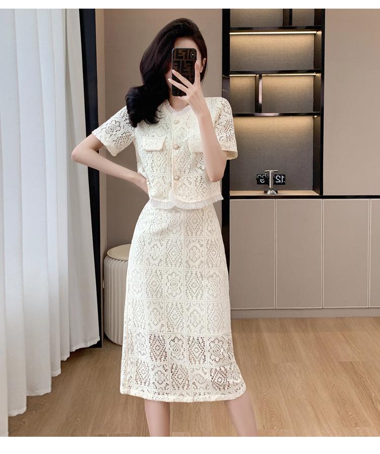 Traje de dos piezas con falda superior estilo Chanel, elegante, de alta calidad, estilo coreano, de verano, nuevo, a la moda, con costuras de encaje para mujer
