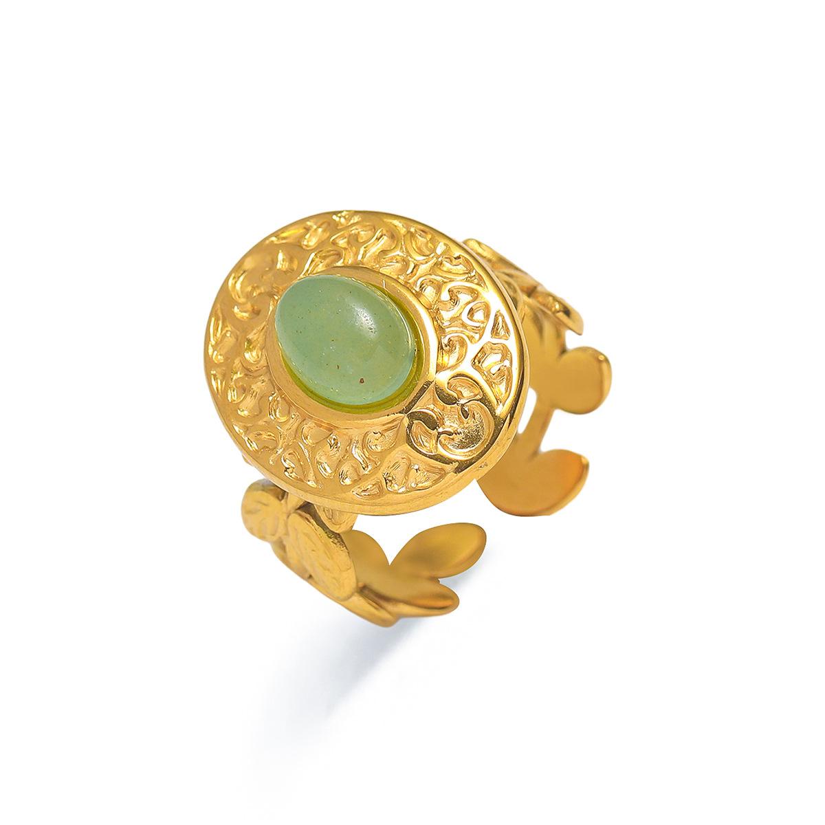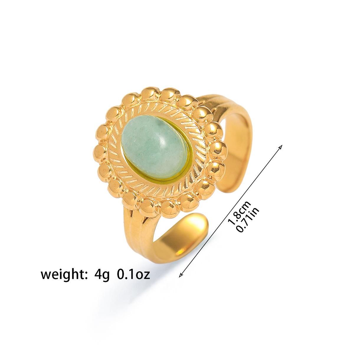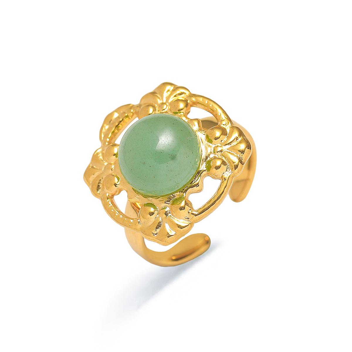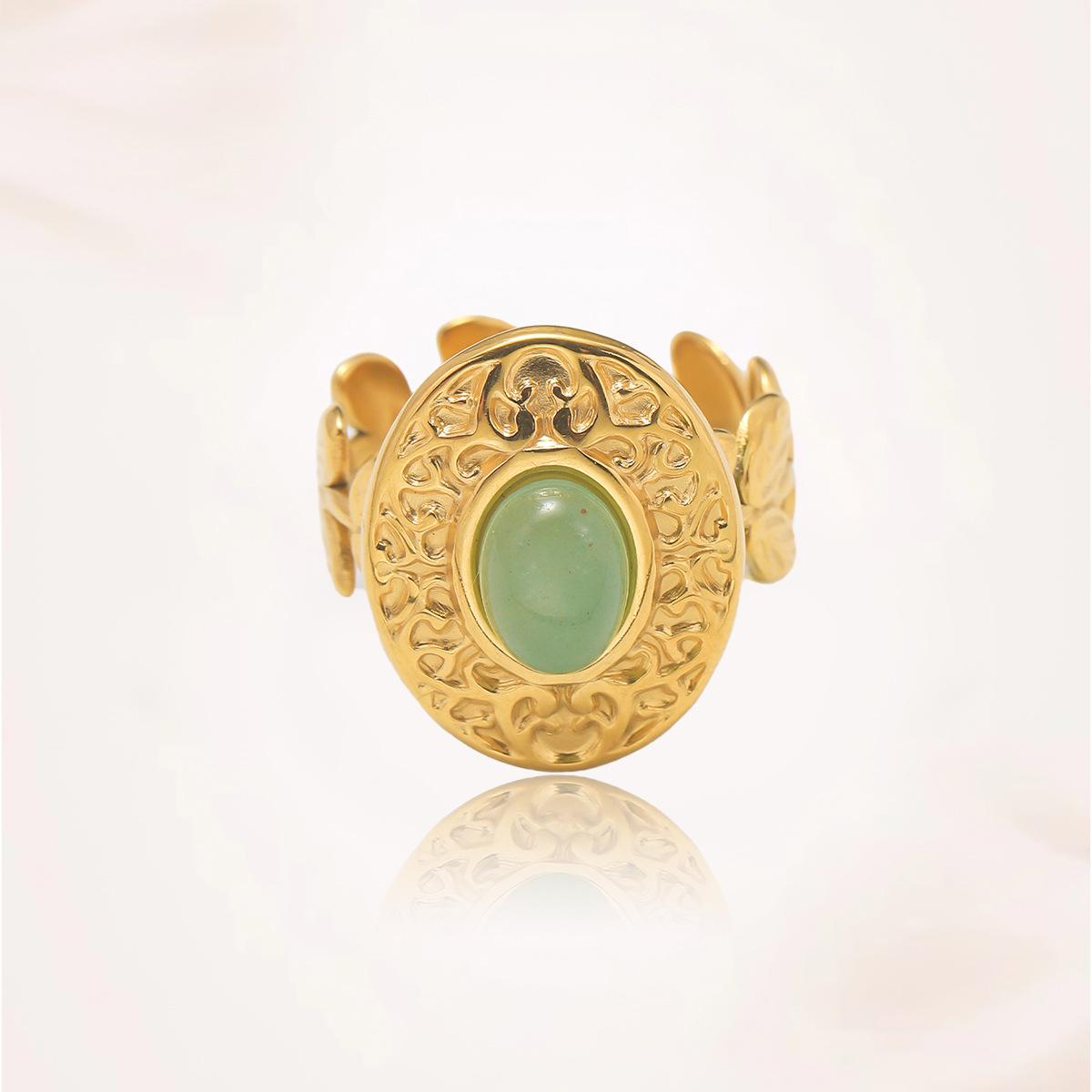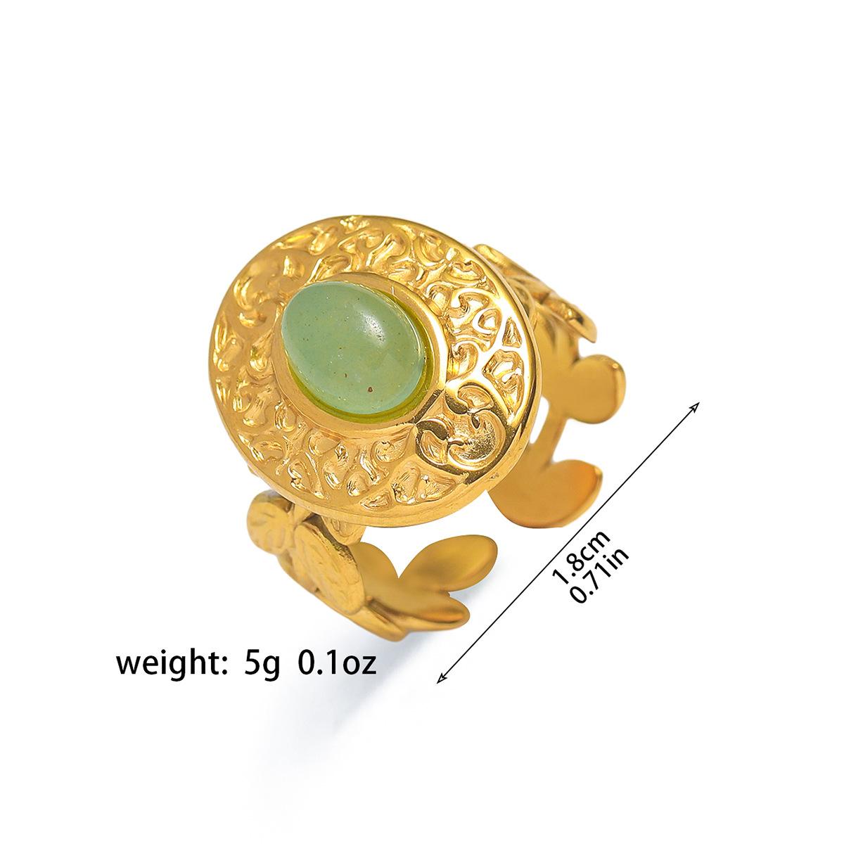 Anillo para Mujer Transfronterizo Retro Bohemio Acero Titanio Anillo Abierto Cristal de Fresa Verde Presión de Aceite Joyería de Mano