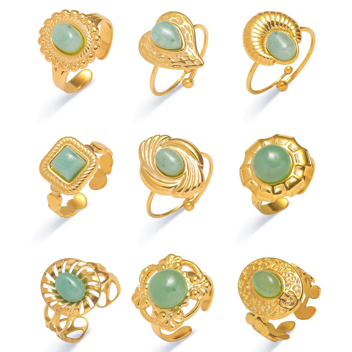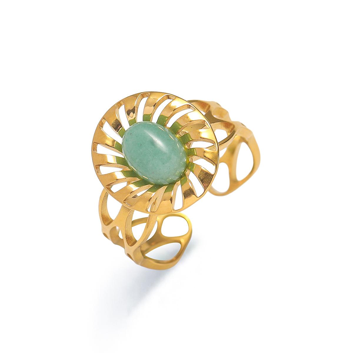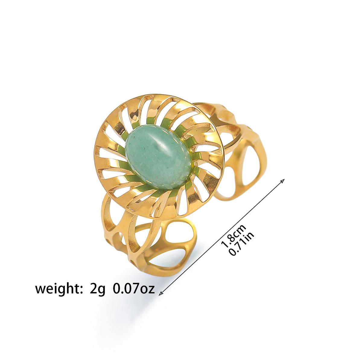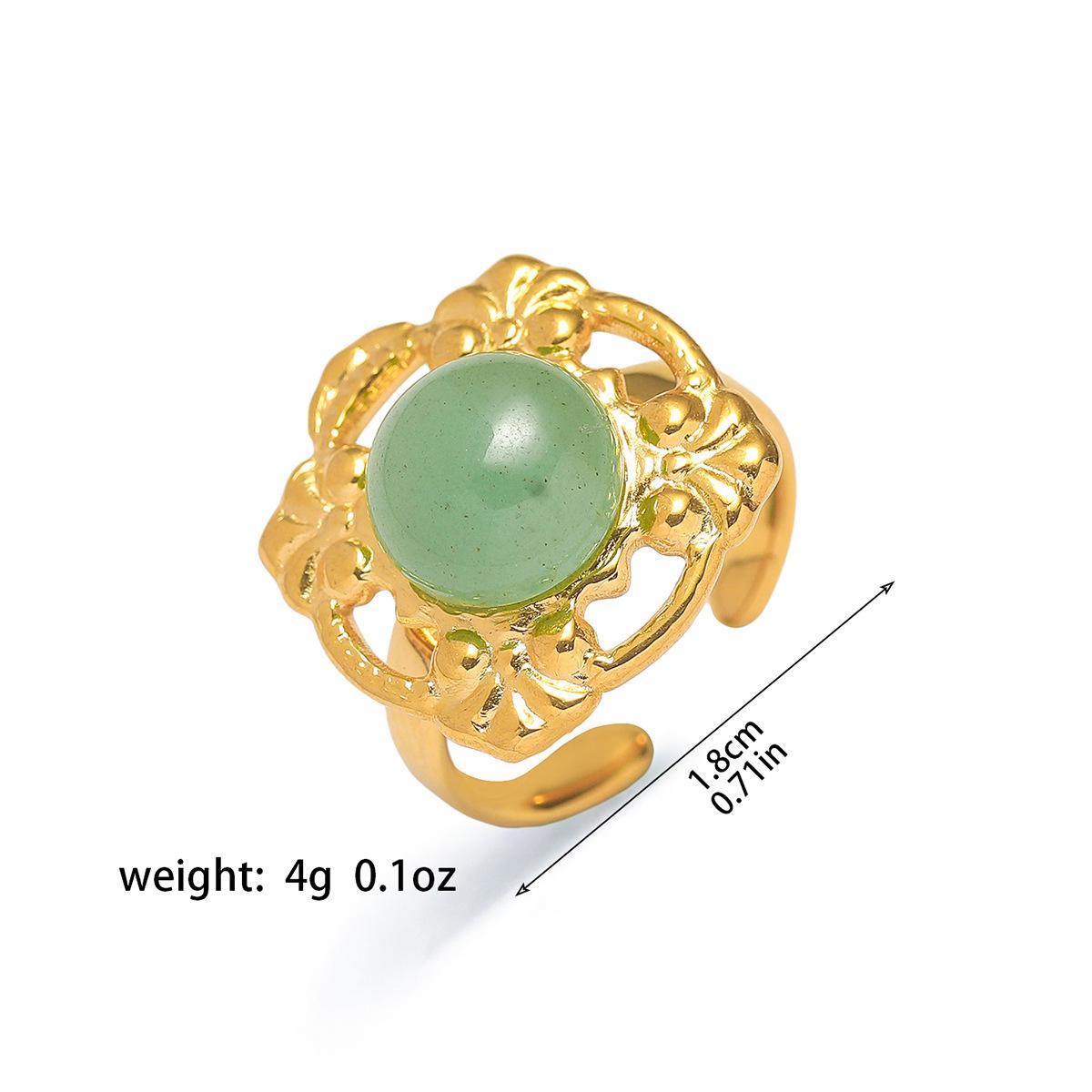 Anillo para Mujer Transfronterizo Retro Bohemio Acero Titanio Anillo Abierto Cristal de Fresa Verde Presión de Aceite Joyería de Mano