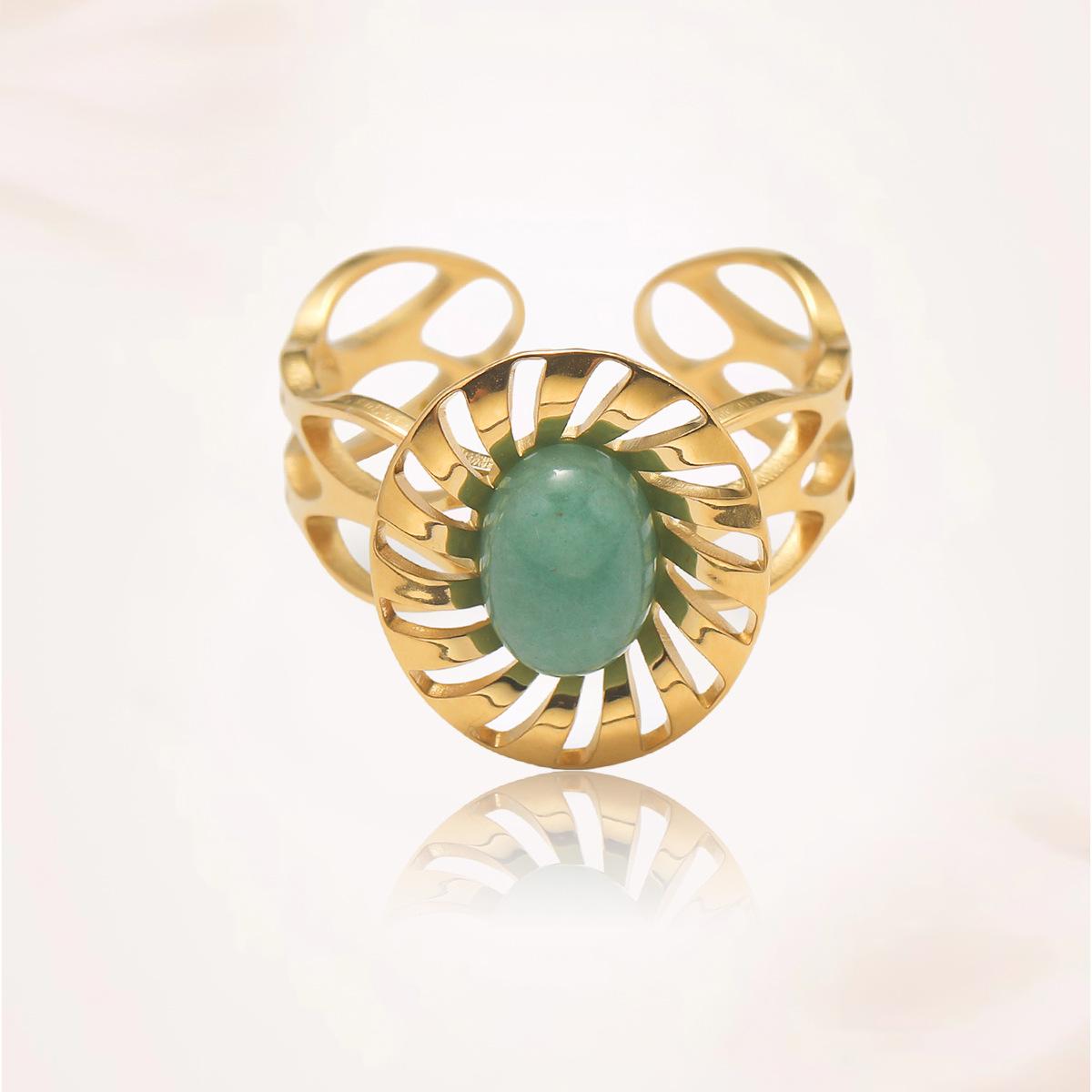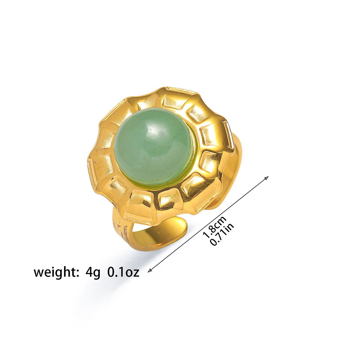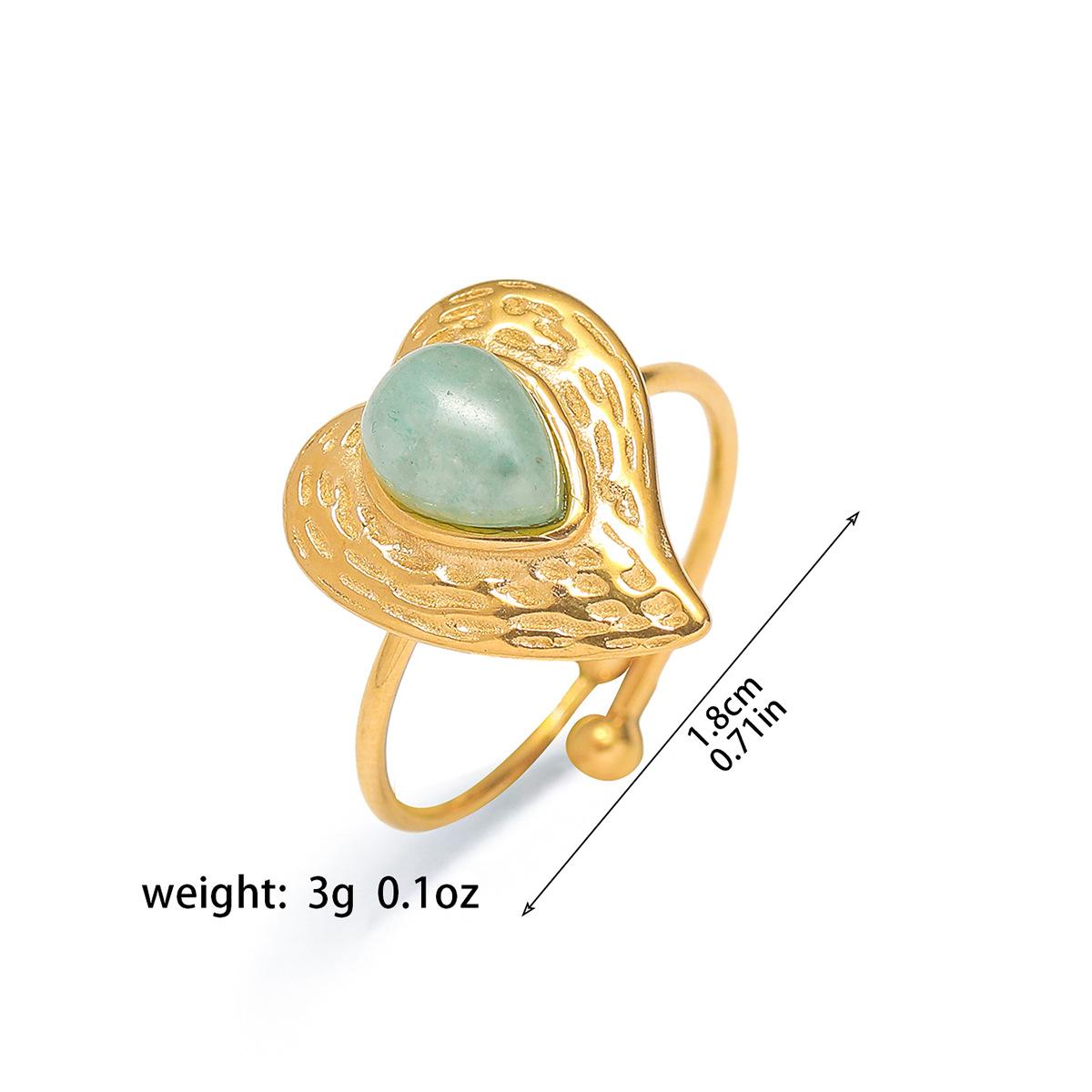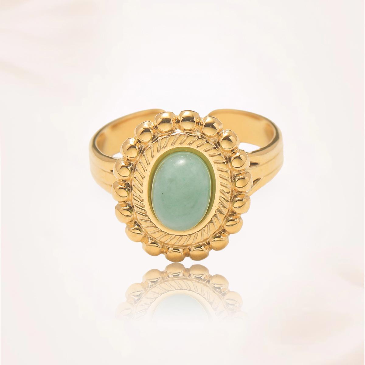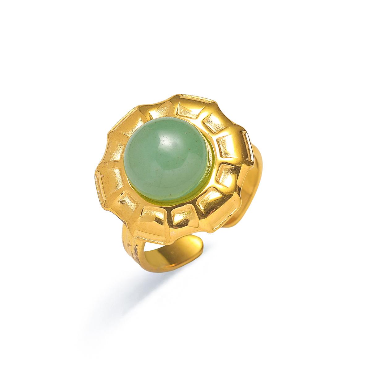 Anillo para Mujer Transfronterizo Retro Bohemio Acero Titanio Anillo Abierto Cristal de Fresa Verde Presión de Aceite Joyería de Mano