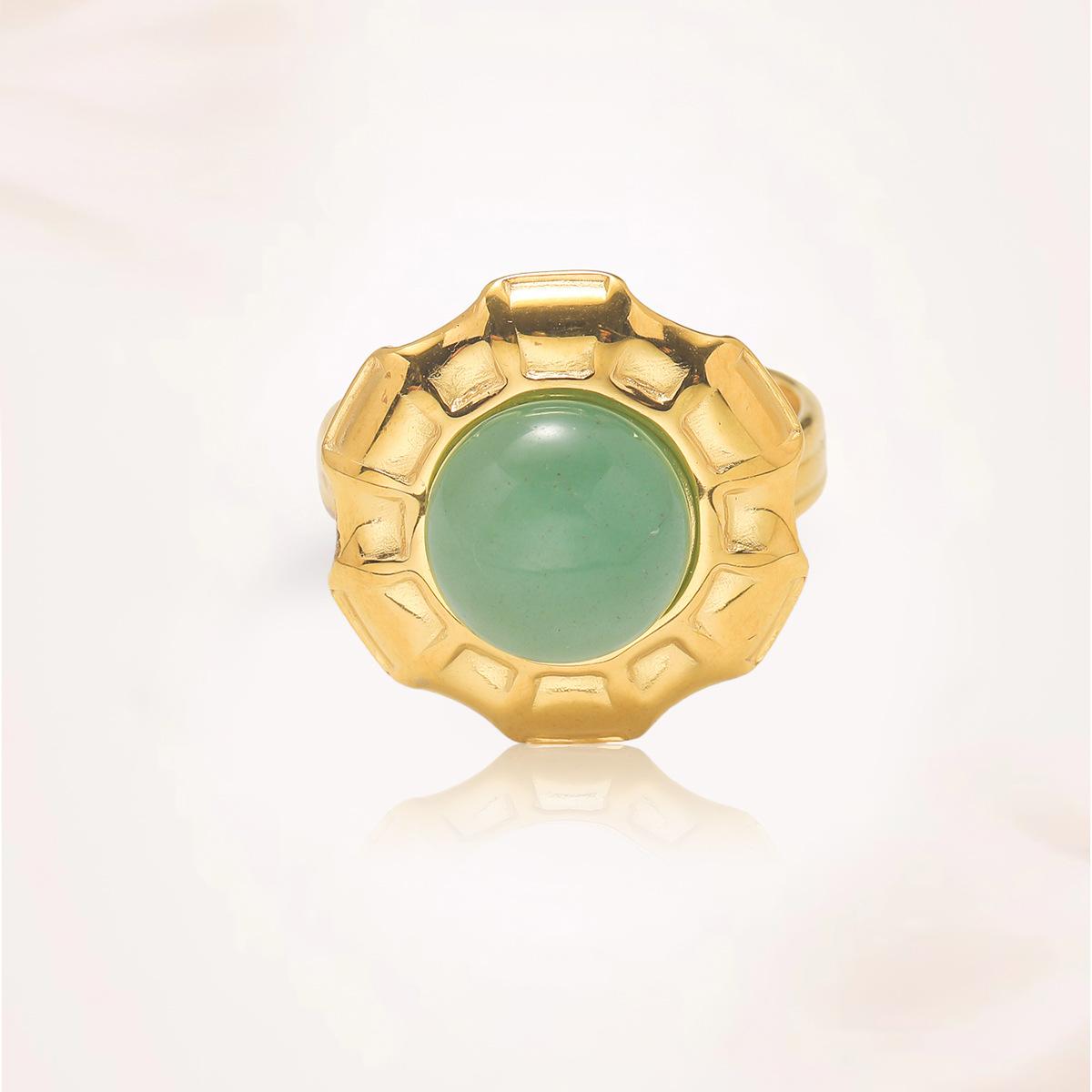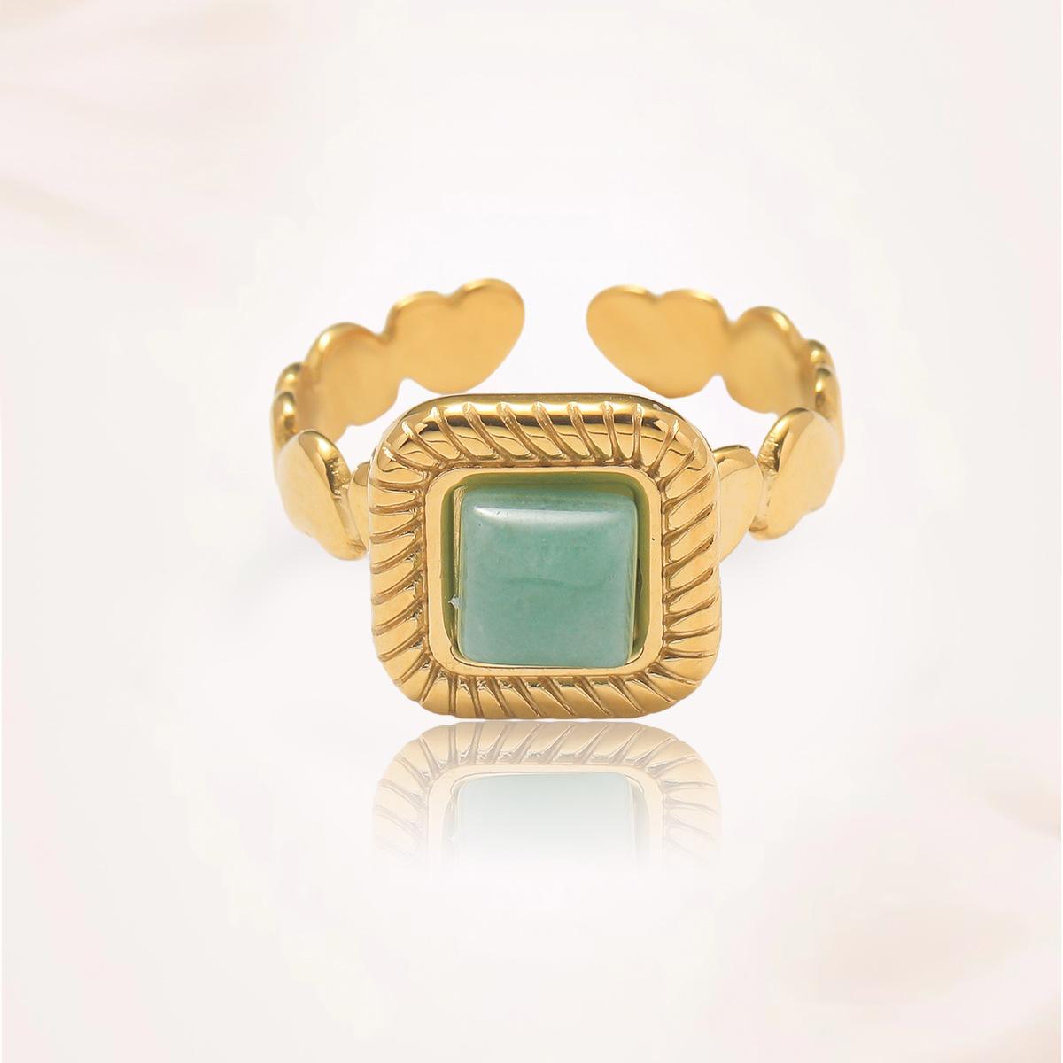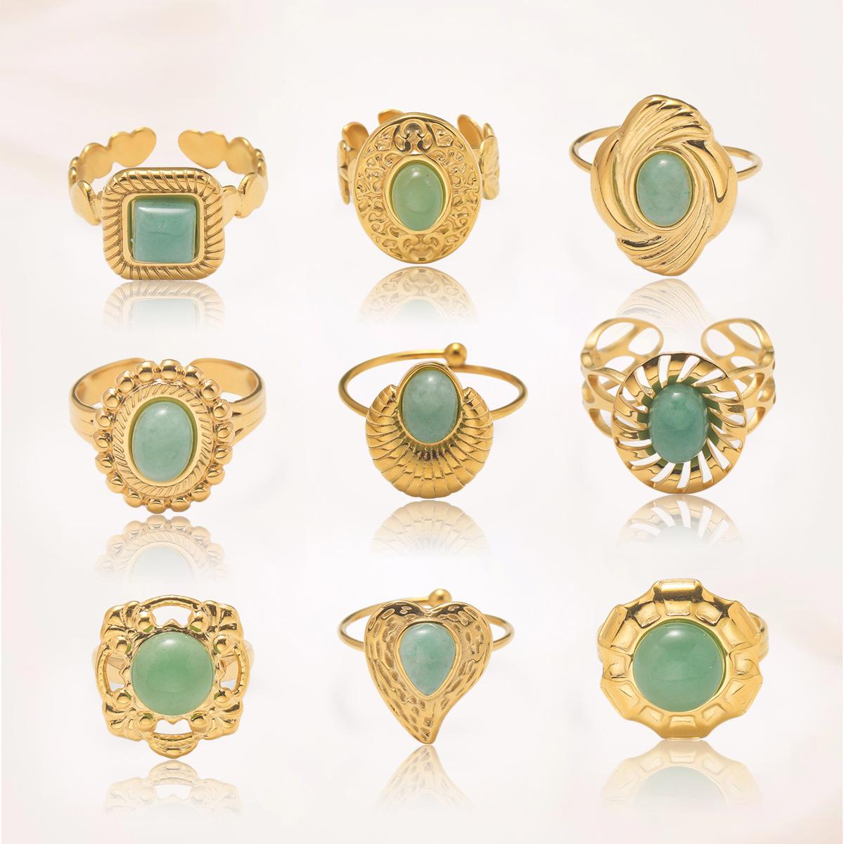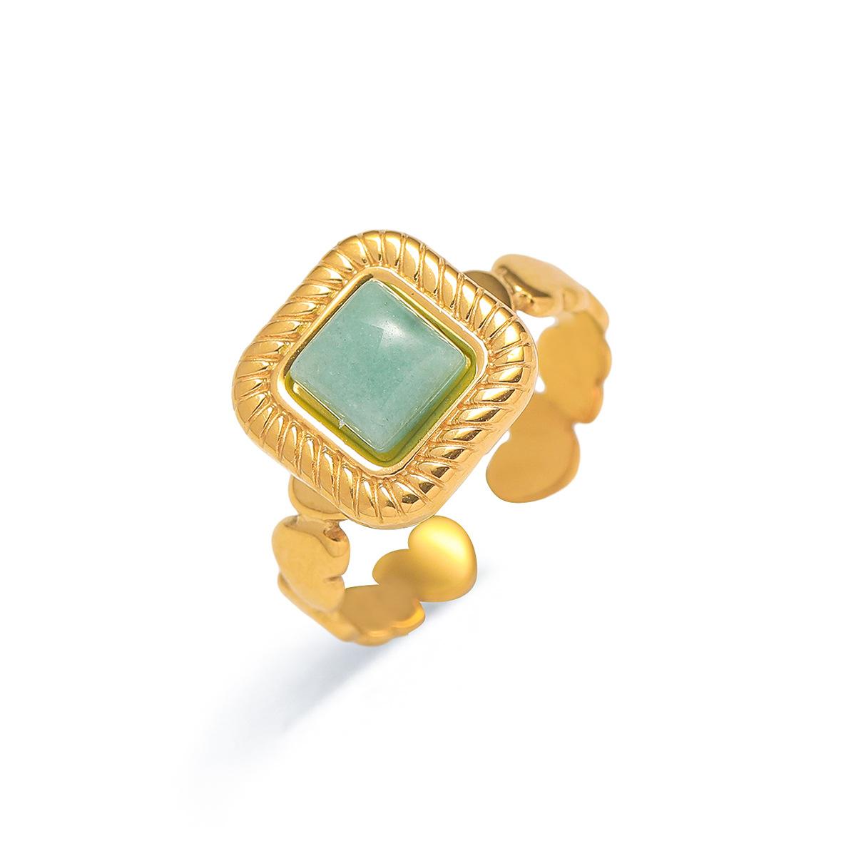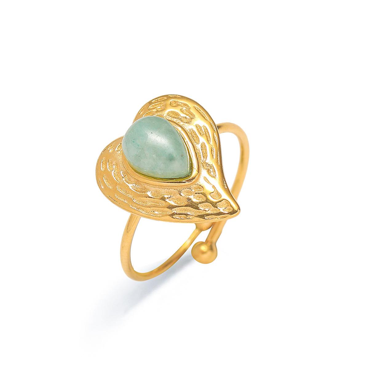 Anillo para Mujer Transfronterizo Retro Bohemio Acero Titanio Anillo Abierto Cristal de Fresa Verde Presión de Aceite Joyería de Mano