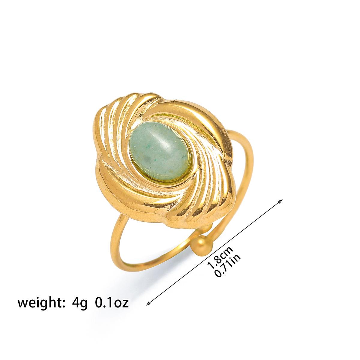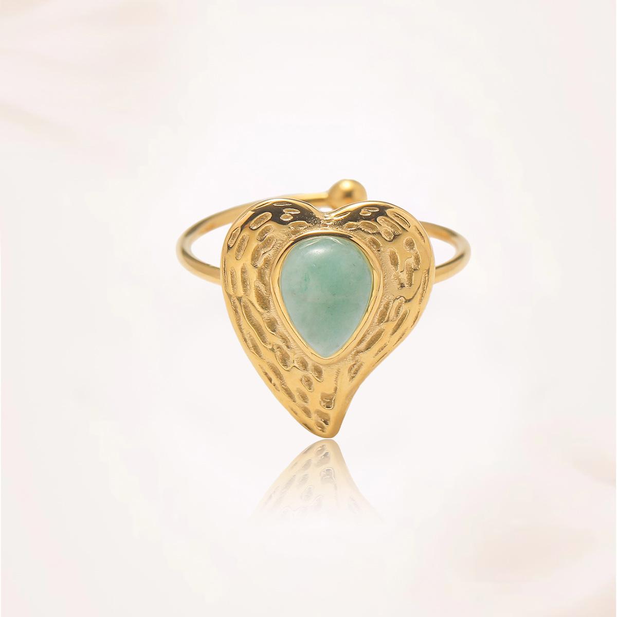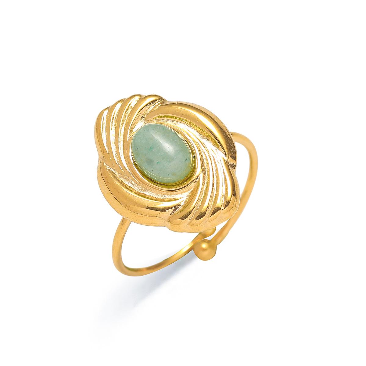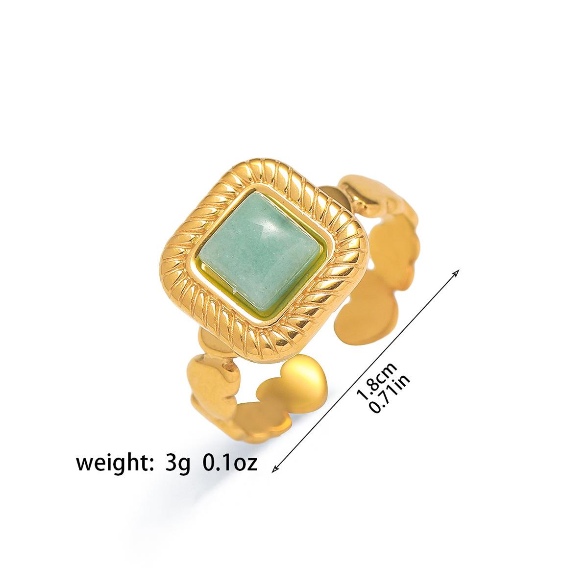 Anillo para Mujer Transfronterizo Retro Bohemio Acero Titanio Anillo Abierto Cristal de Fresa Verde Presión de Aceite Joyería de Mano