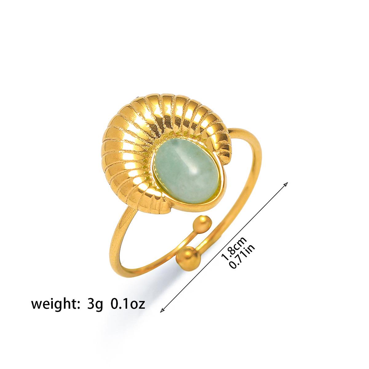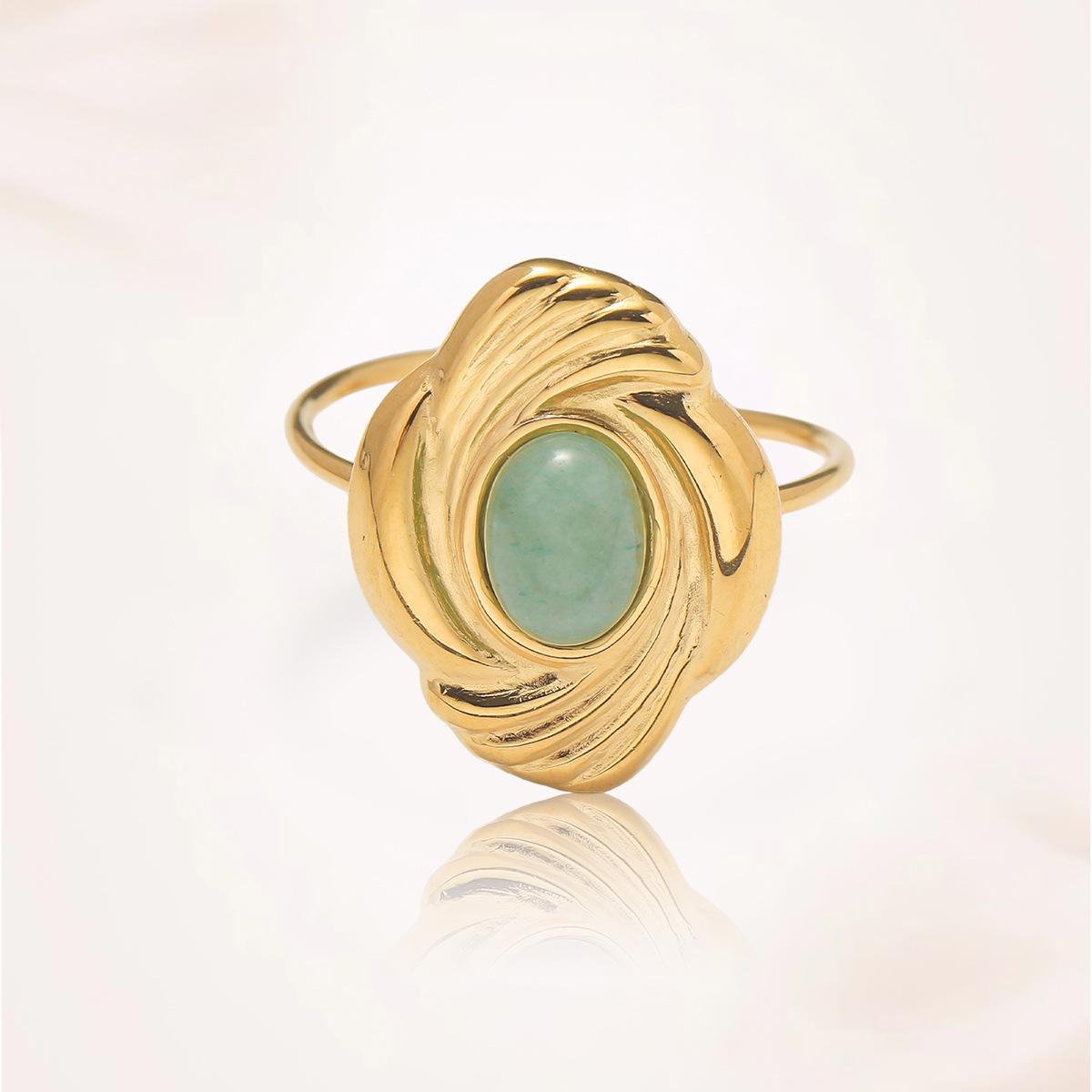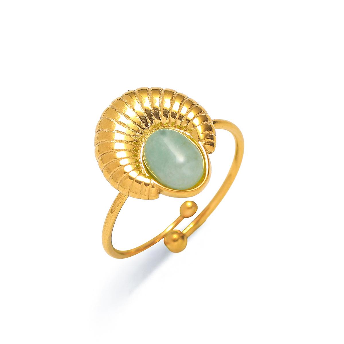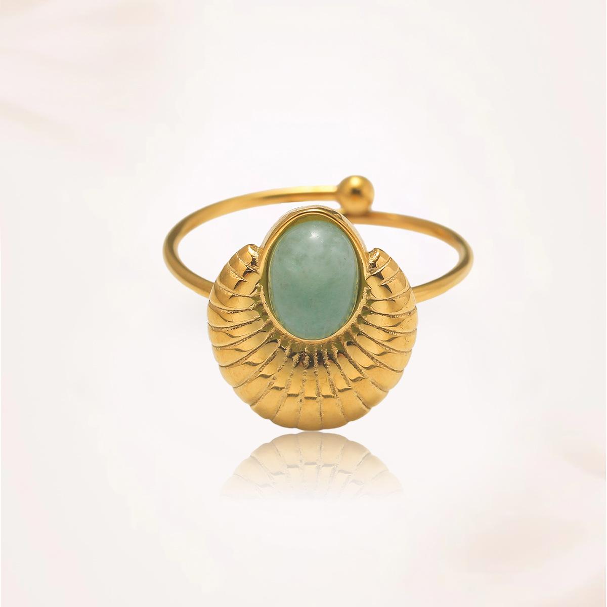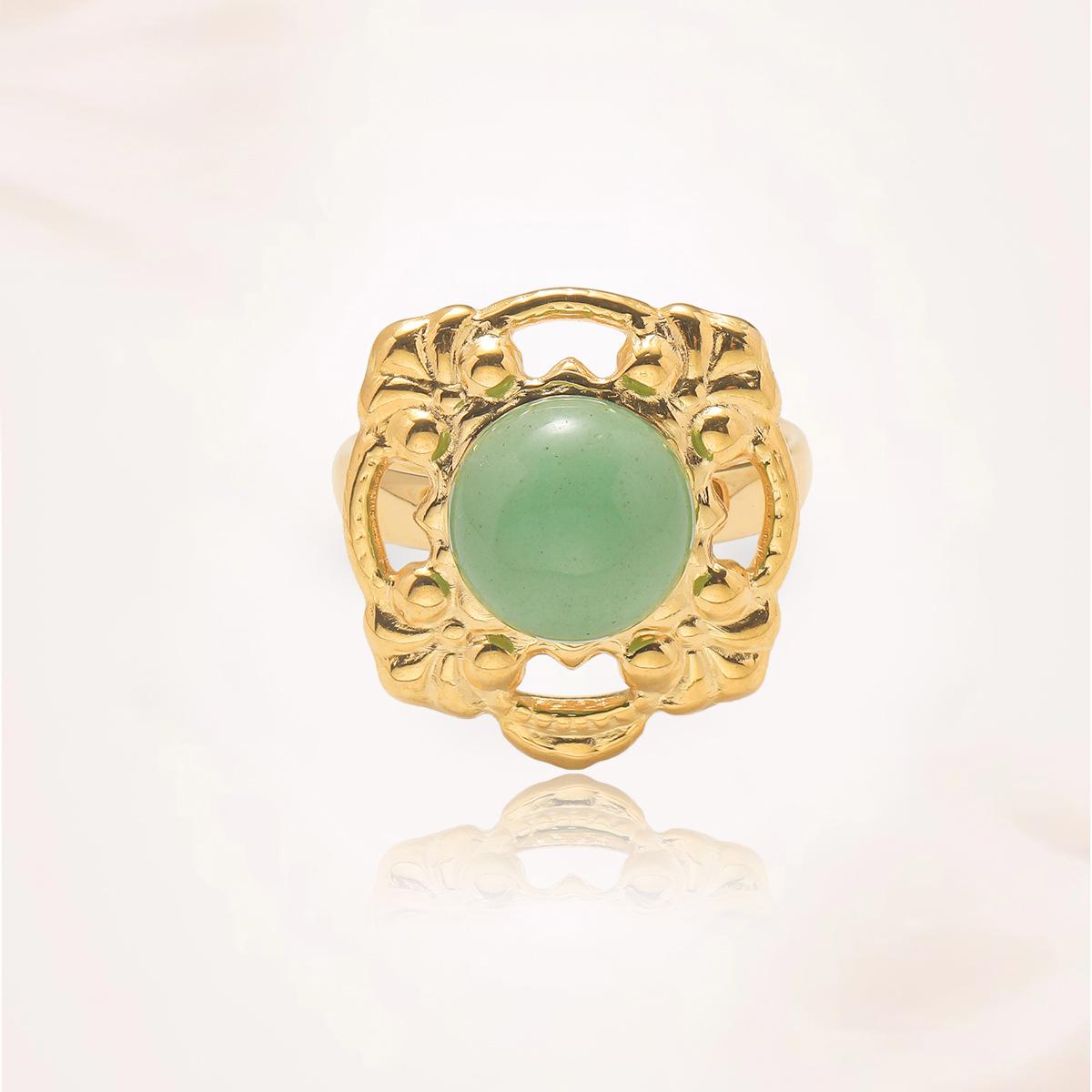 Anillo para Mujer Transfronterizo Retro Bohemio Acero Titanio Anillo Abierto Cristal de Fresa Verde Presión de Aceite Joyería de Mano
