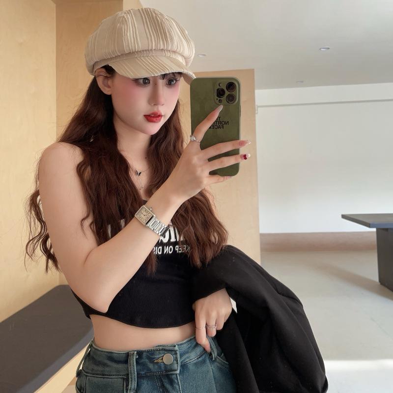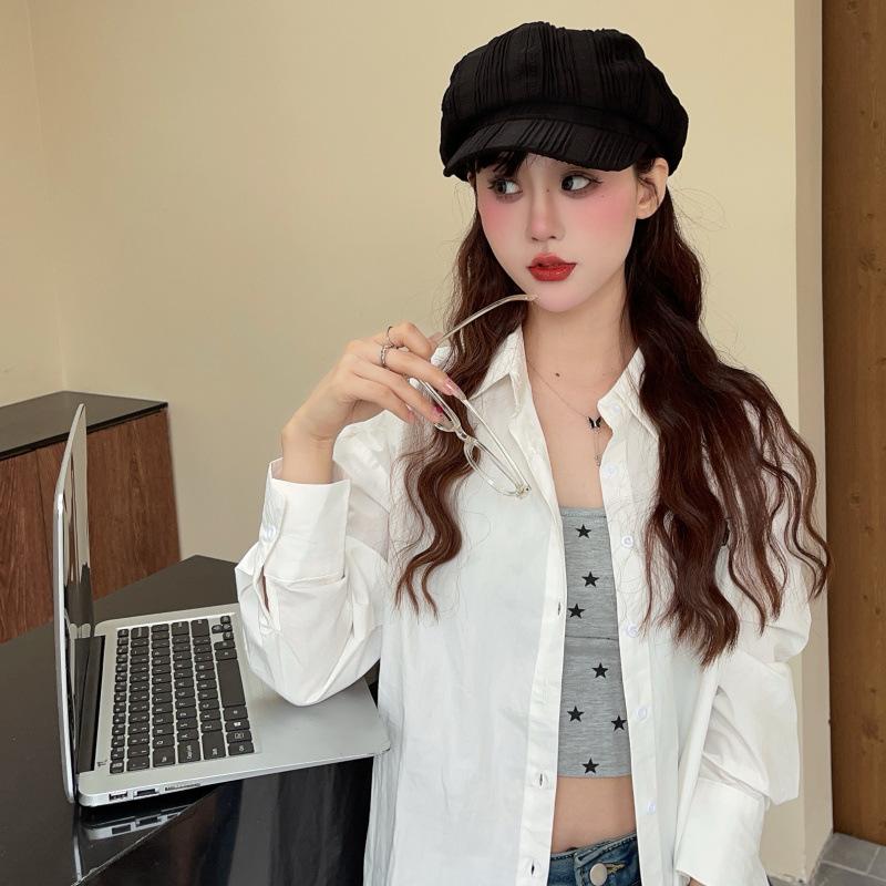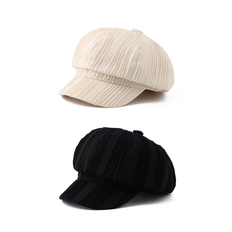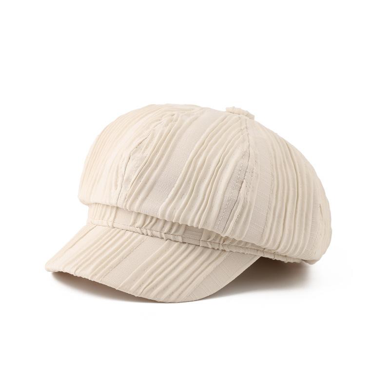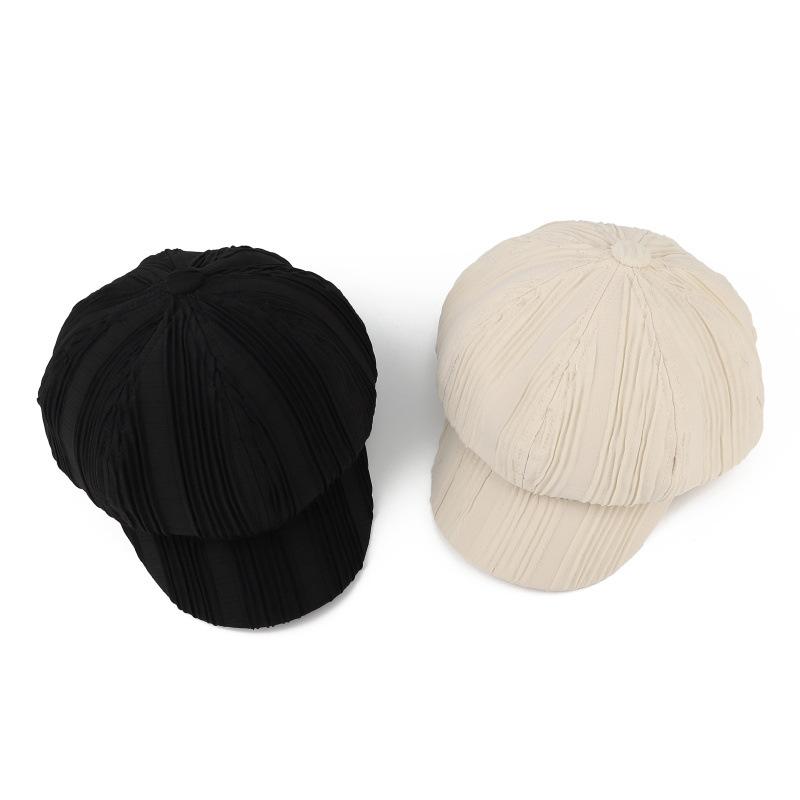 Boina Plisada Estilo Japonés para Mujer Primavera y Otoño Delgada Transpirable Gorra Octagonal Moda Estilo Coreano Versátil Gorra Pequeña de Moda