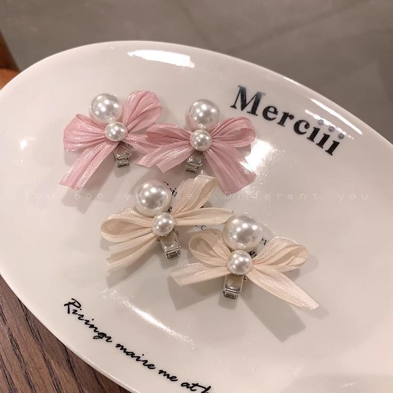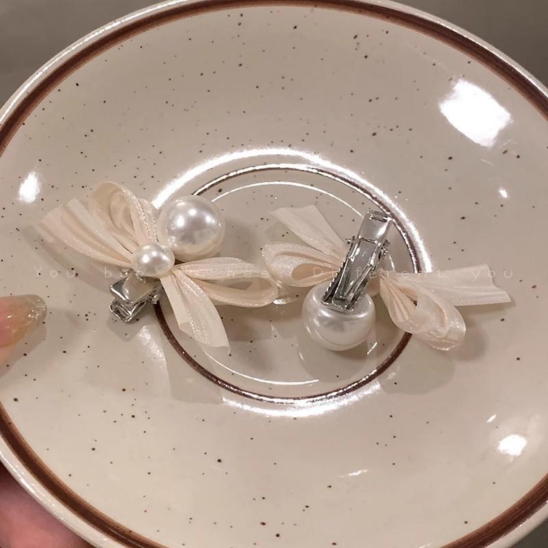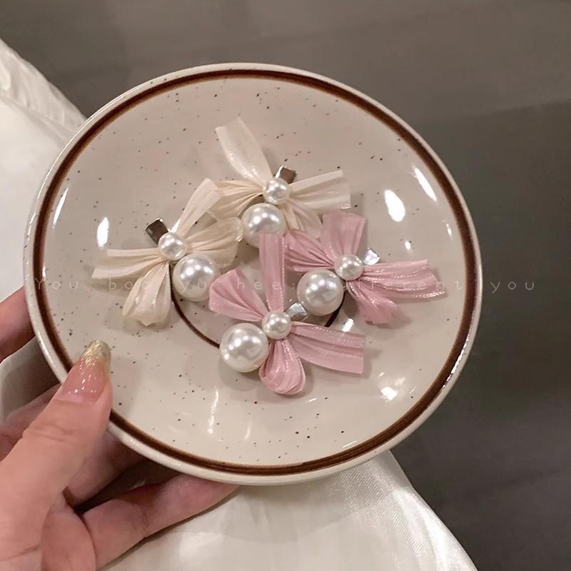 Horquilla con lazo de perla para novia francesa, accesorio para el cabello con flequillo lateral de alta gama para mujer, horquilla rota para el cabello