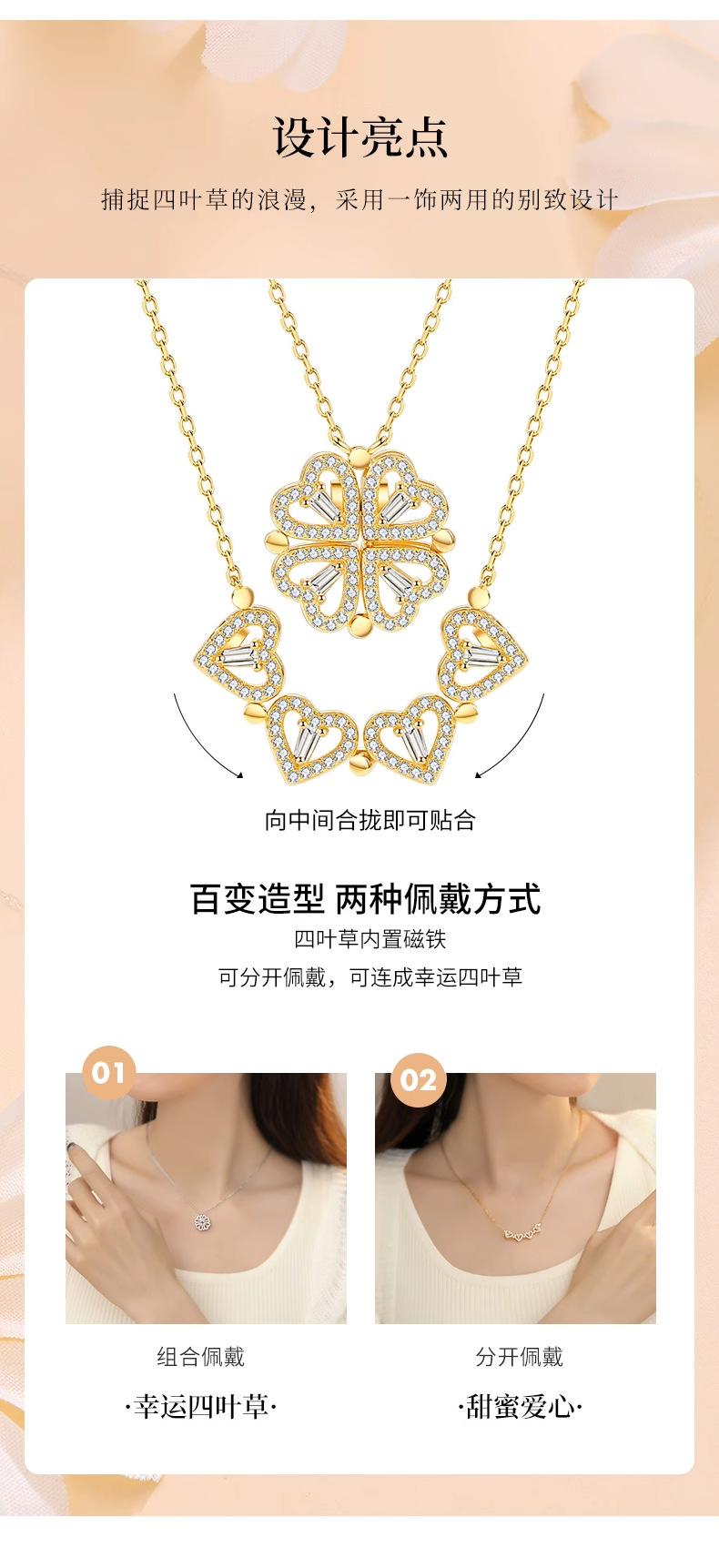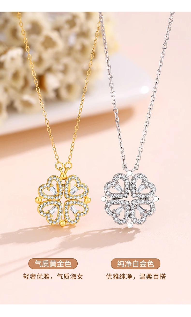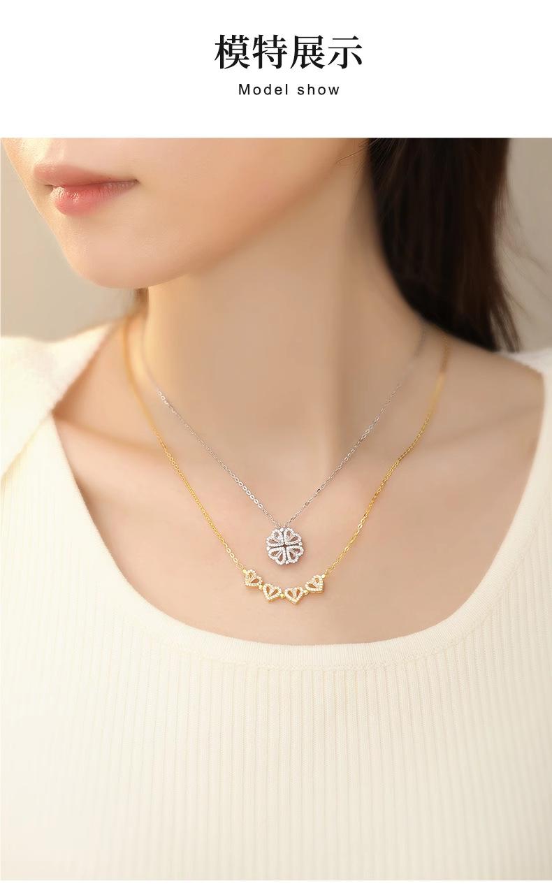 Nuevo collar de trébol de cuatro hojas s925 para mujer, cadena de clavícula de amor de dos piezas, colgante de nicho de alta calidad, regalo de San Valentín