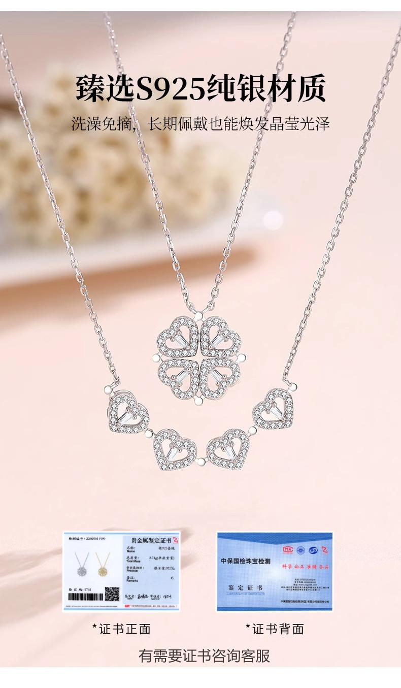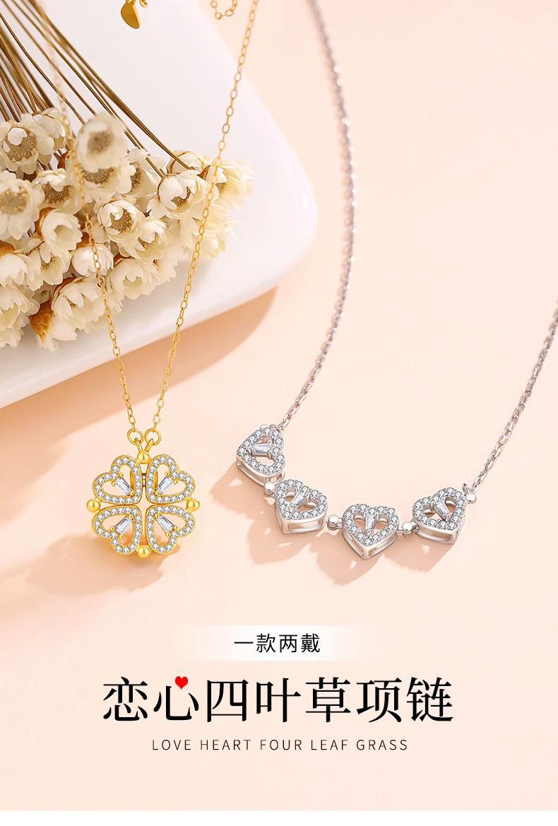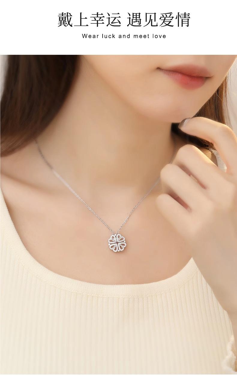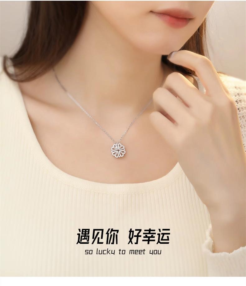 Nuevo collar de trébol de cuatro hojas s925 para mujer, cadena de clavícula de amor de dos piezas, colgante de nicho de alta calidad, regalo de San Valentín