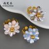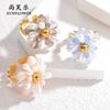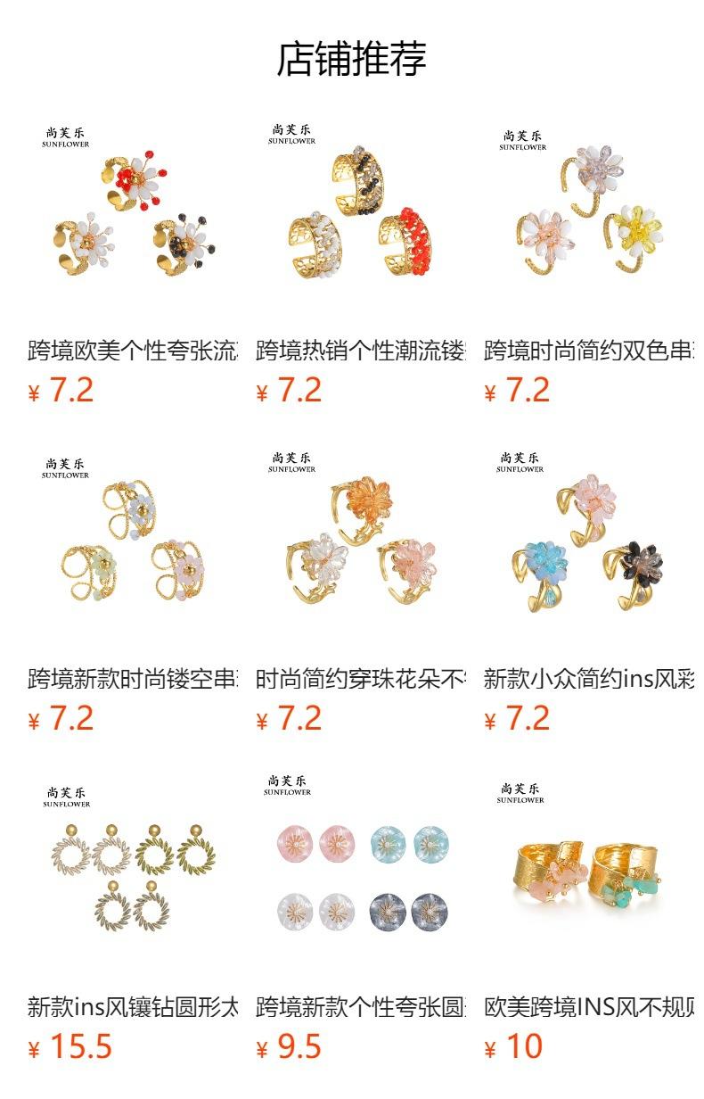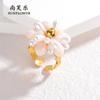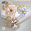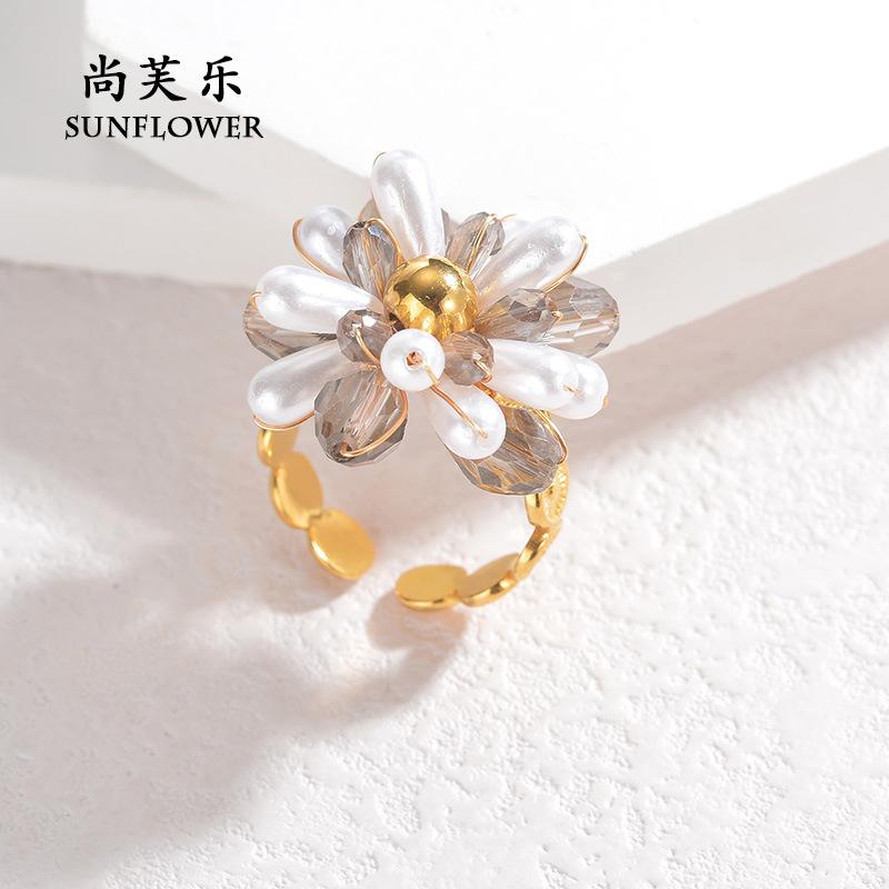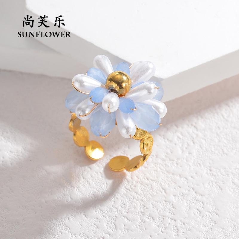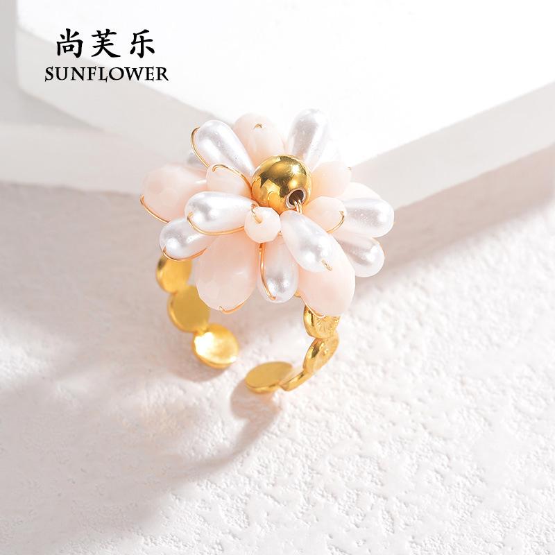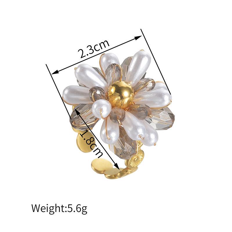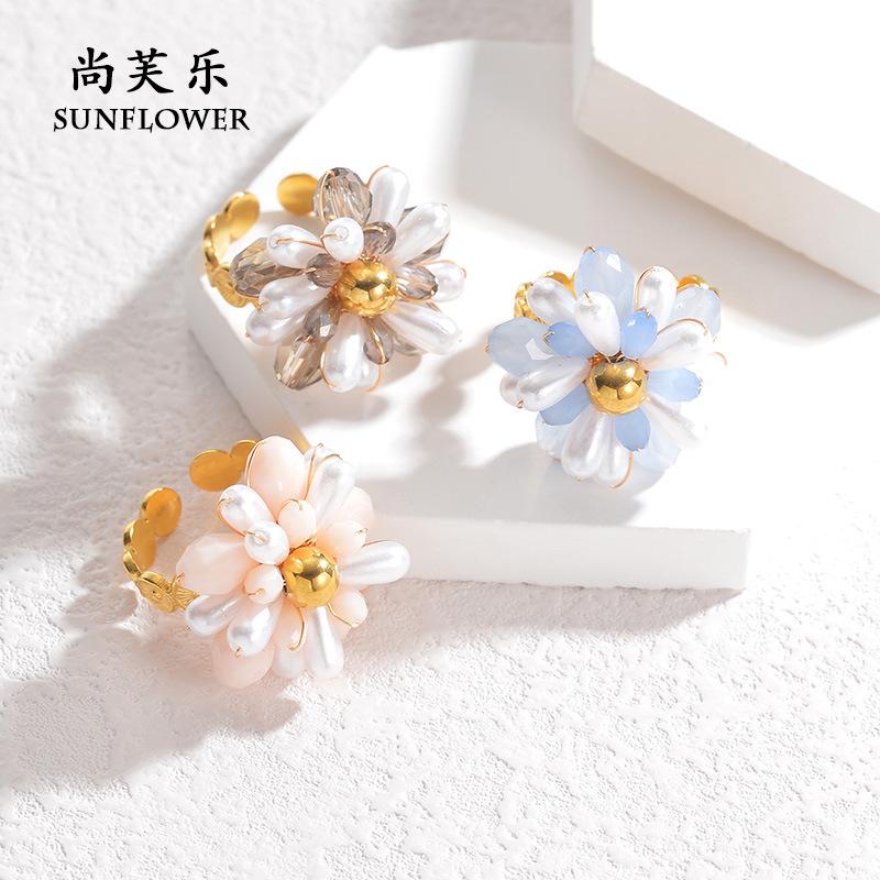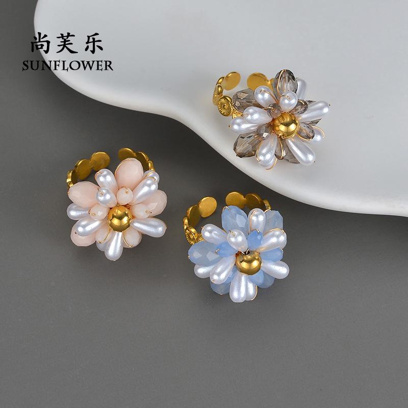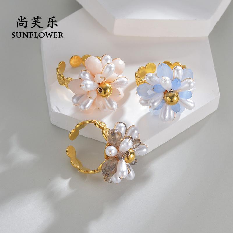 Anillo de Apertura de Acero de Titanio con Flor de Cuentas de Color Elegante de Nueva Moda Transfronteriza, Pieza de Mano Nicho Simple de Alta Gama