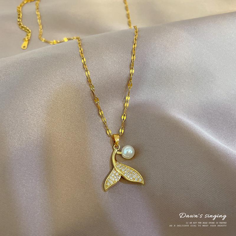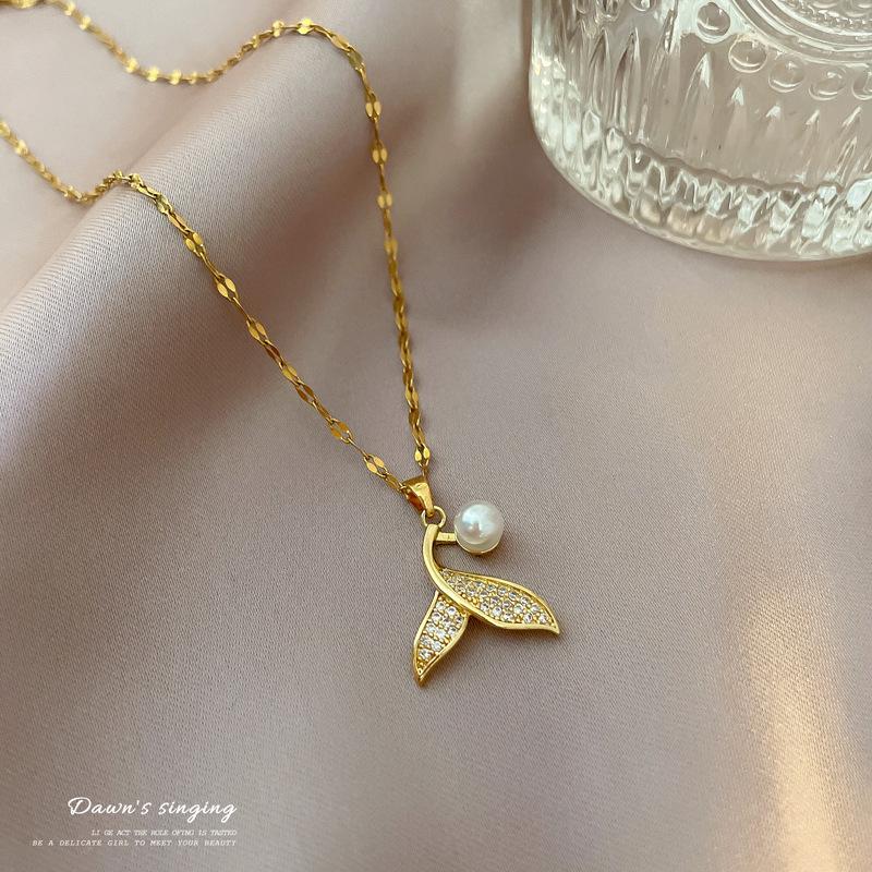 [Acero de Titanio] Collar de Perla de Sirena con Temperamento de Diamantes Micro-Incrustados para Mujer, Estilo Exquisito, Cadena para Clavícula de Celebridad de Internet Ins, Accesorios