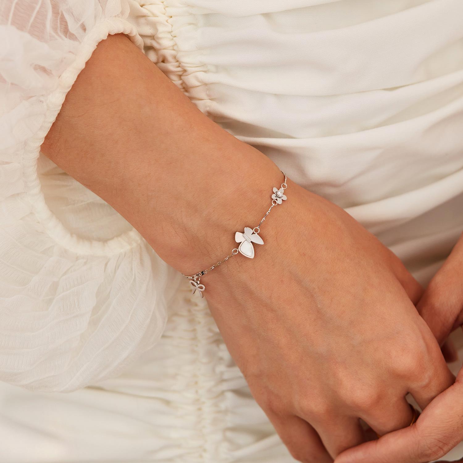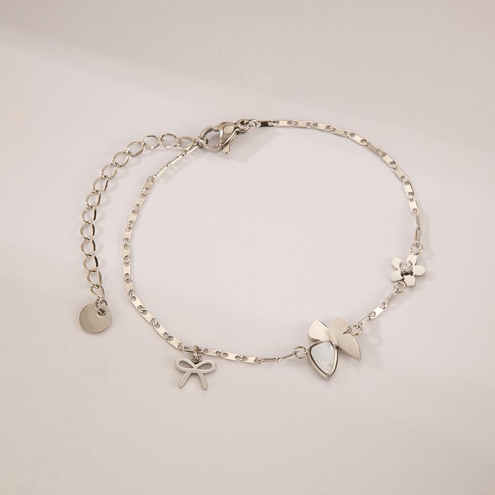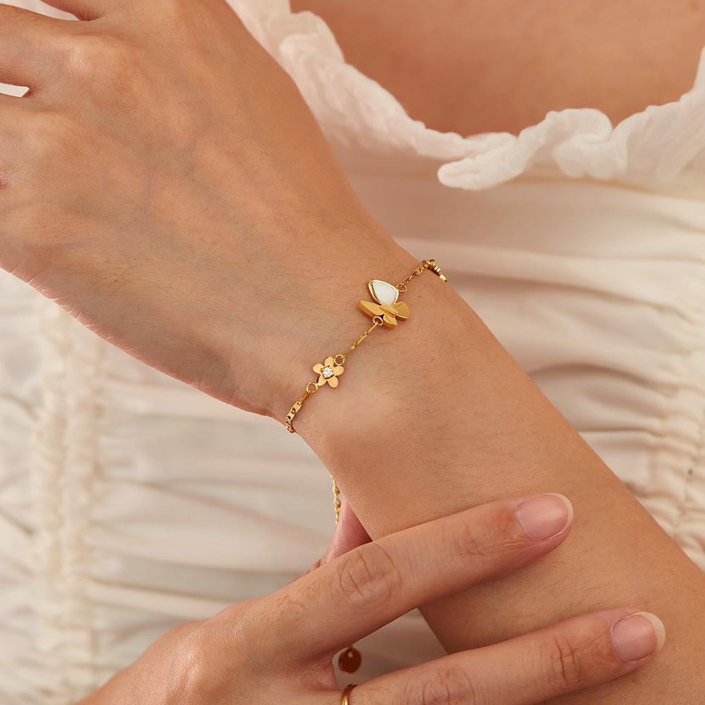 Pulsera OPK Europea y Americana INS Nicho Femenina Acero Inoxidable Exquisita Nácar Mariposa Flor Combinable Estilo Ejecutivo Pulsera de Acero Titanio