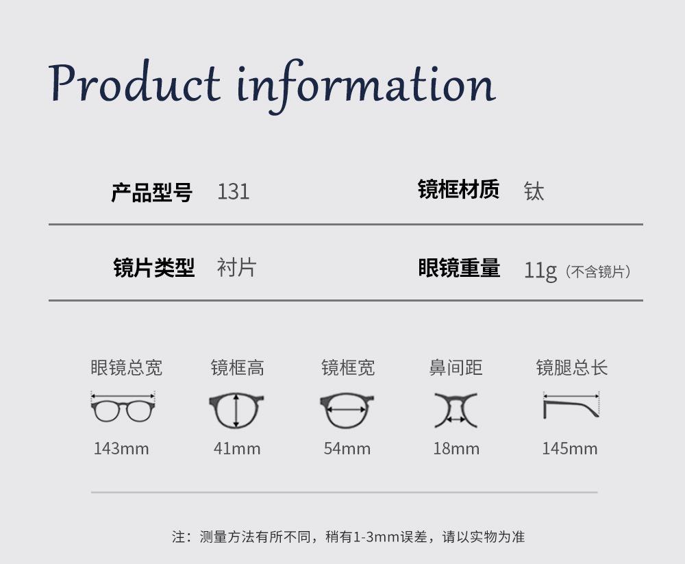 Espejo un nuevo marco de gafas de cejas de medio marco de titanio puro casual para hombres de alto sentido 131 Danyang marco de gafas de miopía al por mayor