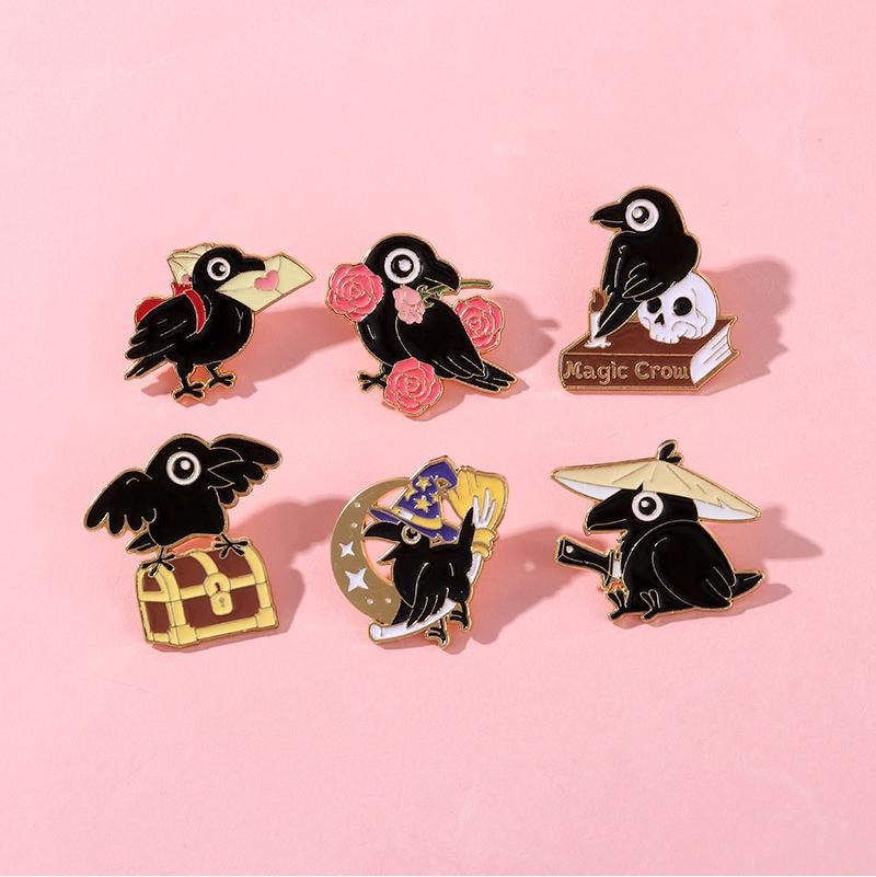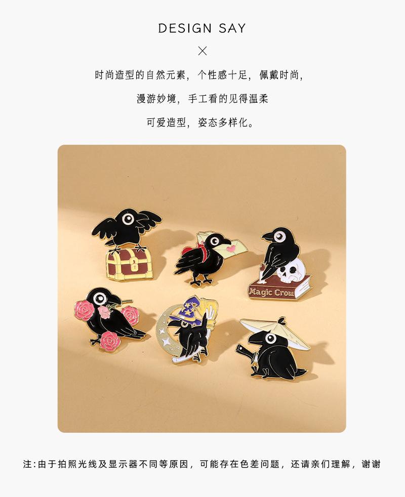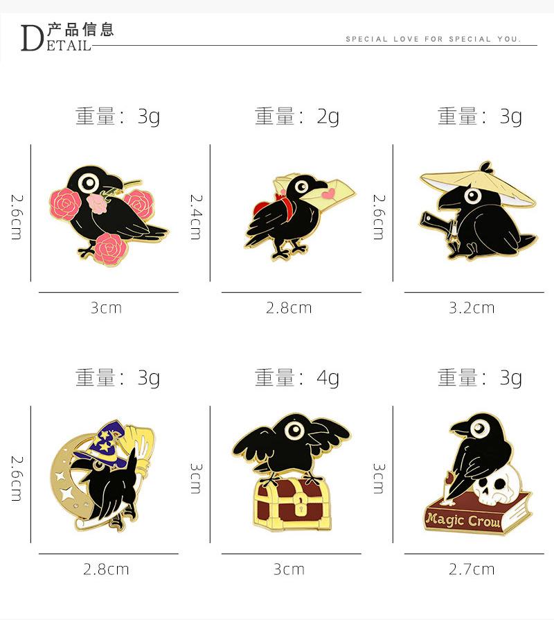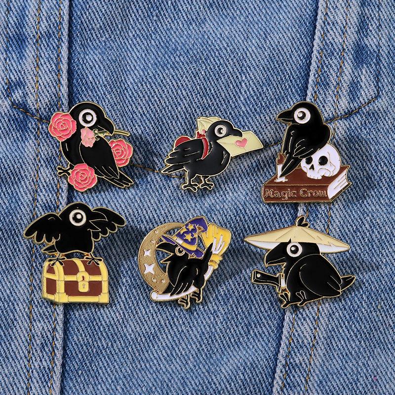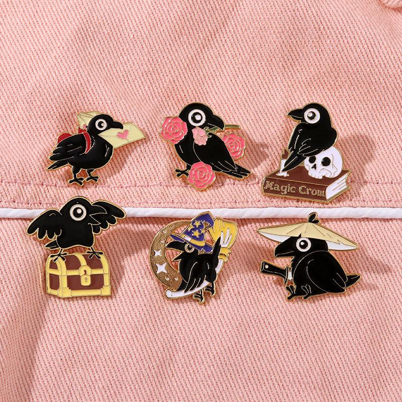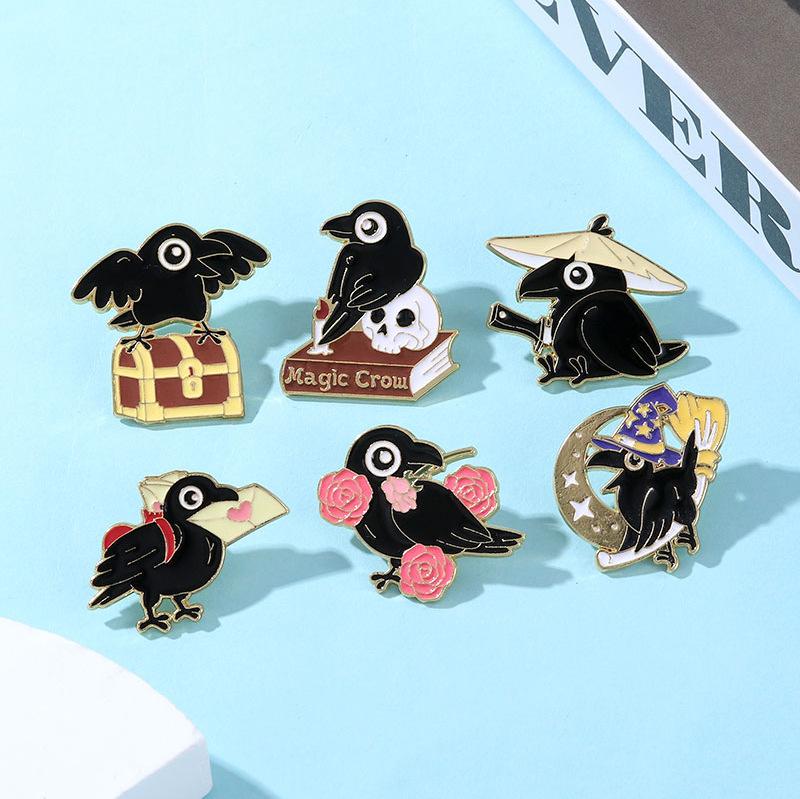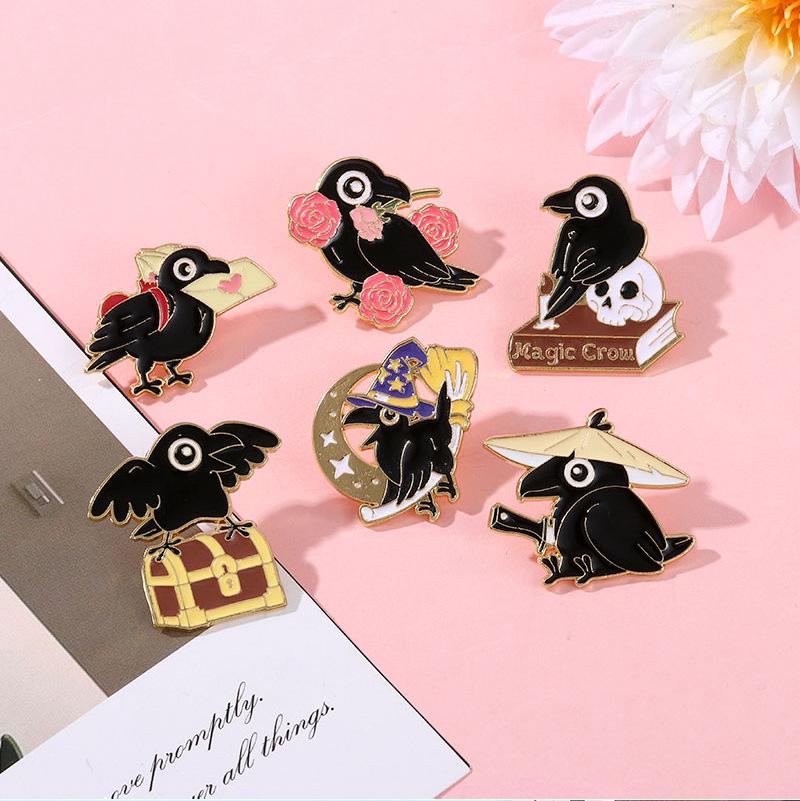 Broche pequeño de cuervo negro distintivo transfronterizo, insignia de metal con forma de pájaro, accesorio de ropa, alfiler para el cuello