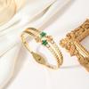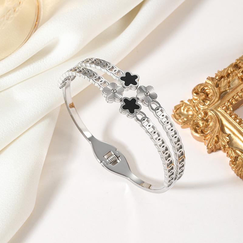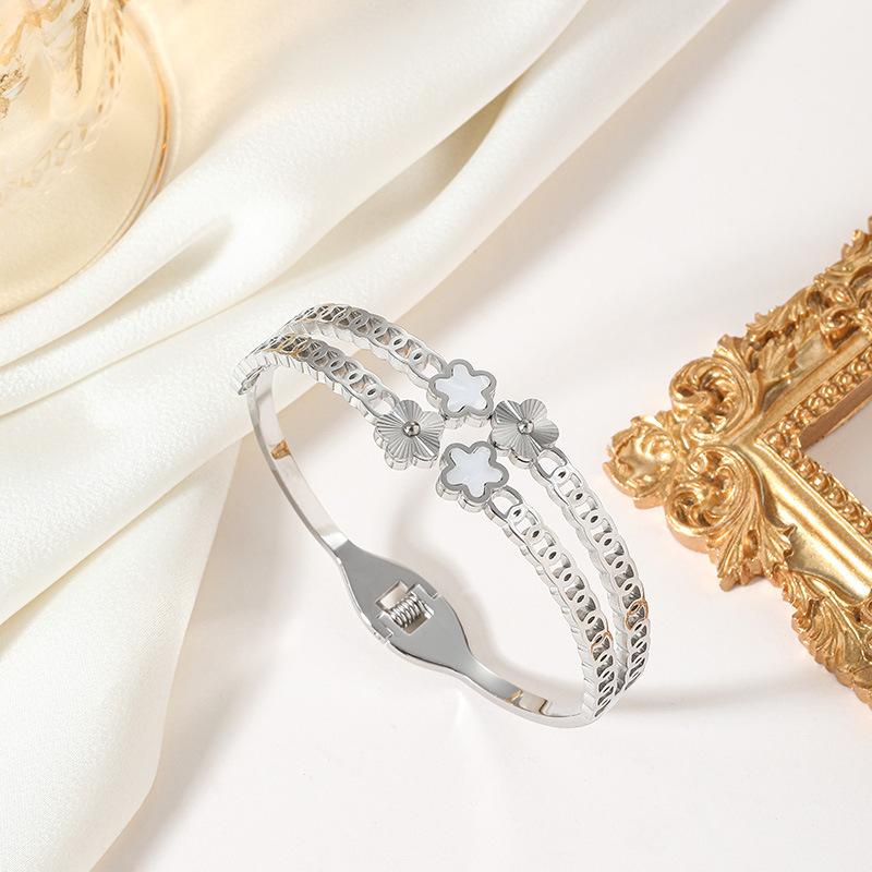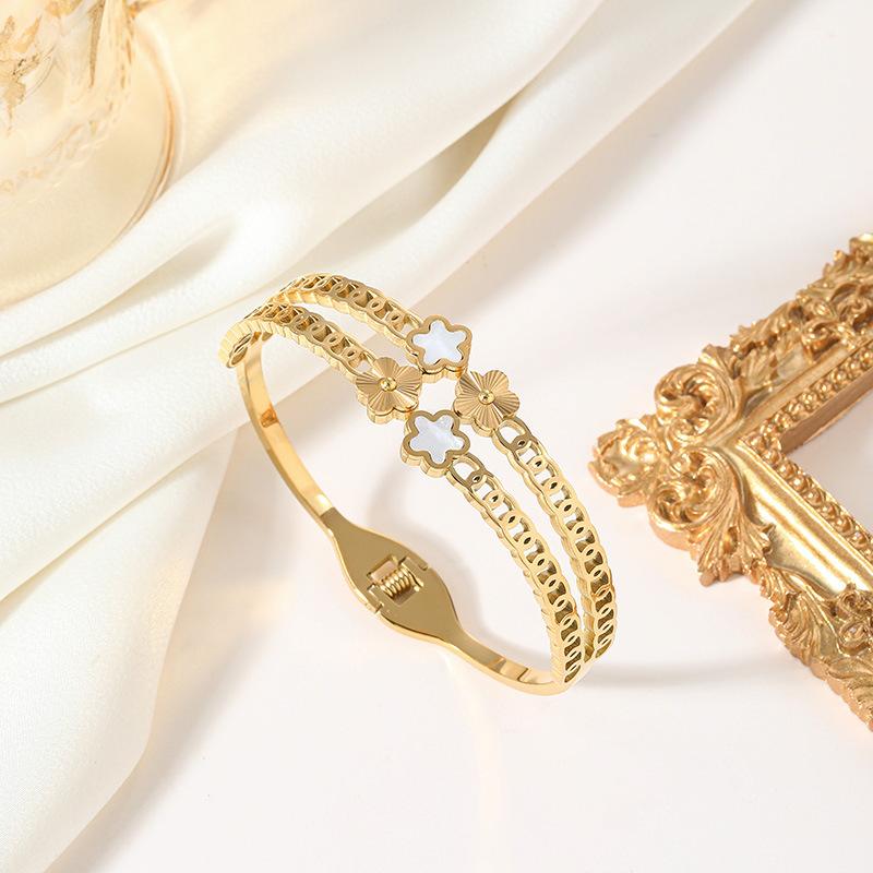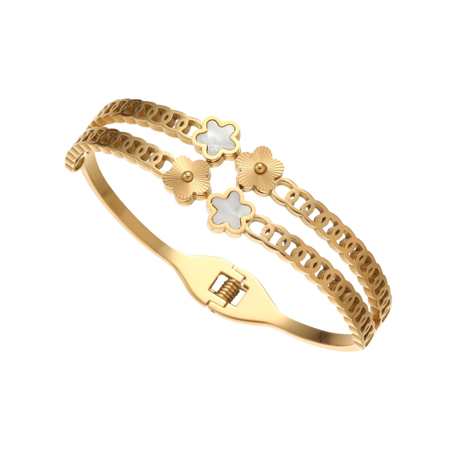 Estilo INS tendencia europea y americana pulsera de flor con incrustaciones de concha blanca acero inoxidable chapado en oro de 18K para damas pulido alto brillo