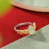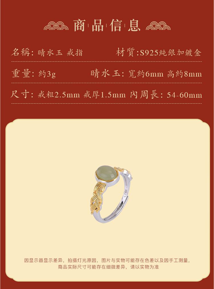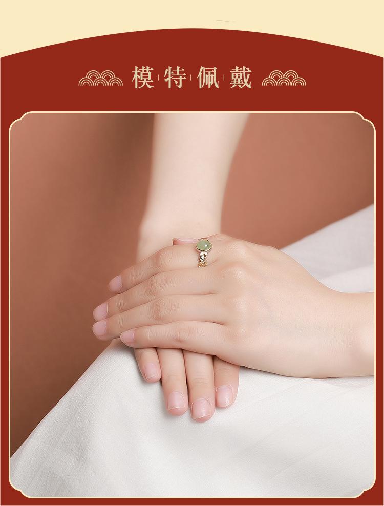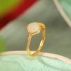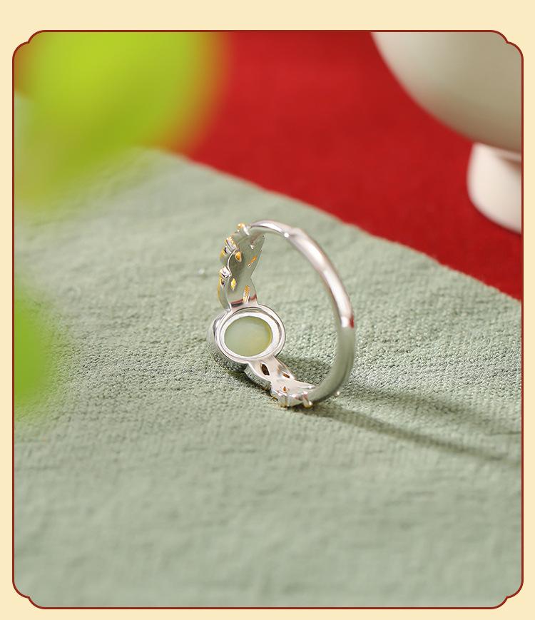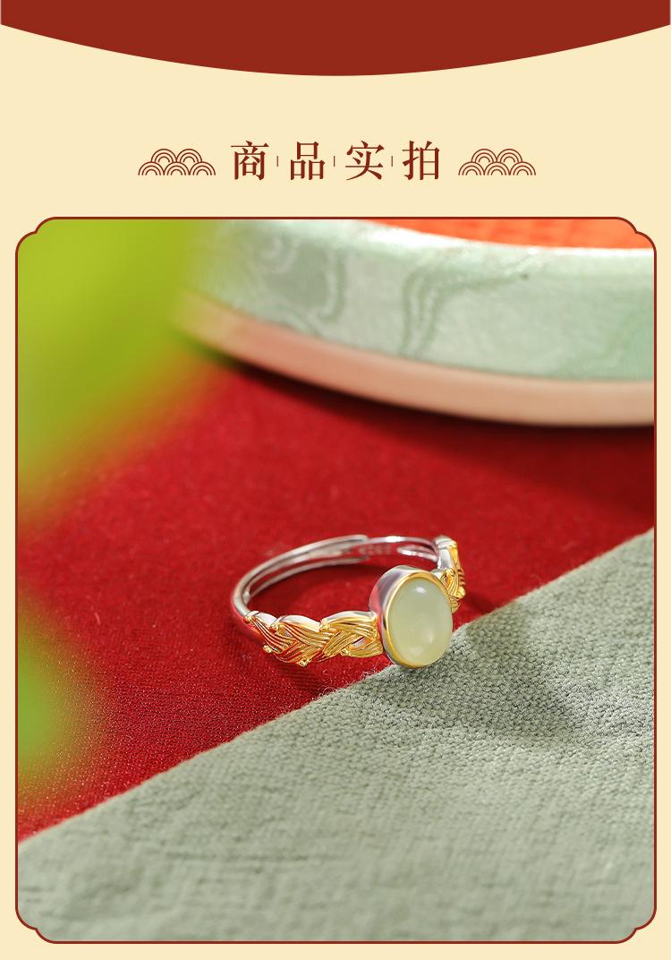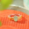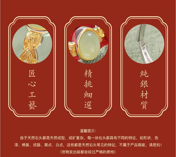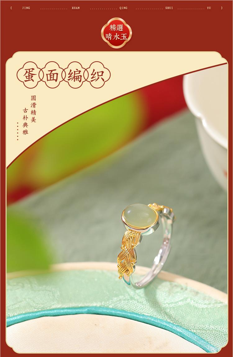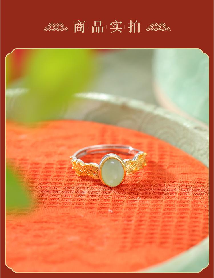 Anillo abierto Yuebao Jewelry S925 de plata esterlina bañado en oro con jade hetiano de agua fina, estilo nacional vintage, tejido con forma de huevo.