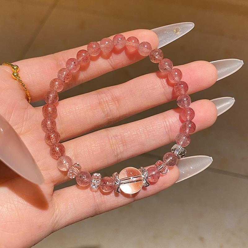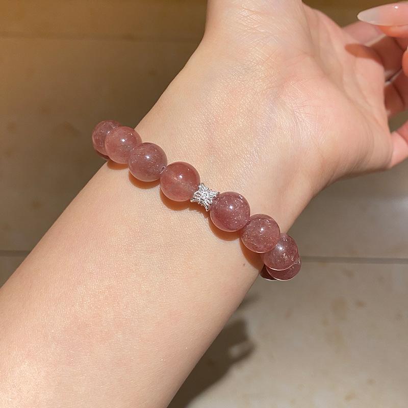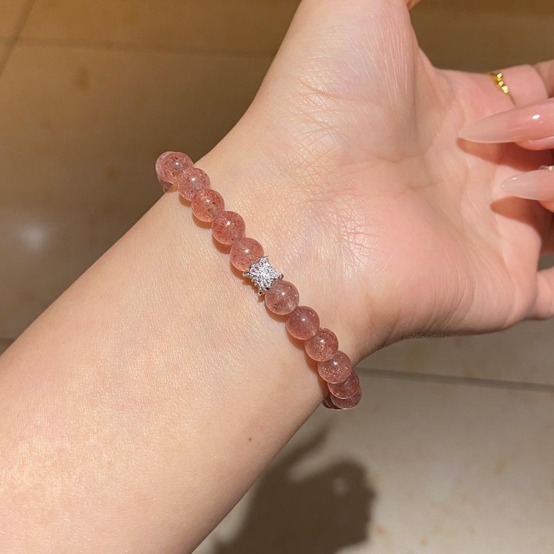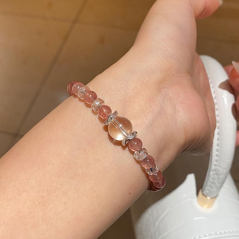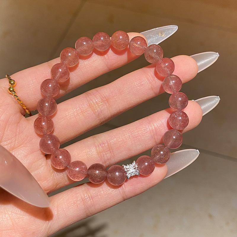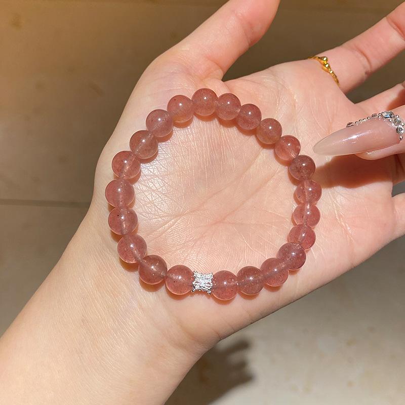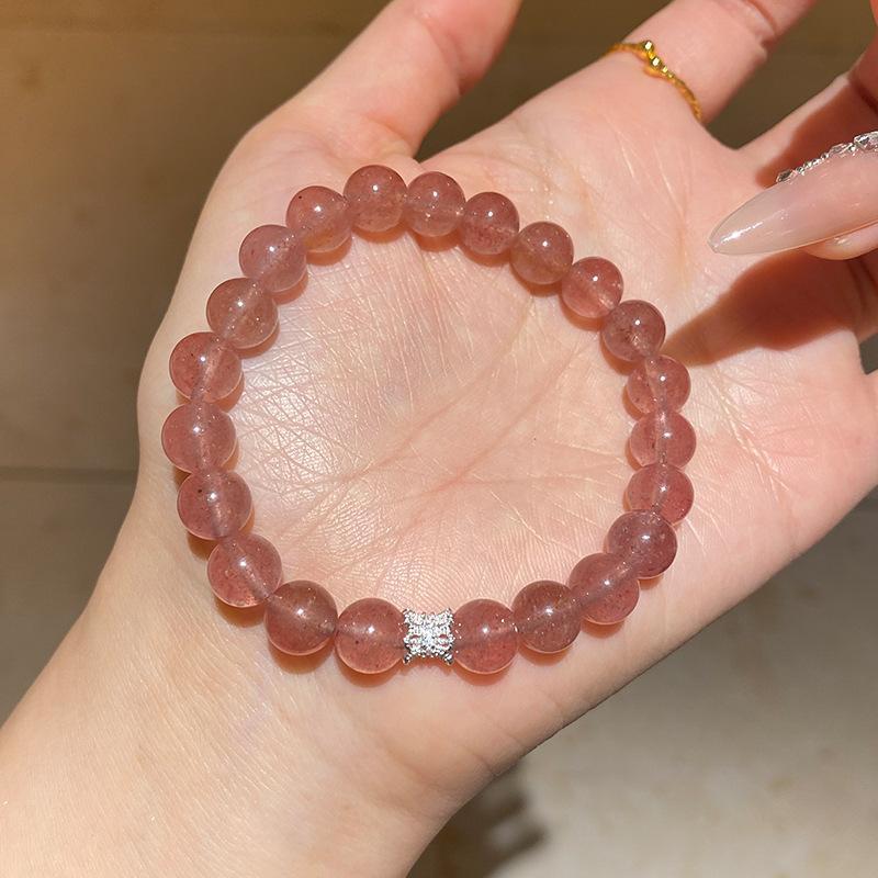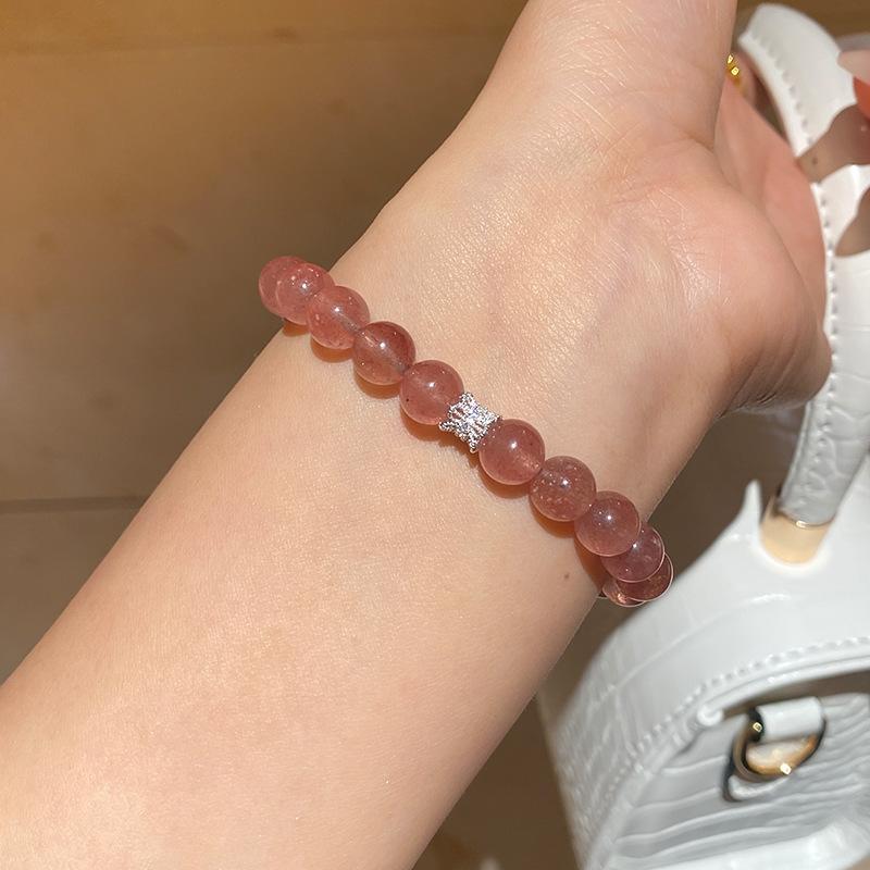 Round ball strawberry crystal bracelet-8mm (exquisite gift box)