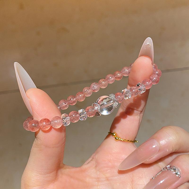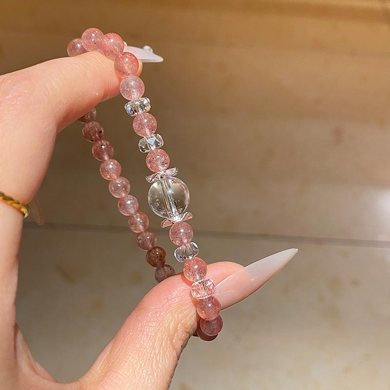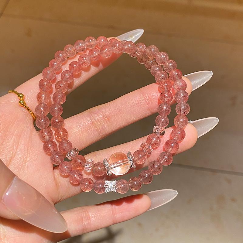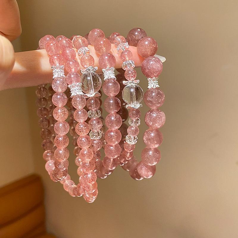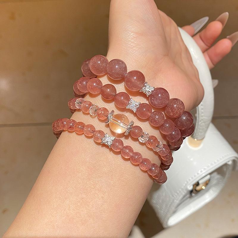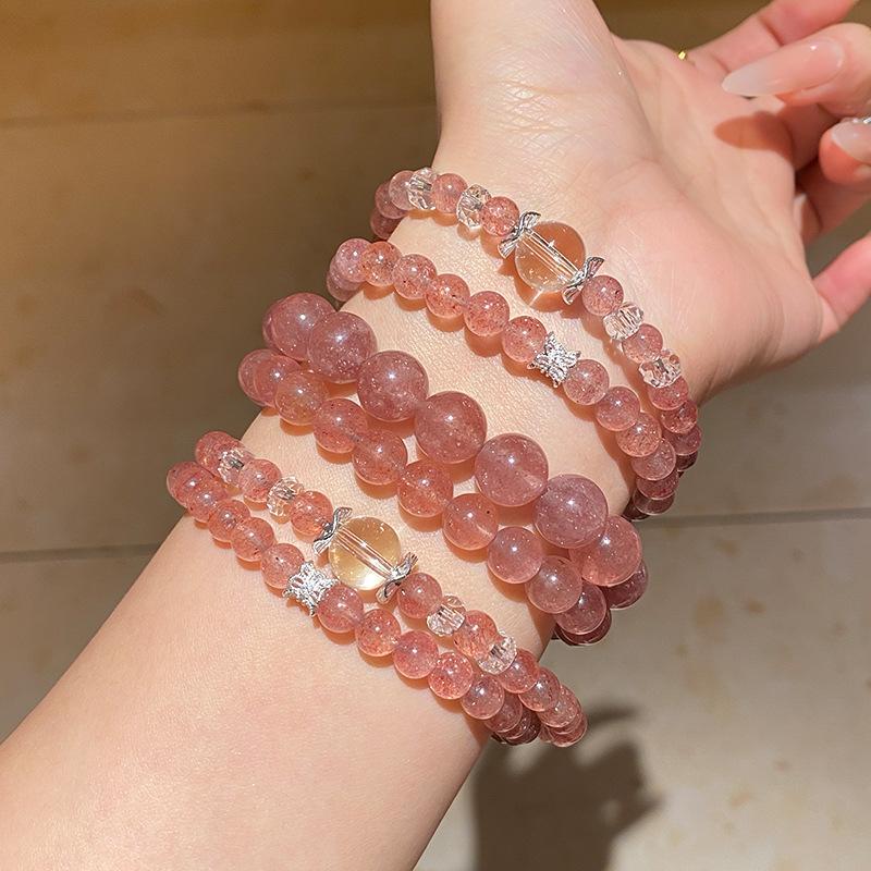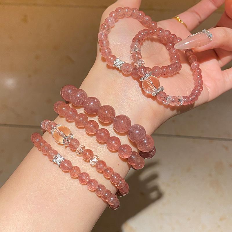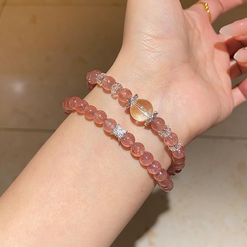 Round ball strawberry crystal bracelet-8mm (exquisite gift box)