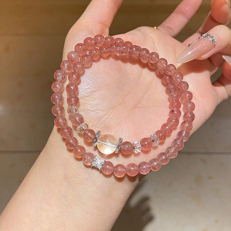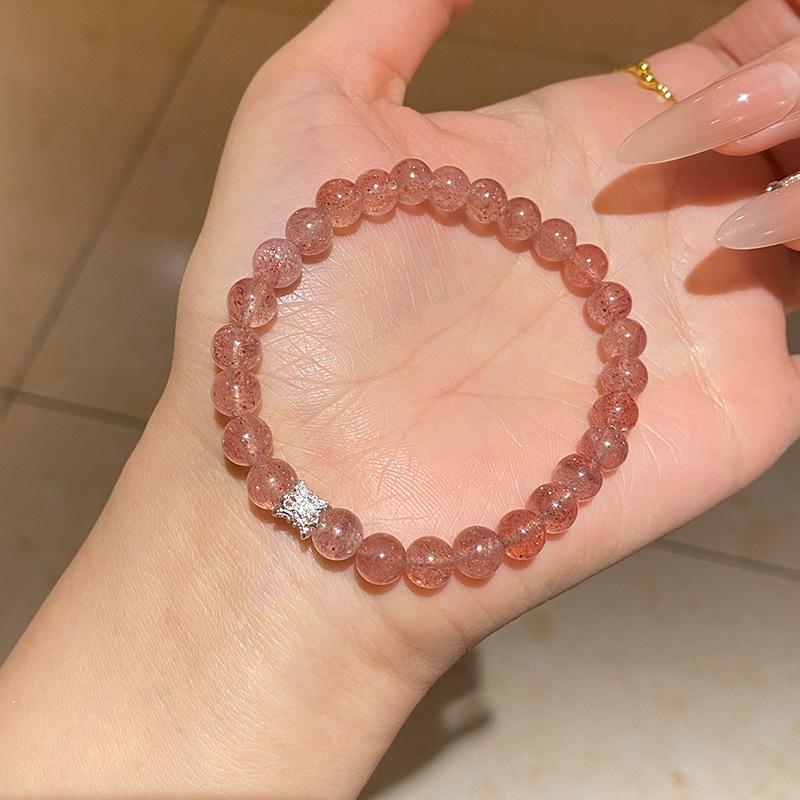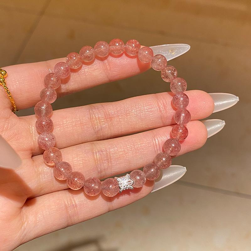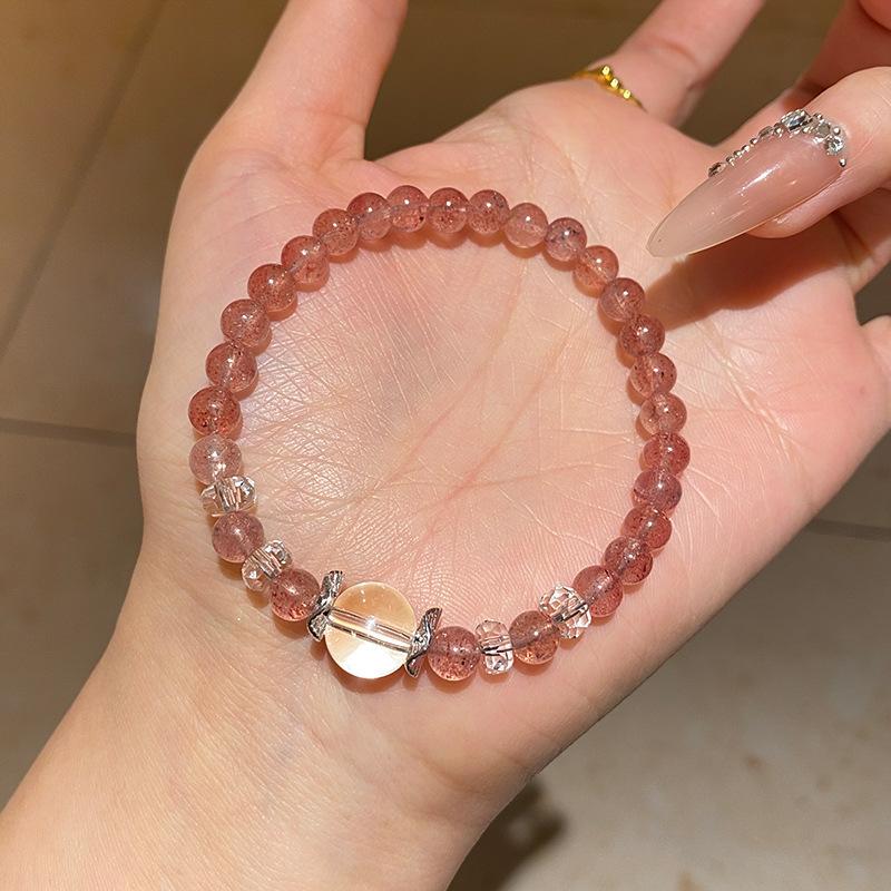Round ball strawberry crystal bracelet-6mm (exquisite gift box)