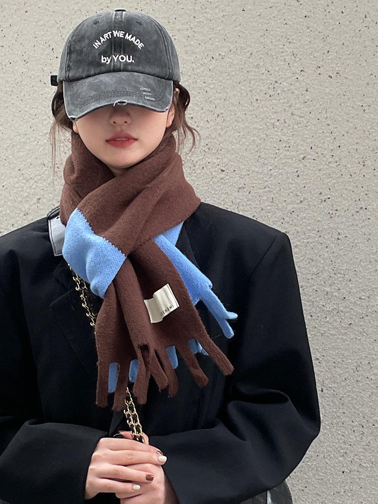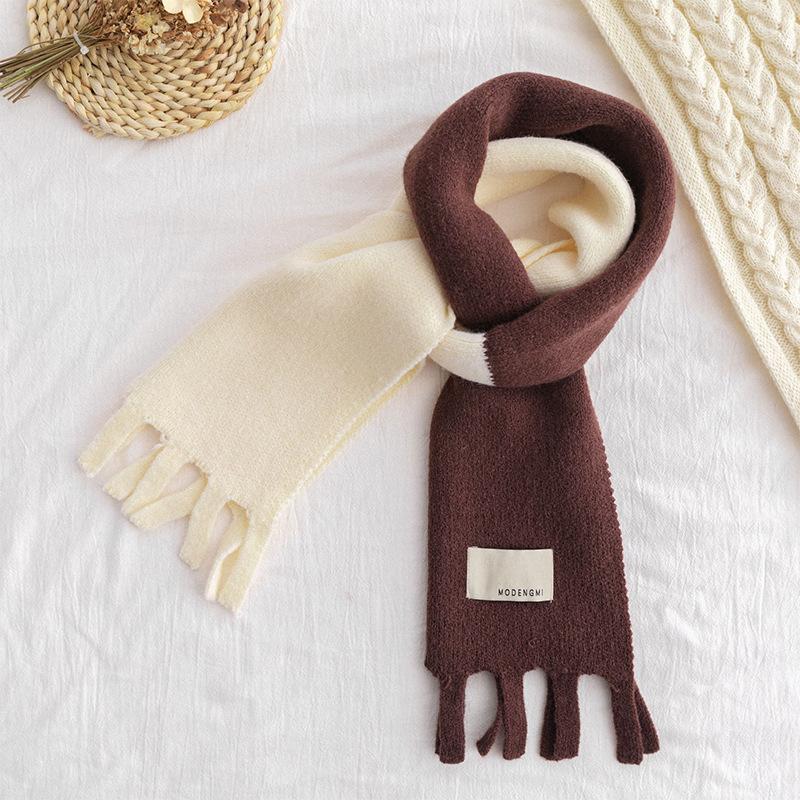 Bufanda con borlas a juego de colores para niña, nueva moda de invierno, combina con todo, estilo coreano, cálida, estilo occidental, de lana tejida, protección para el cuello.