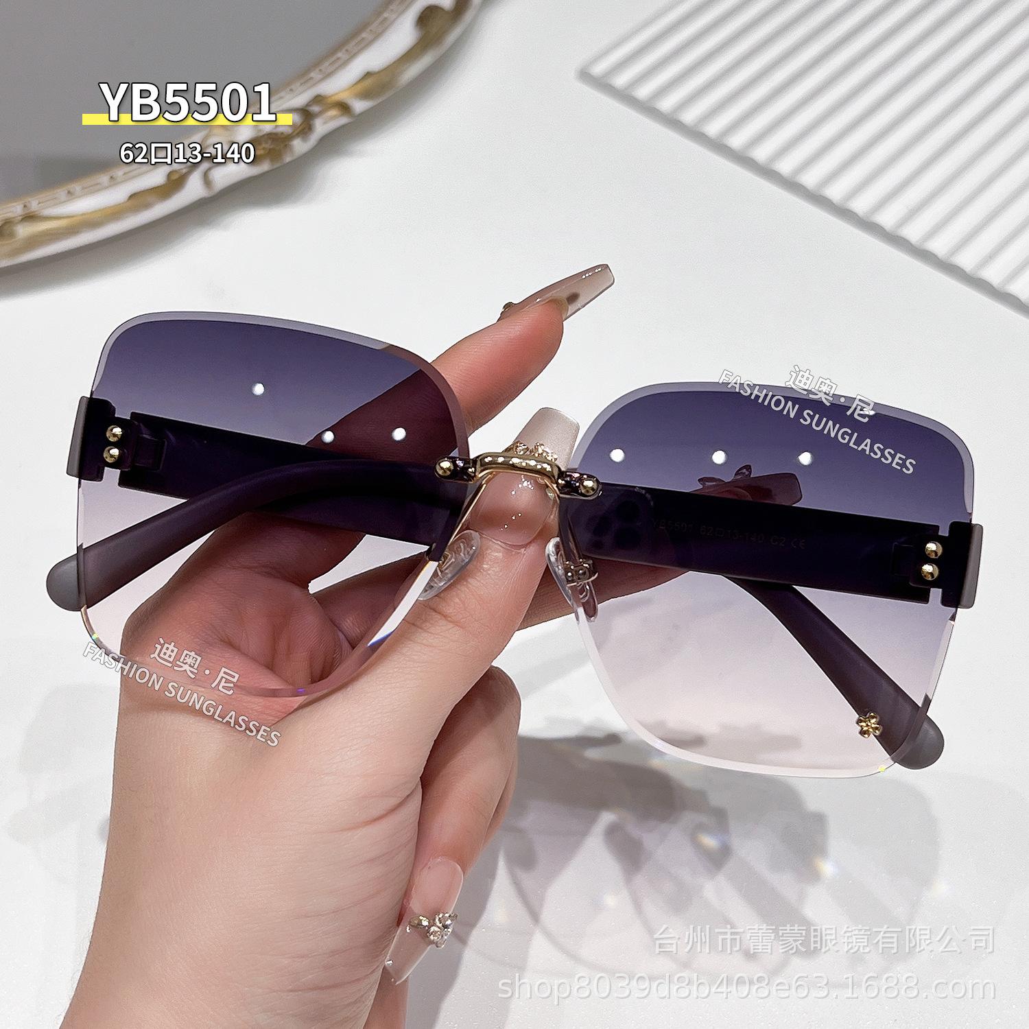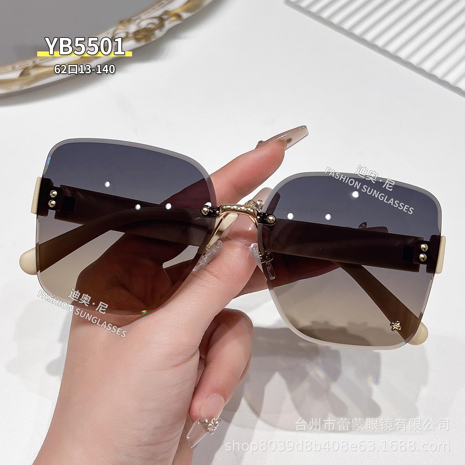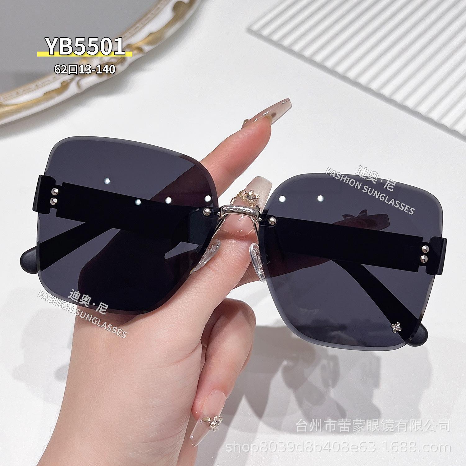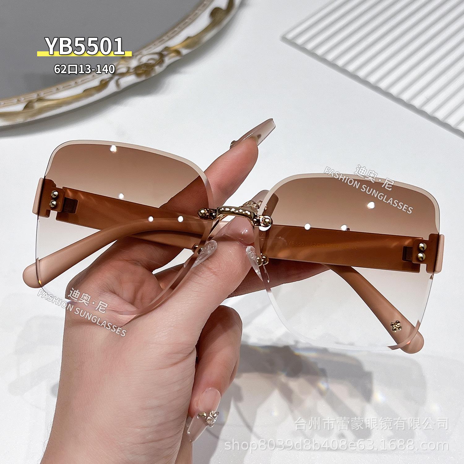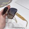 Nuevas Gafas de Sol de Moda y Tendencia Sin Montura Borde Cortado de Cristal Gafas de Sol de Alta Gama Anti-UV Estilo Popular de Transmisión en Vivo