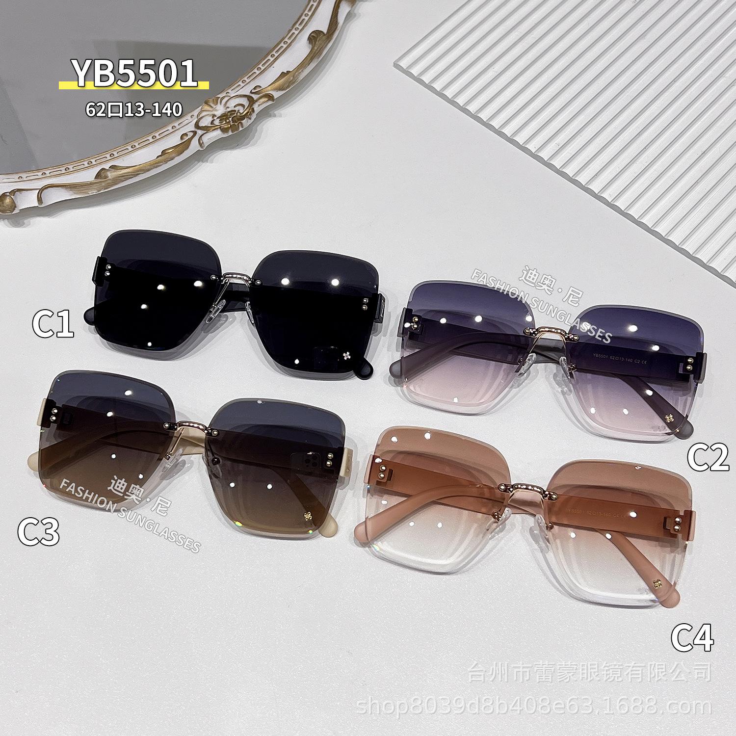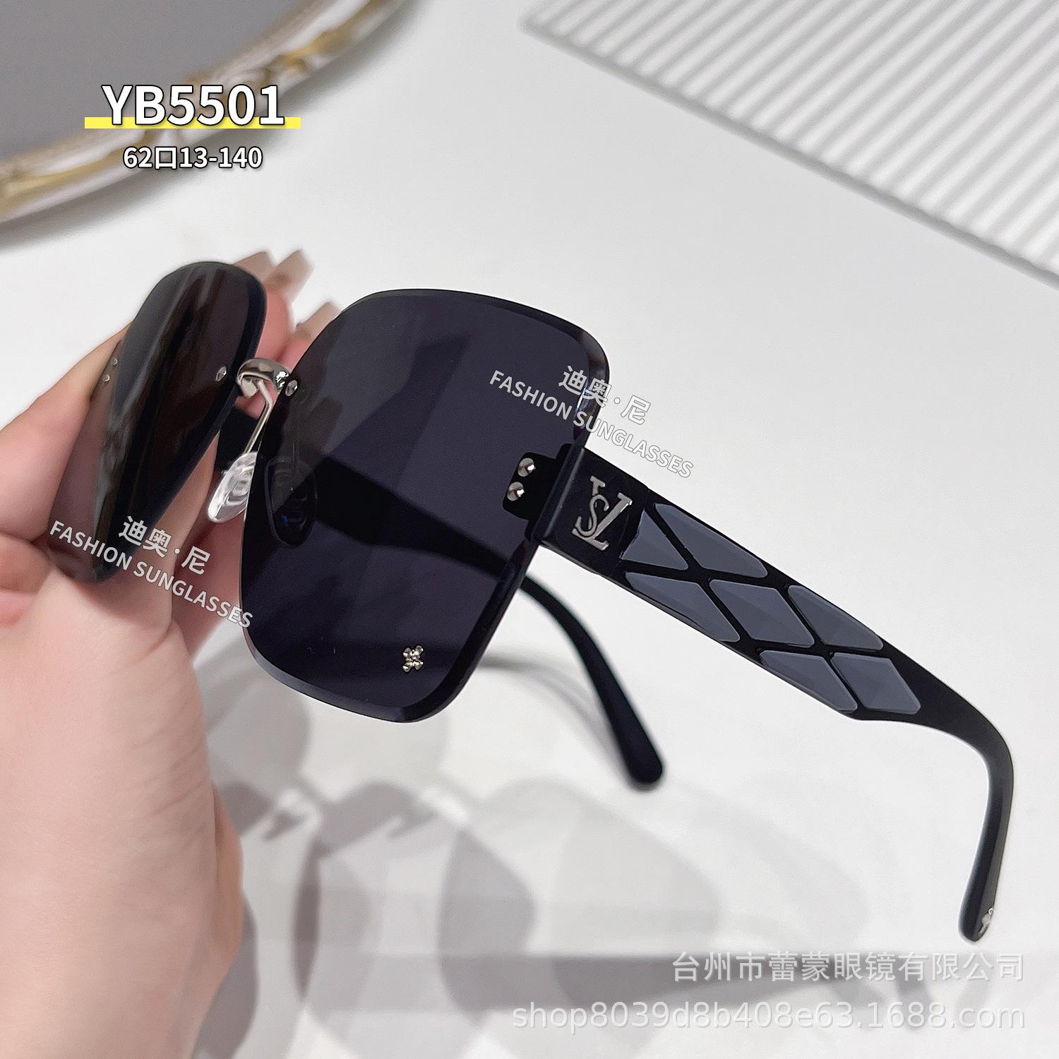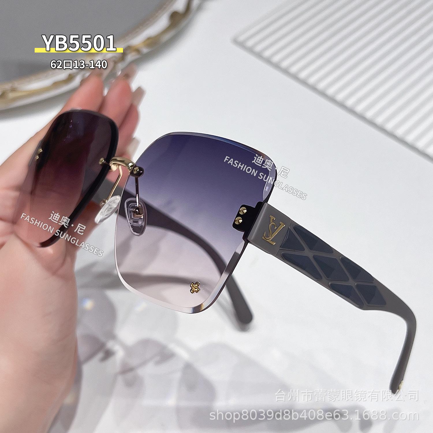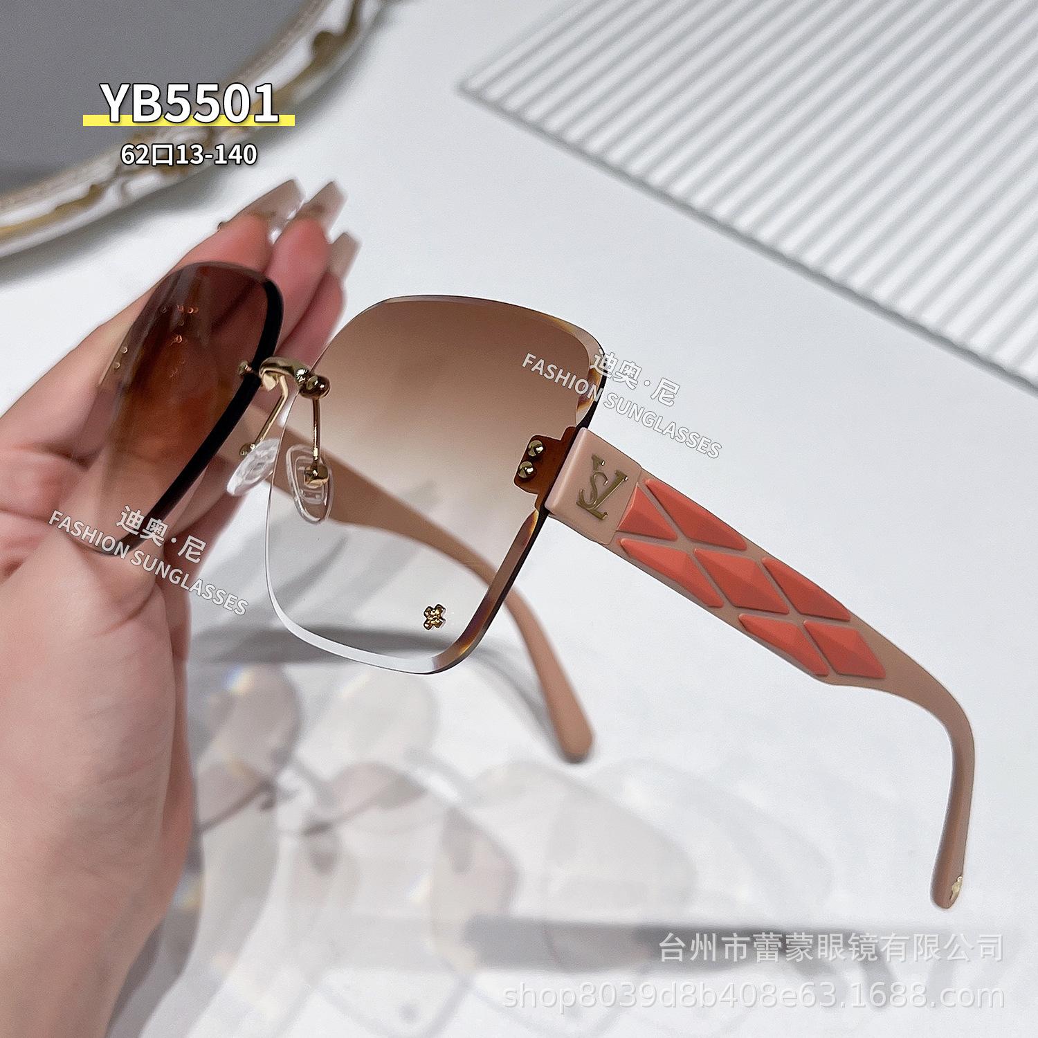 Nuevas Gafas de Sol de Moda y Tendencia Sin Montura Borde Cortado de Cristal Gafas de Sol de Alta Gama Anti-UV Estilo Popular de Transmisión en Vivo