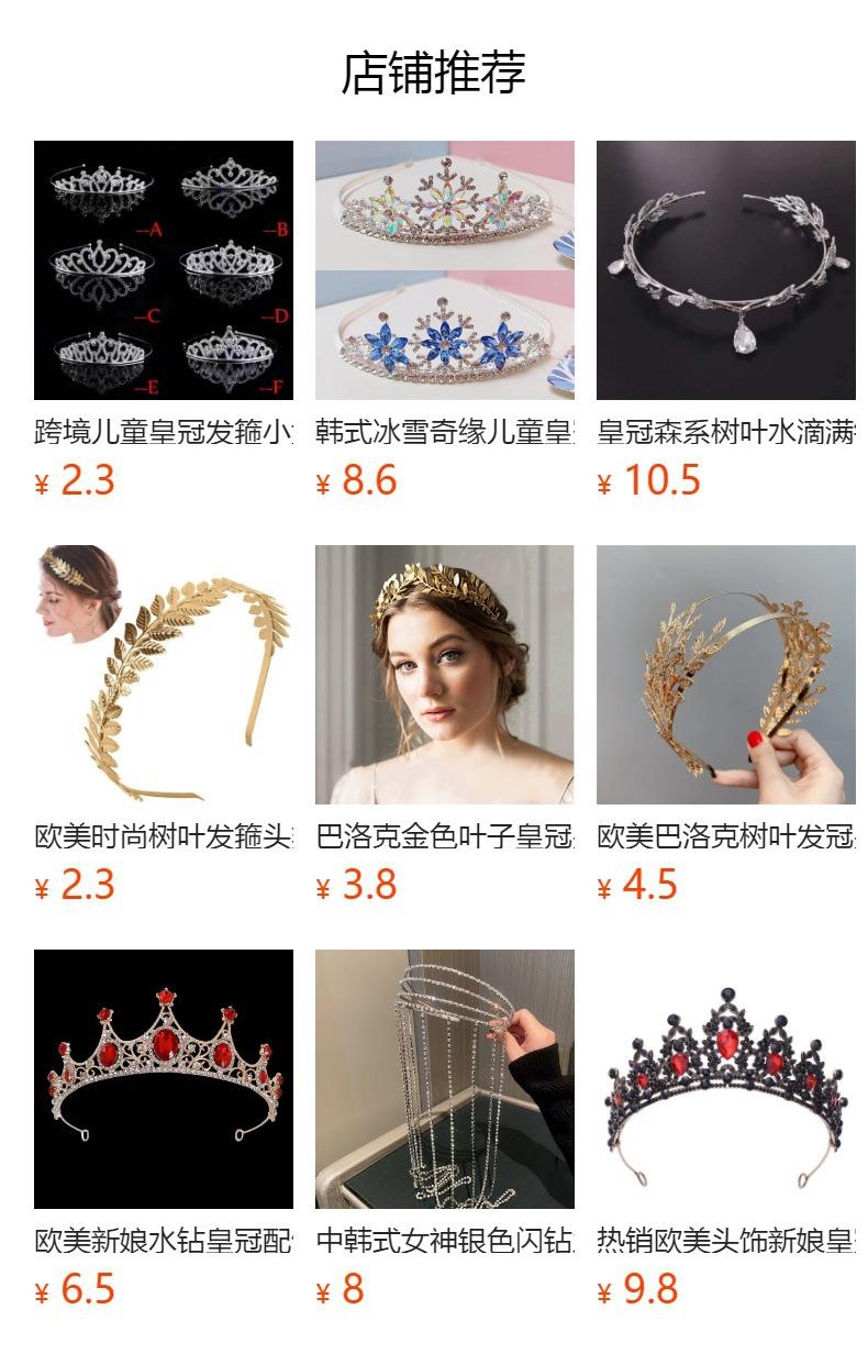 |  | | Tocado de corona de hojas barrocas europeas y americanas, tocado de red con hojas rojas y doradas, diadema estilo chica del bosque de moda, joyería al por mayor RMB4.5 0 artículos vendidos este mes Realizar pedido recibiendo cupón | | |  | | Corona de diamantes de imitación de comercio exterior europeo y americano, corona grande de círculo completo de Amazon, tocado de novia, corona al por mayor RMB5.5 1944 unidades vendidas en este mes Realizar pedido recibiendo cupón | | | |