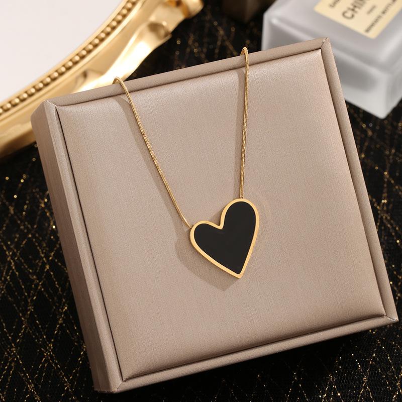 Collar de concha negra fresca de 18 quilates con diseño de nicho europeo y americano, cadena de clavícula ligera de acero de titanio de alta calidad que no se decolora