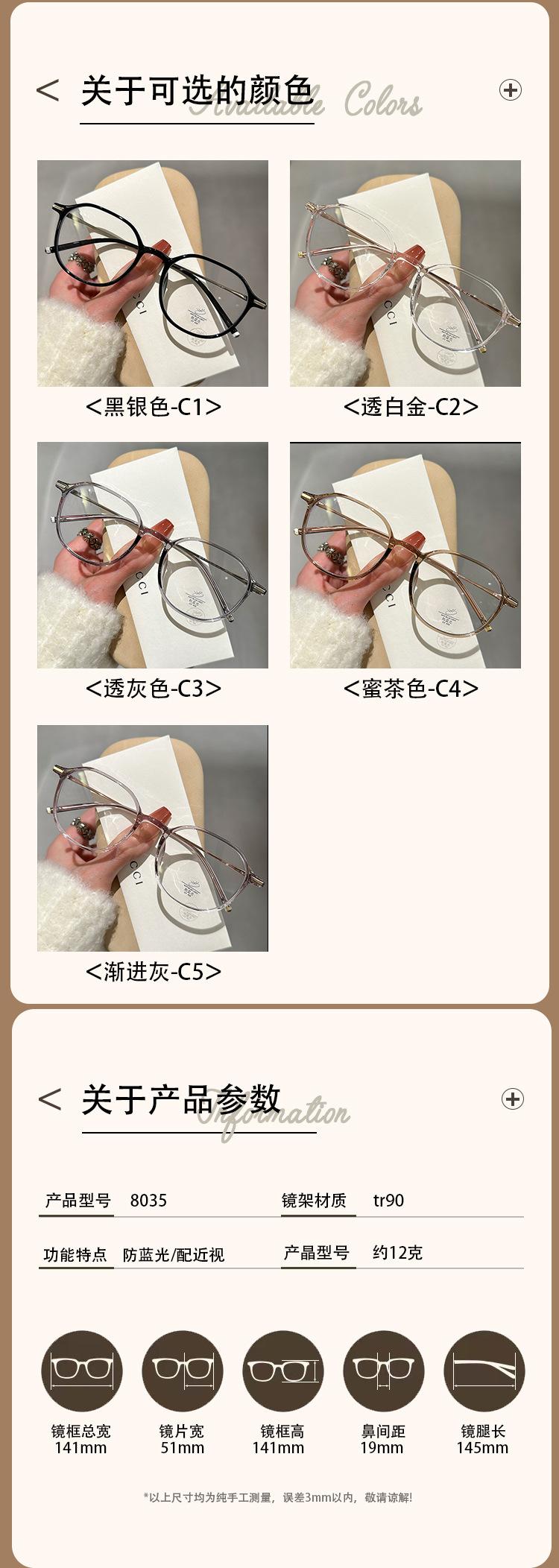 Gafas de miopía con montura ovalada estilo universitario para estudiantes, para hombres y mujeres, venta al por mayor, color blanco, sin recoger miel, montura plana.