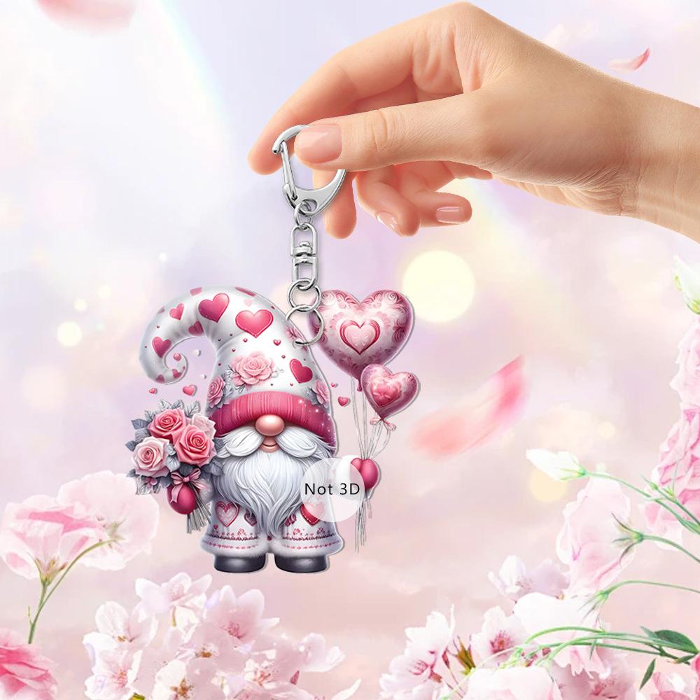 Colgante de cadena para mochila de niña acrílica plana 2D con diseño de abuelo amoroso rosa de dibujos animados lindo para el Día de San Valentín transfronterizo