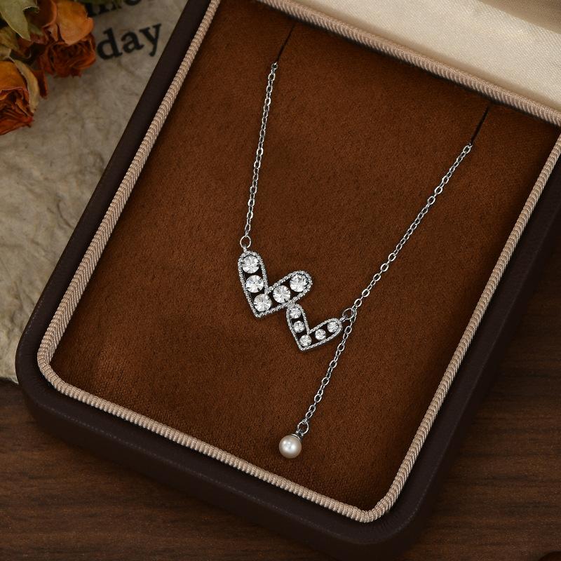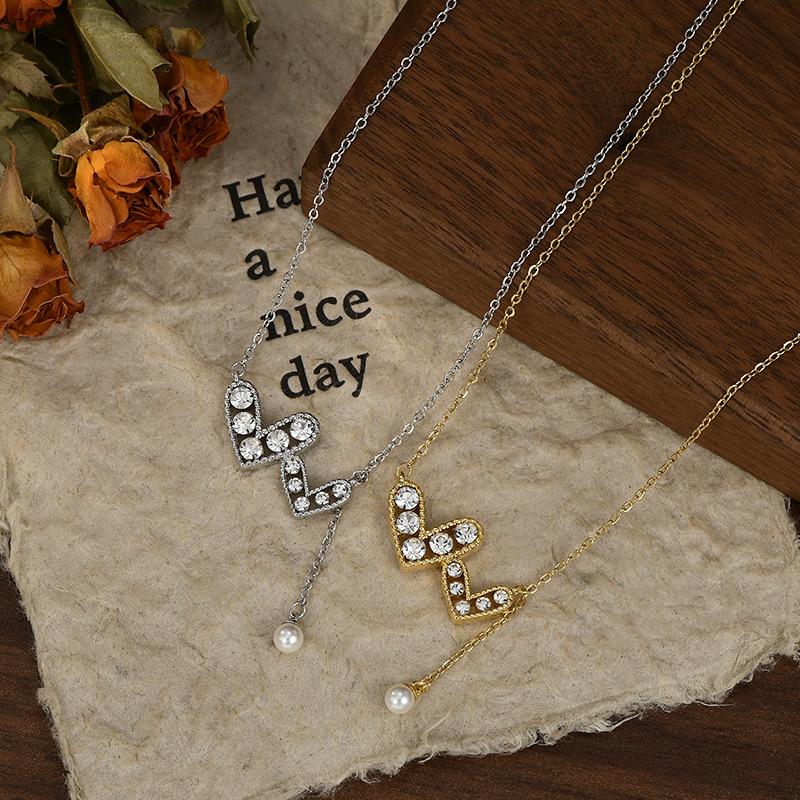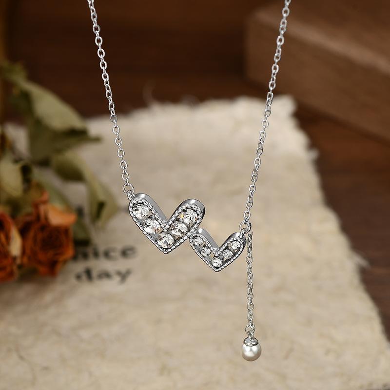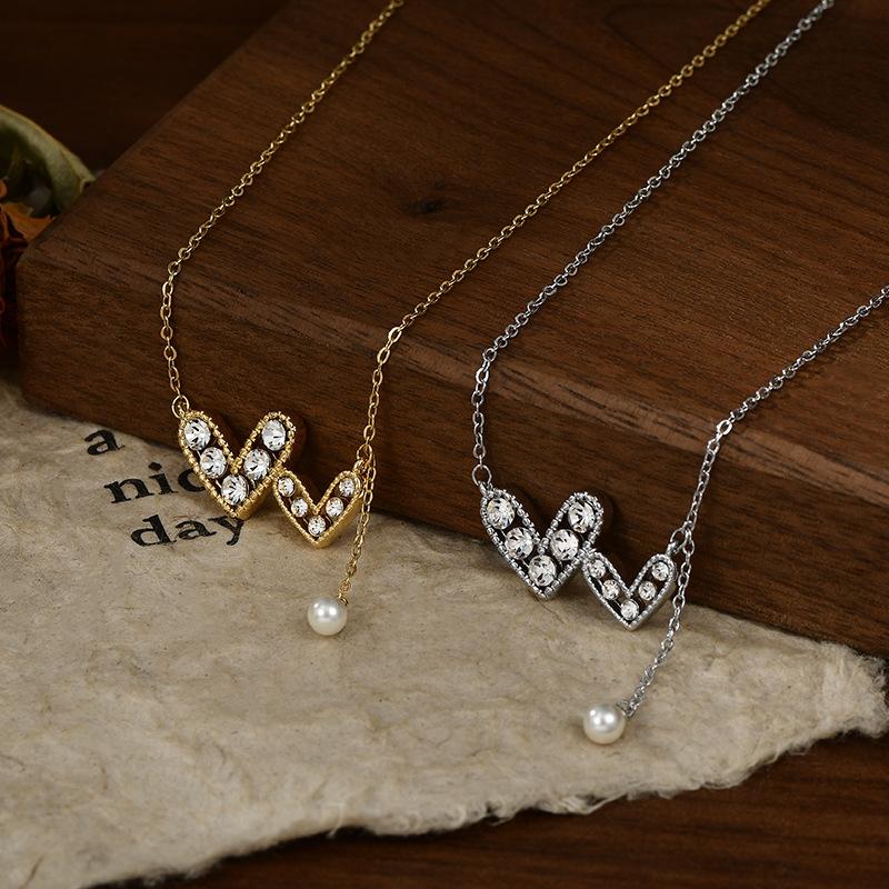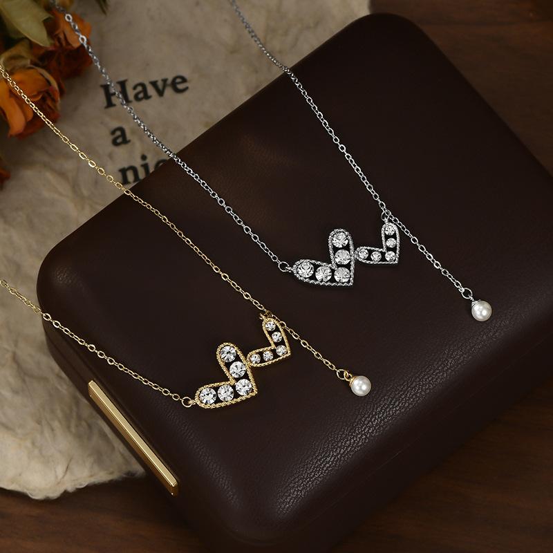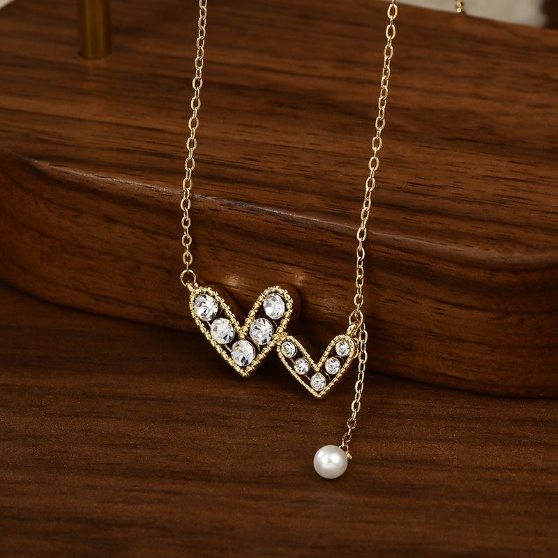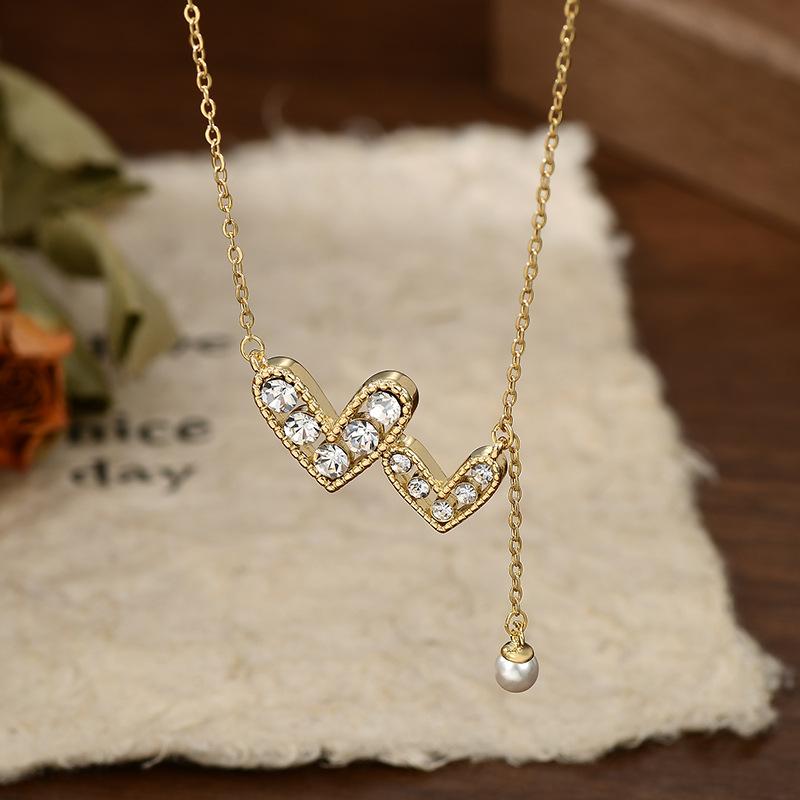 Oro Verdadero Galvanizado Micro-incrustado Zircón Elegante Cadena Clavícula Femenina Diseño Nicho Sentido Hueco Amor Collar Borla Cadena Lana