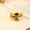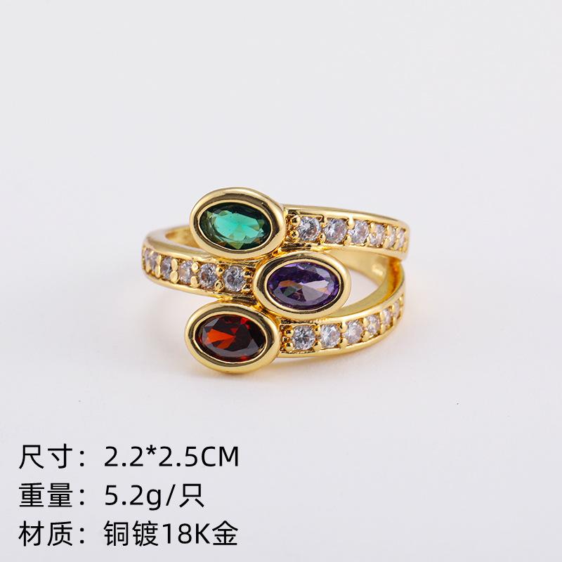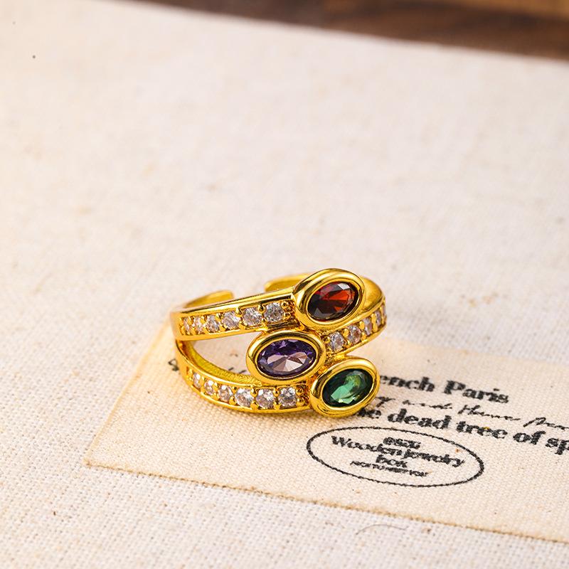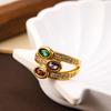 Anillo de Tesoro de Color Retro Europeo y Americano Micro-incrustado de Zirconia para Mujer de Lujo Ligero de Gama Alta Ajustable Abierto