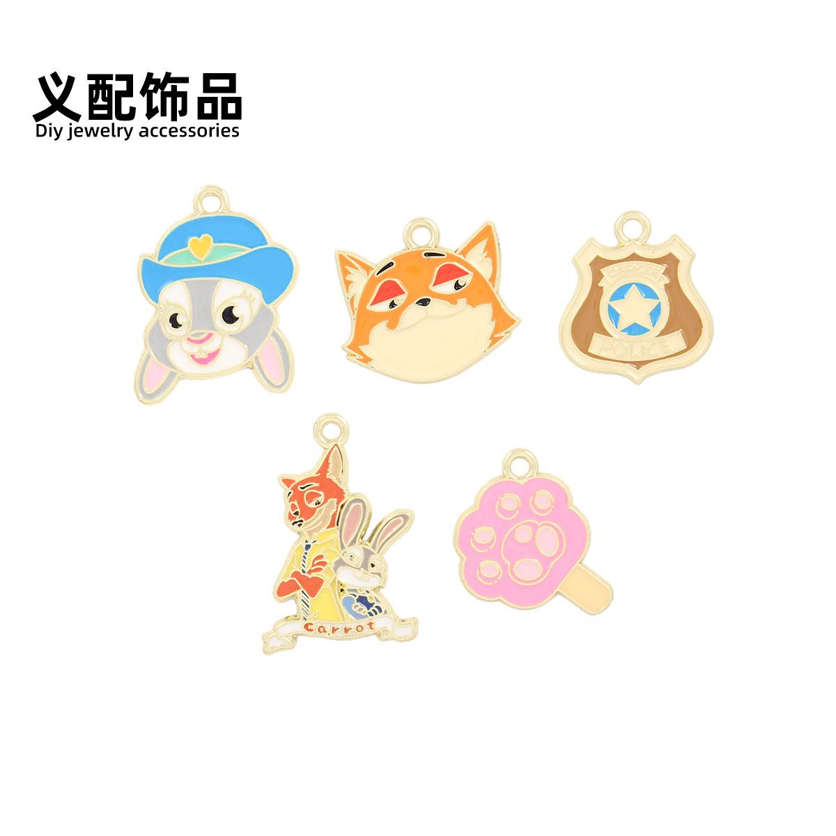 Ciudad animal loca zorro conejo DIY accesorios de joyería colgante collar cuerda de mano aretes tocado llavero