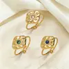 Anillo abierto de acero inoxidable turquesa para mujer, estilo europeo y americano, con diseño de mano de acero de titanio y diamantes retro transfronterizos.