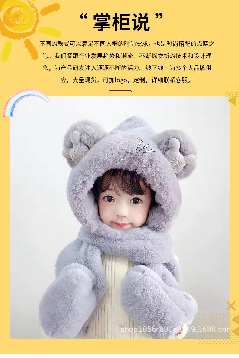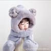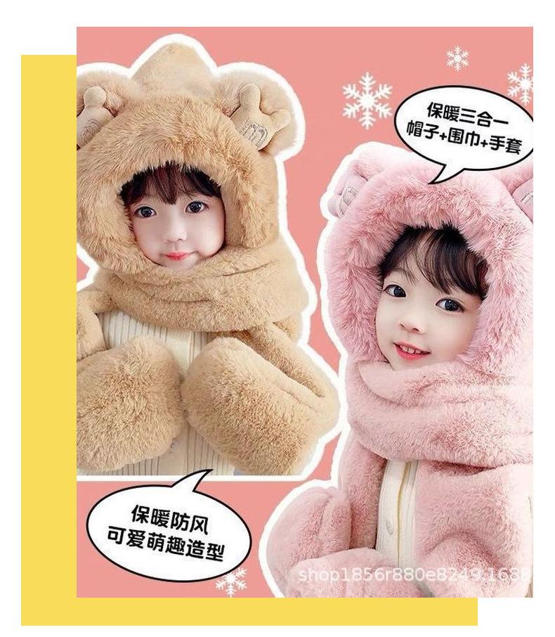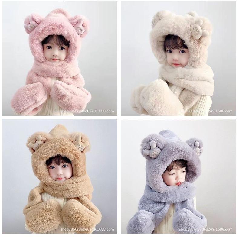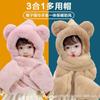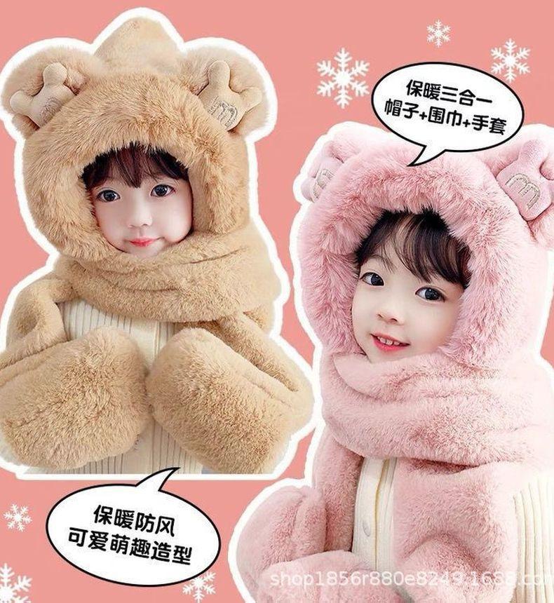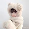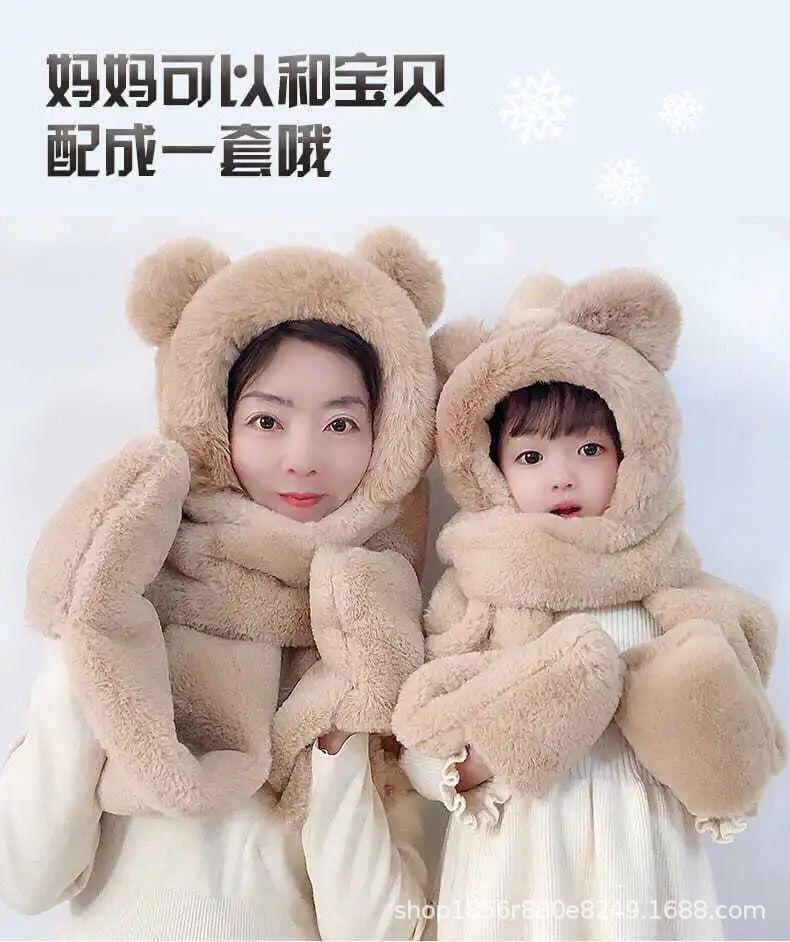 Conjunto de tres piezas de gorro, bufanda y guantes para niños, cálido y bonito oso de invierno con capucha, bufanda de una pieza, moda para niños y niñas.
