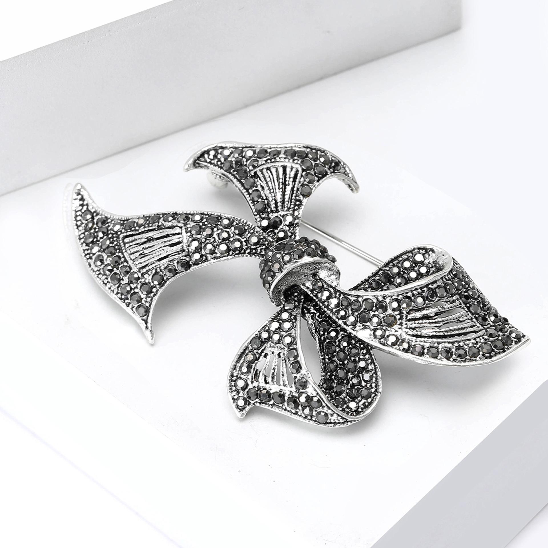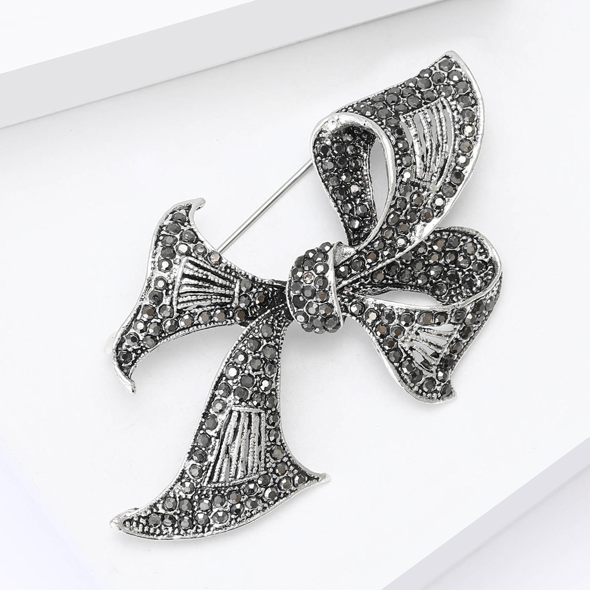 Nuevo y creativo broche de lazo de aleación vintage con diamantes de imitación, exquisito broche de ramillete para mujer, ideal para combinar con todo.