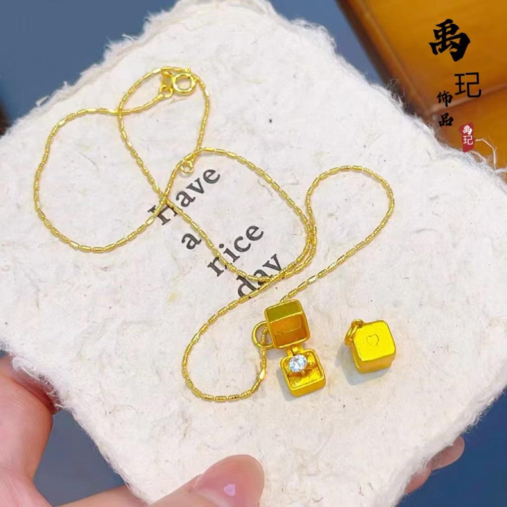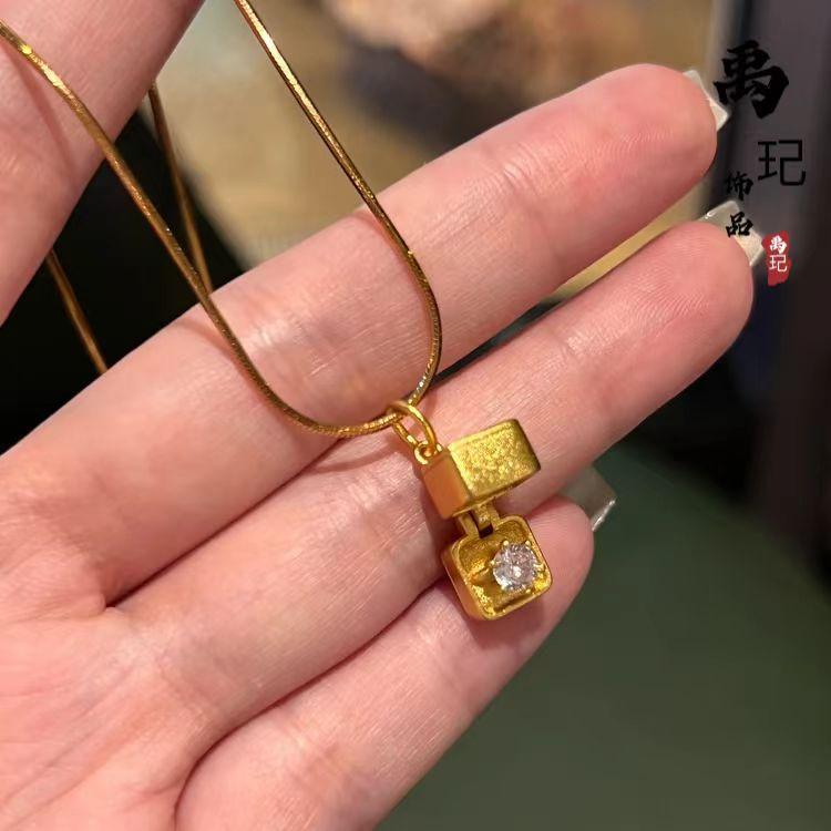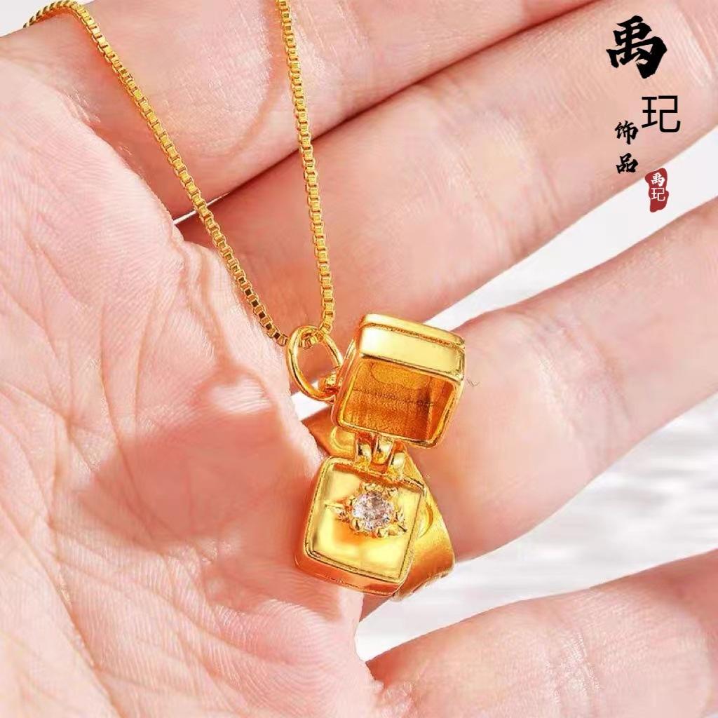 Una linda sorpresa: un collar con colgante de anillo de diamantes, un pequeño libro rojo vietnamita con diseño de nicho que resuena en oro.
